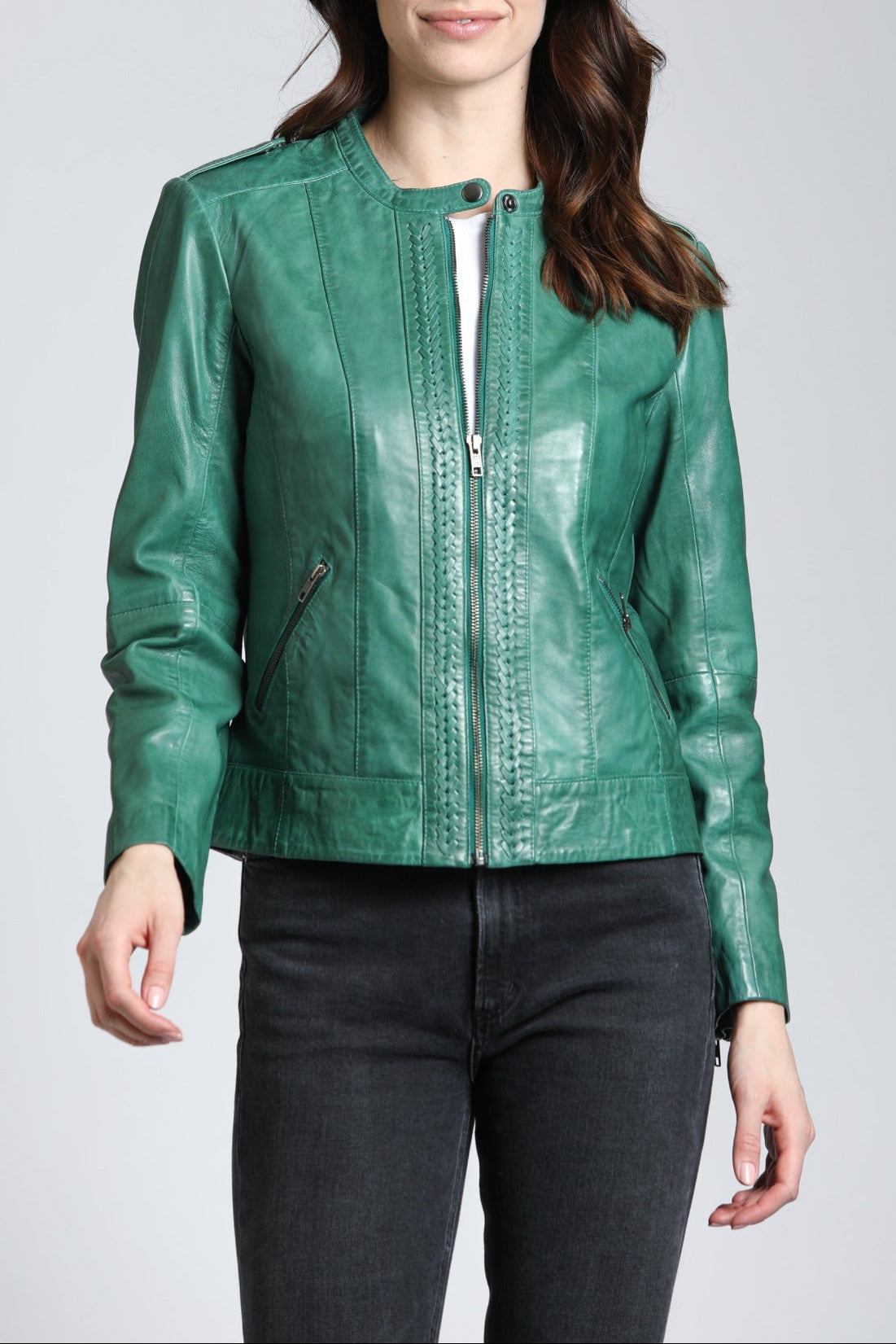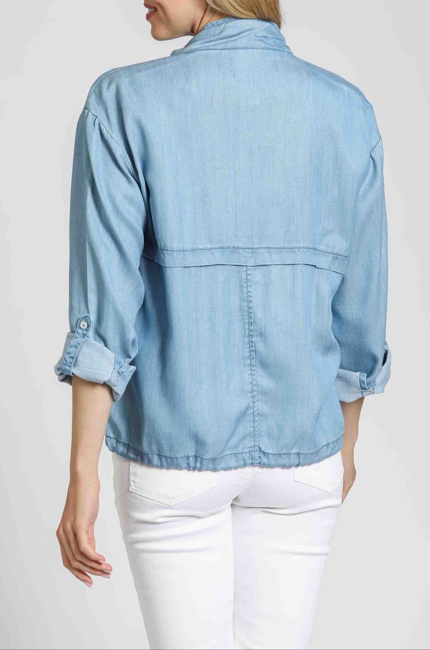 Indigo - Collarless Jean Jacket with Frayed Detail