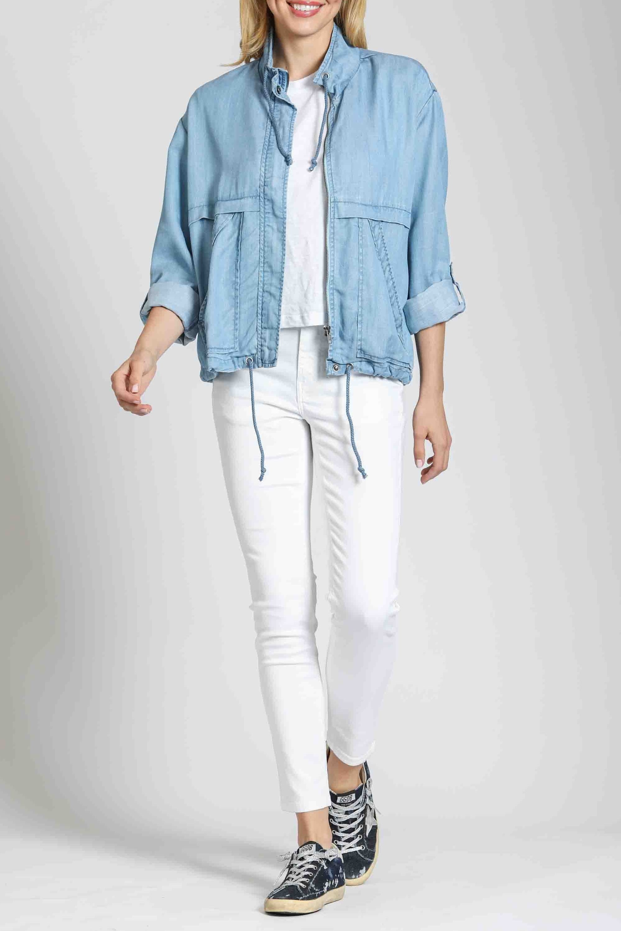 Light Indigo - Jean Jacket With Frayed Detail