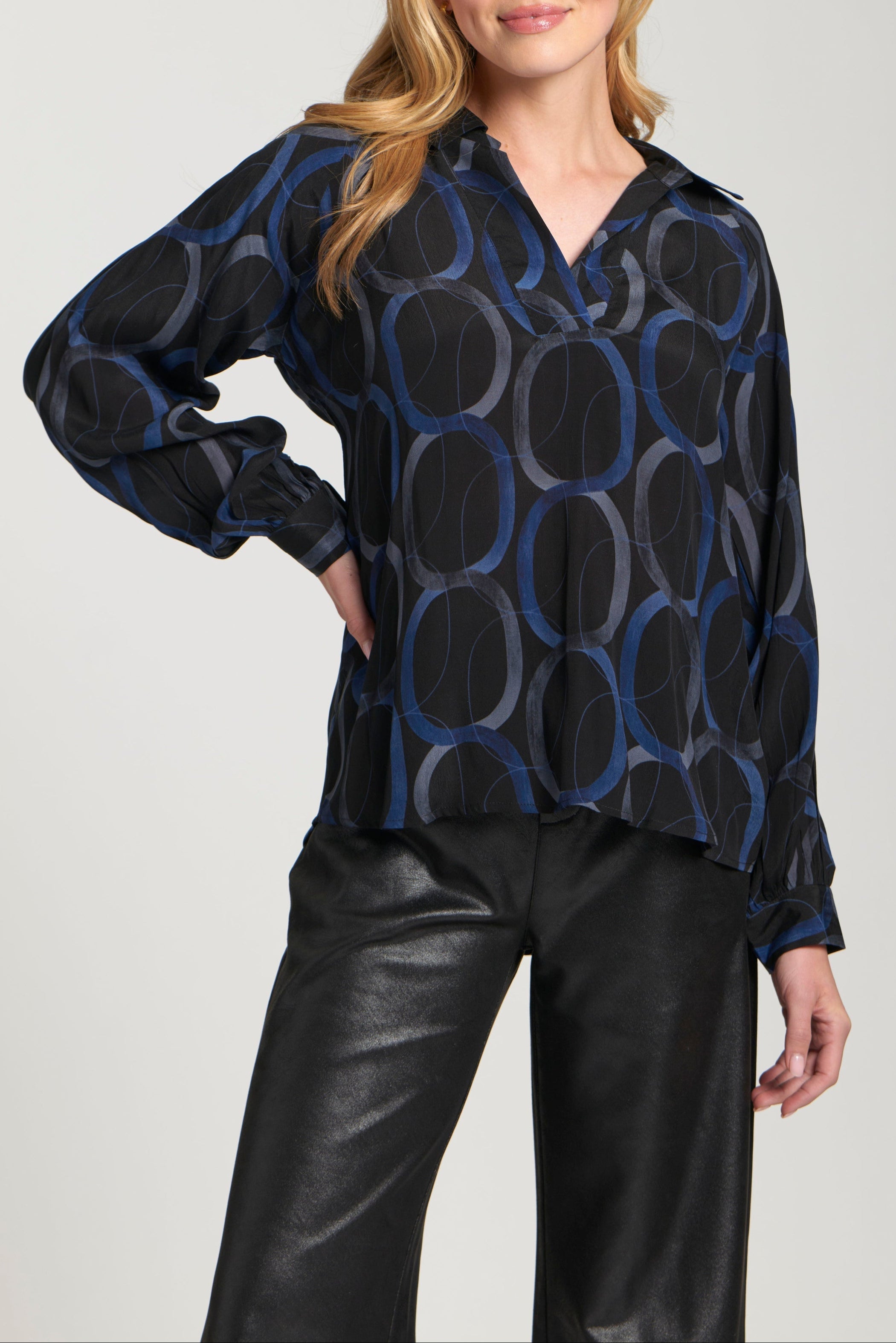 Half-Plaket Pullover Blouse