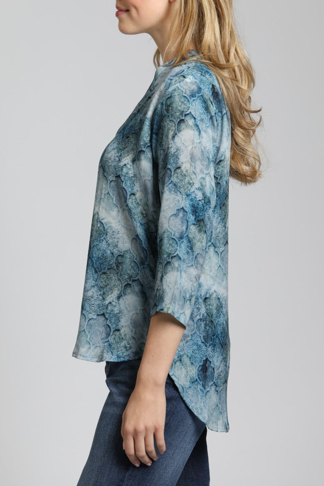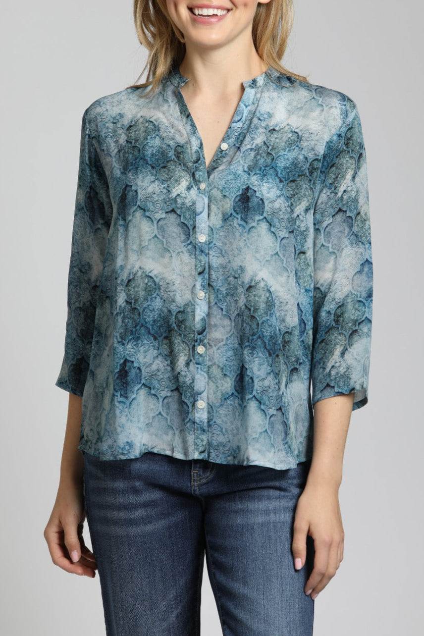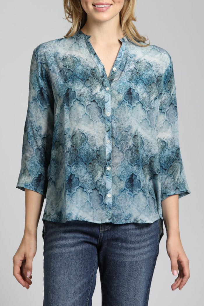 Our 3/4 Sleeve Mandarin Collar Button-Up feels like an artistic work of art—it is a true blend between traditional and modern fashion. The trim mandarin neckline strikes an unassumingly sober tone, while the flowing three-quarter sleeves convey an aura of refined poise, refreshing your overall appearance.