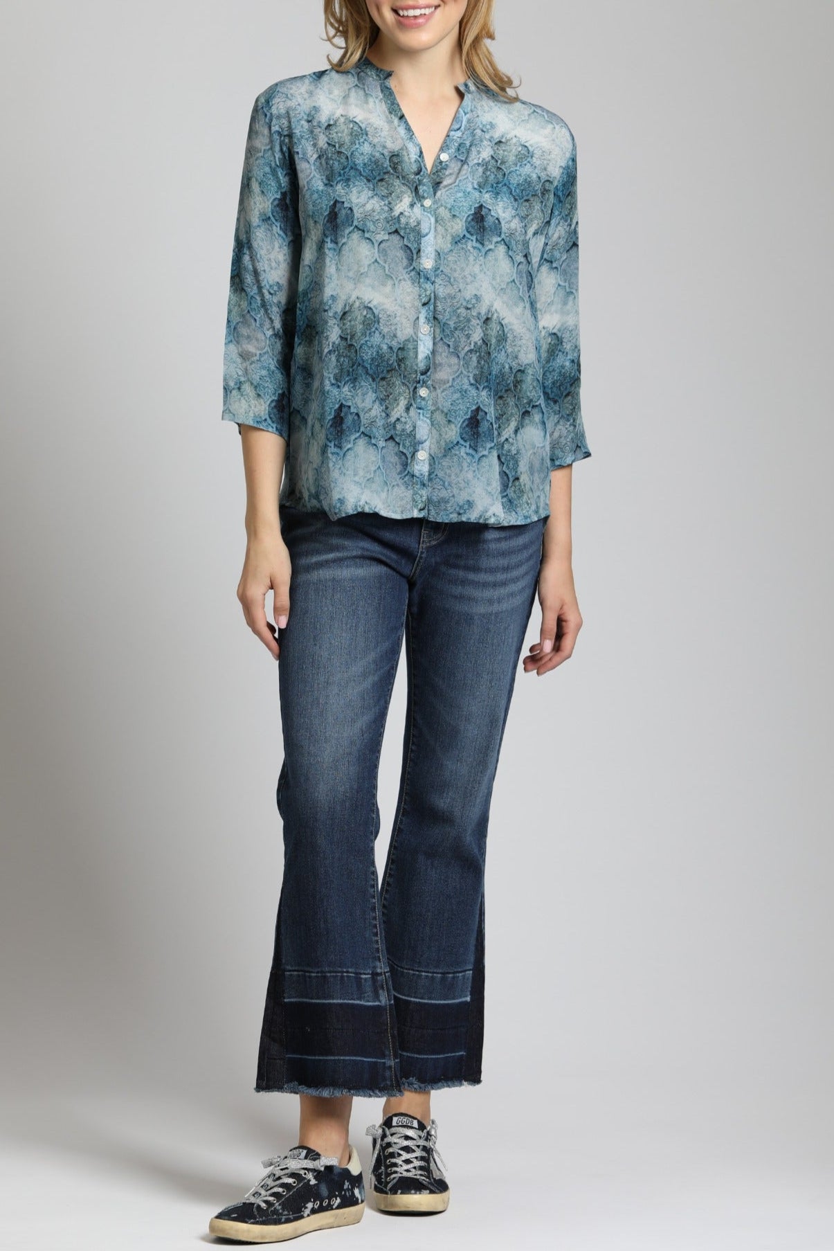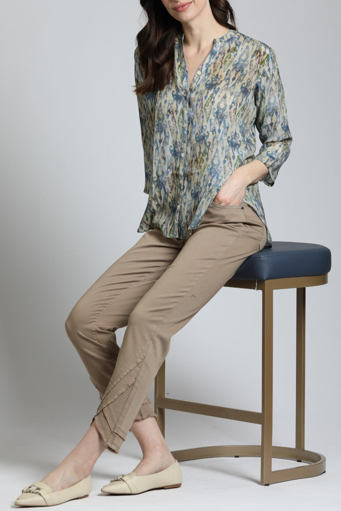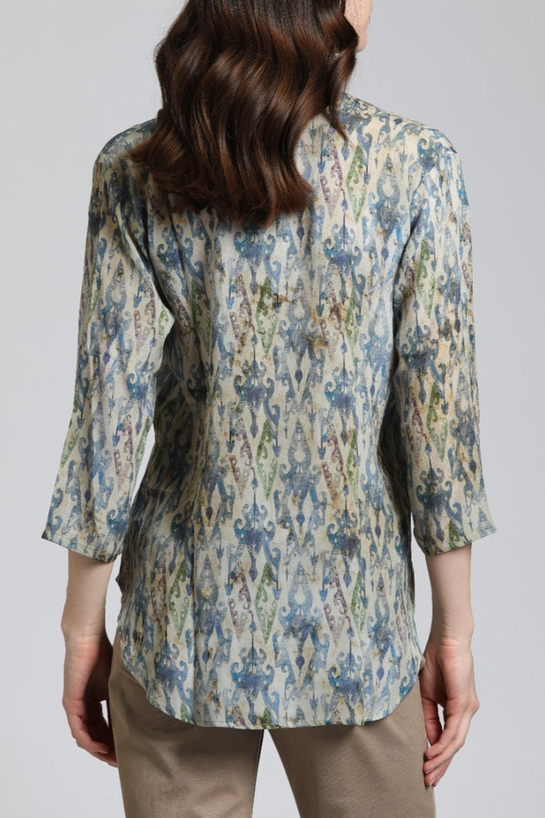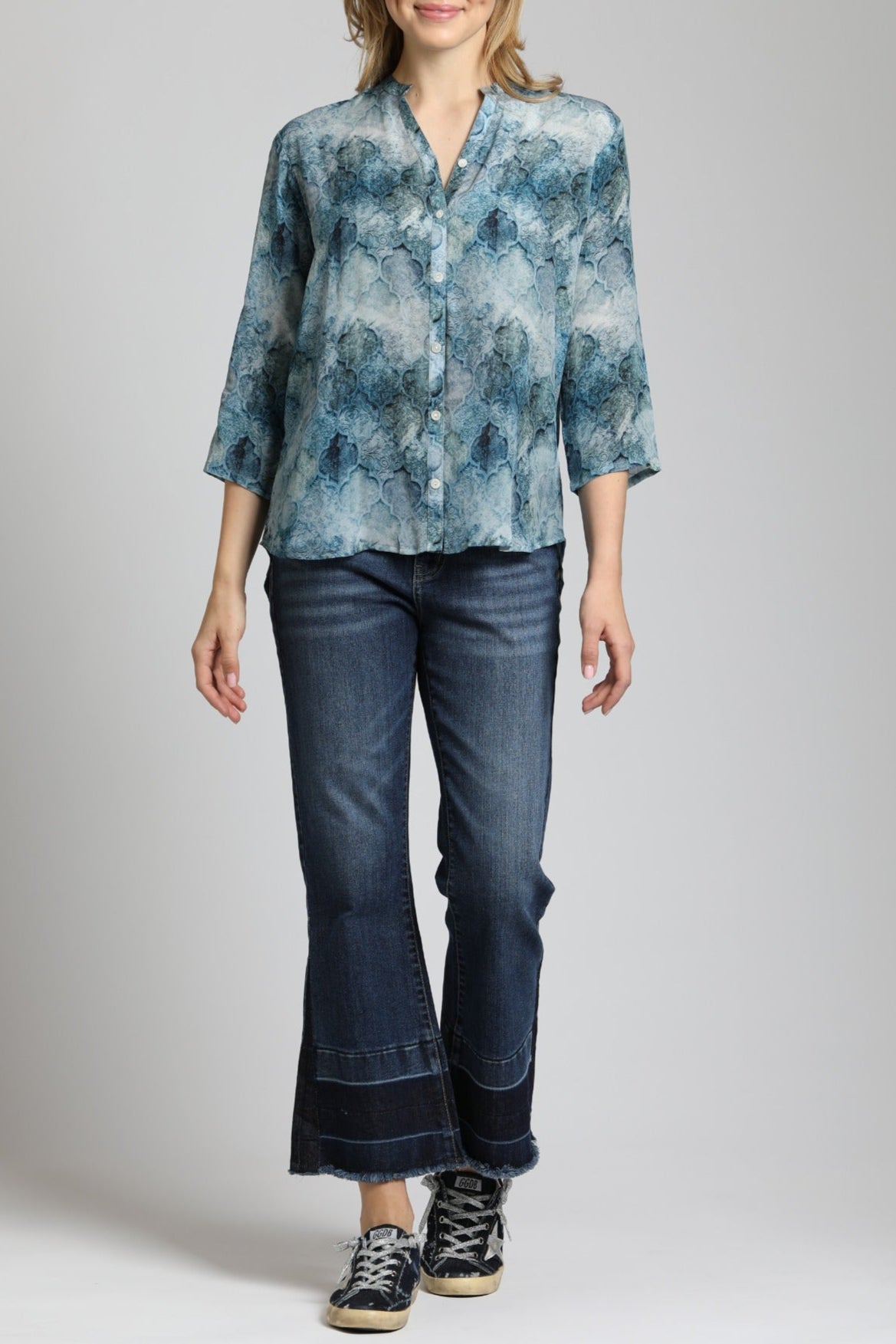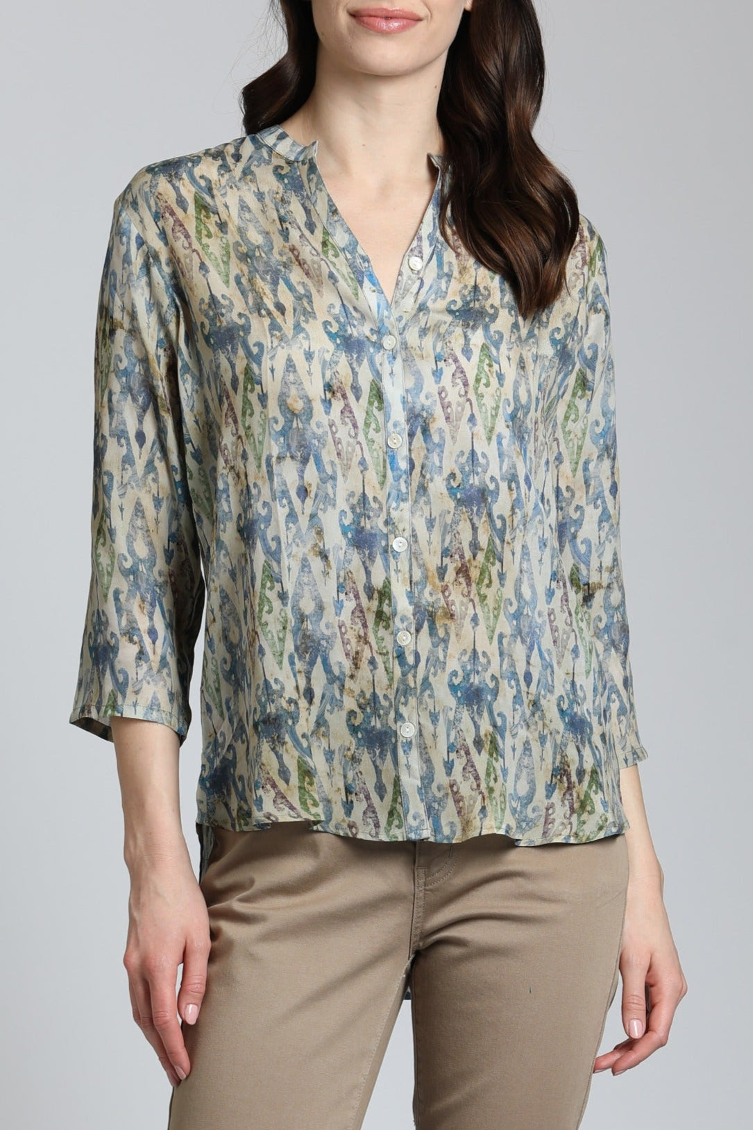 3/4 Sleeve Mandarin Collar Button-up Shirt
