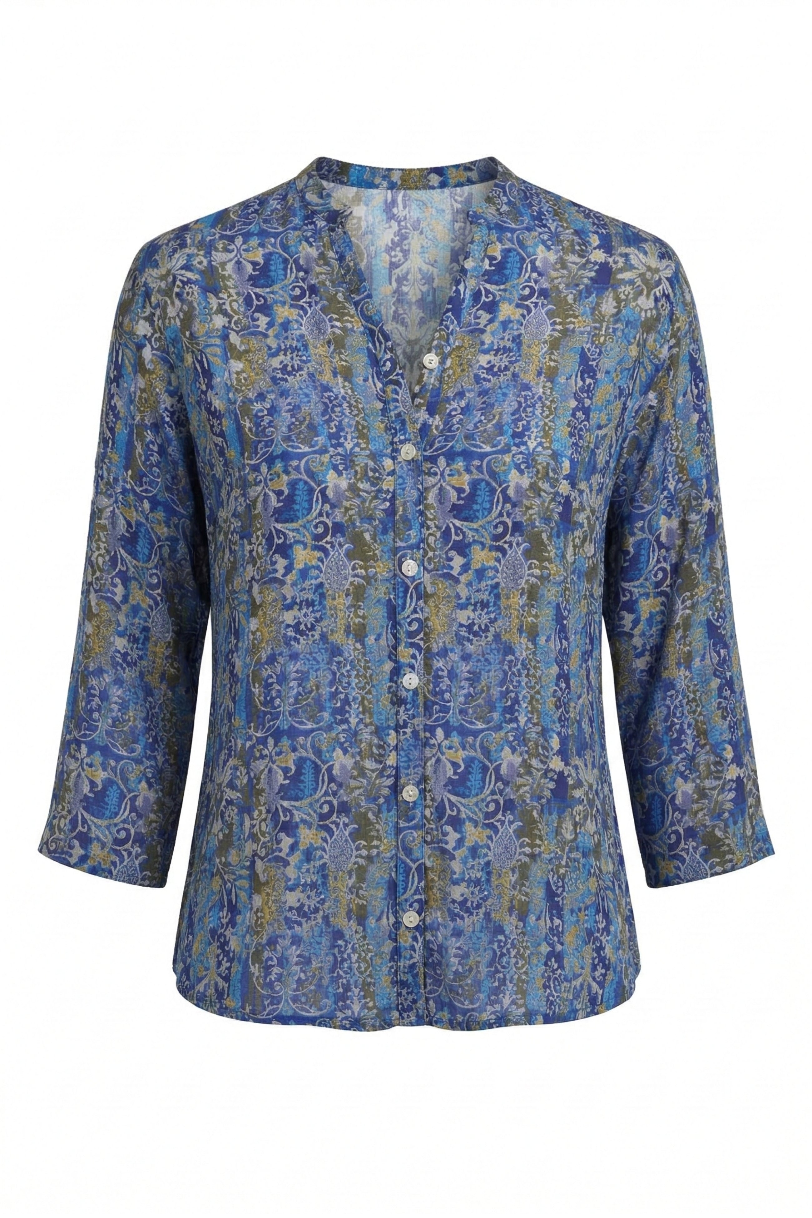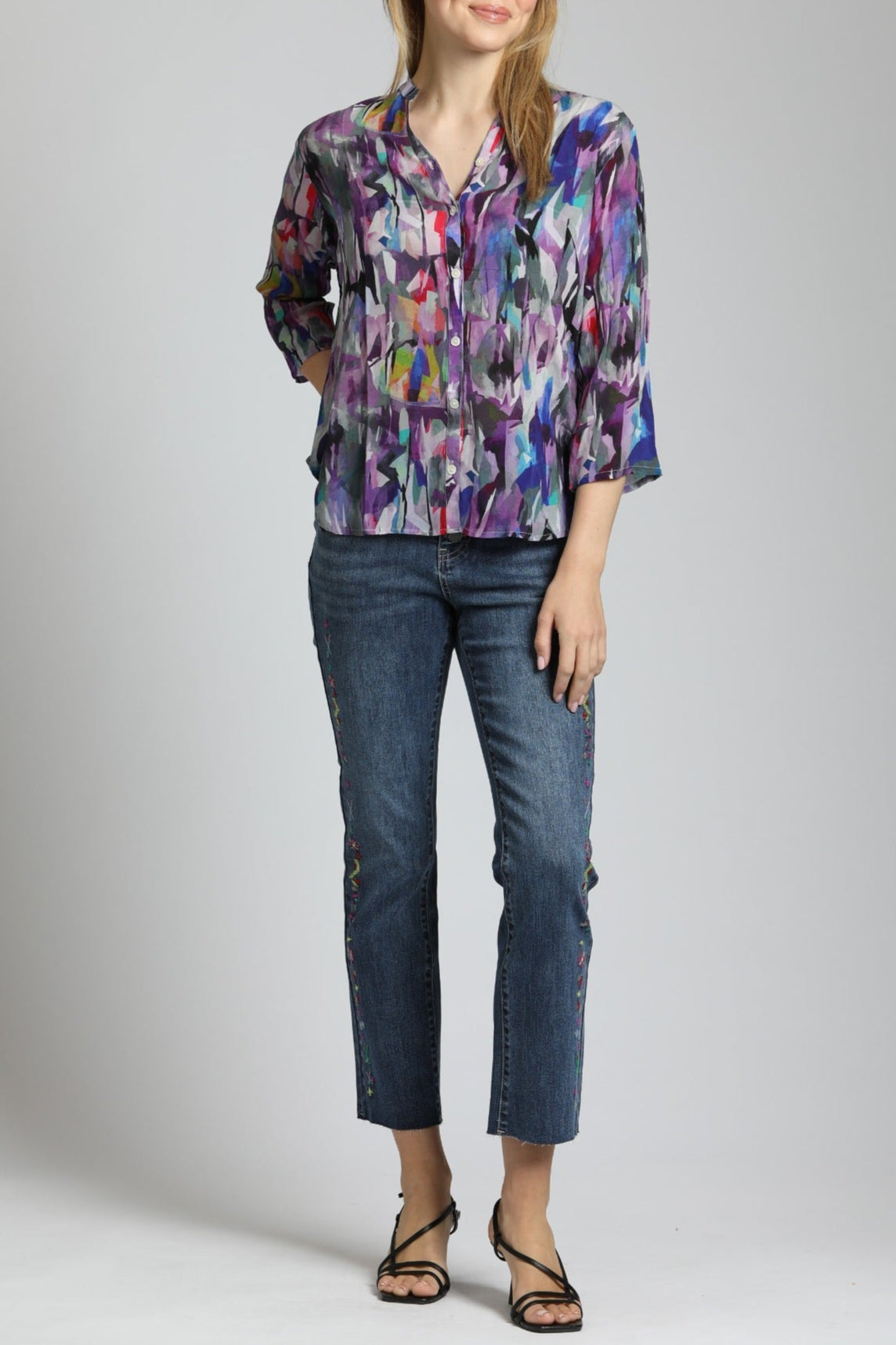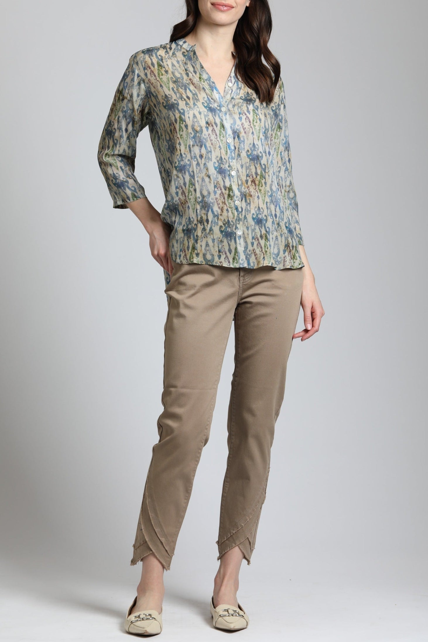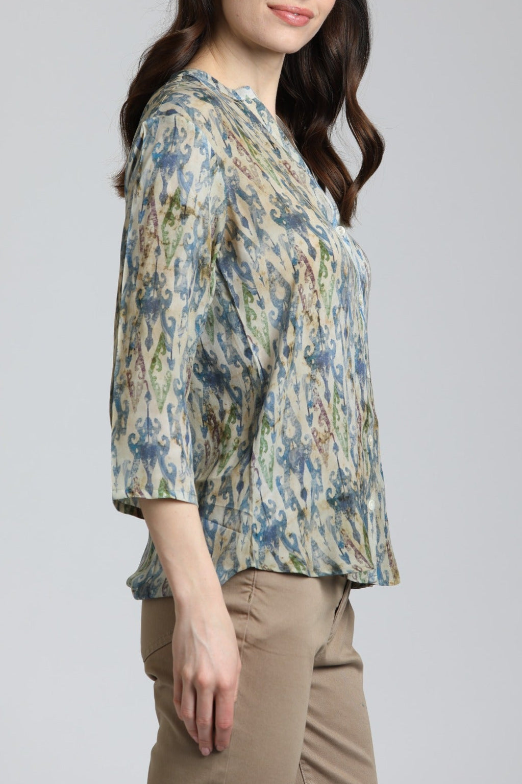 3/4 Sleeve Mandarin Collar Button-up Shirt