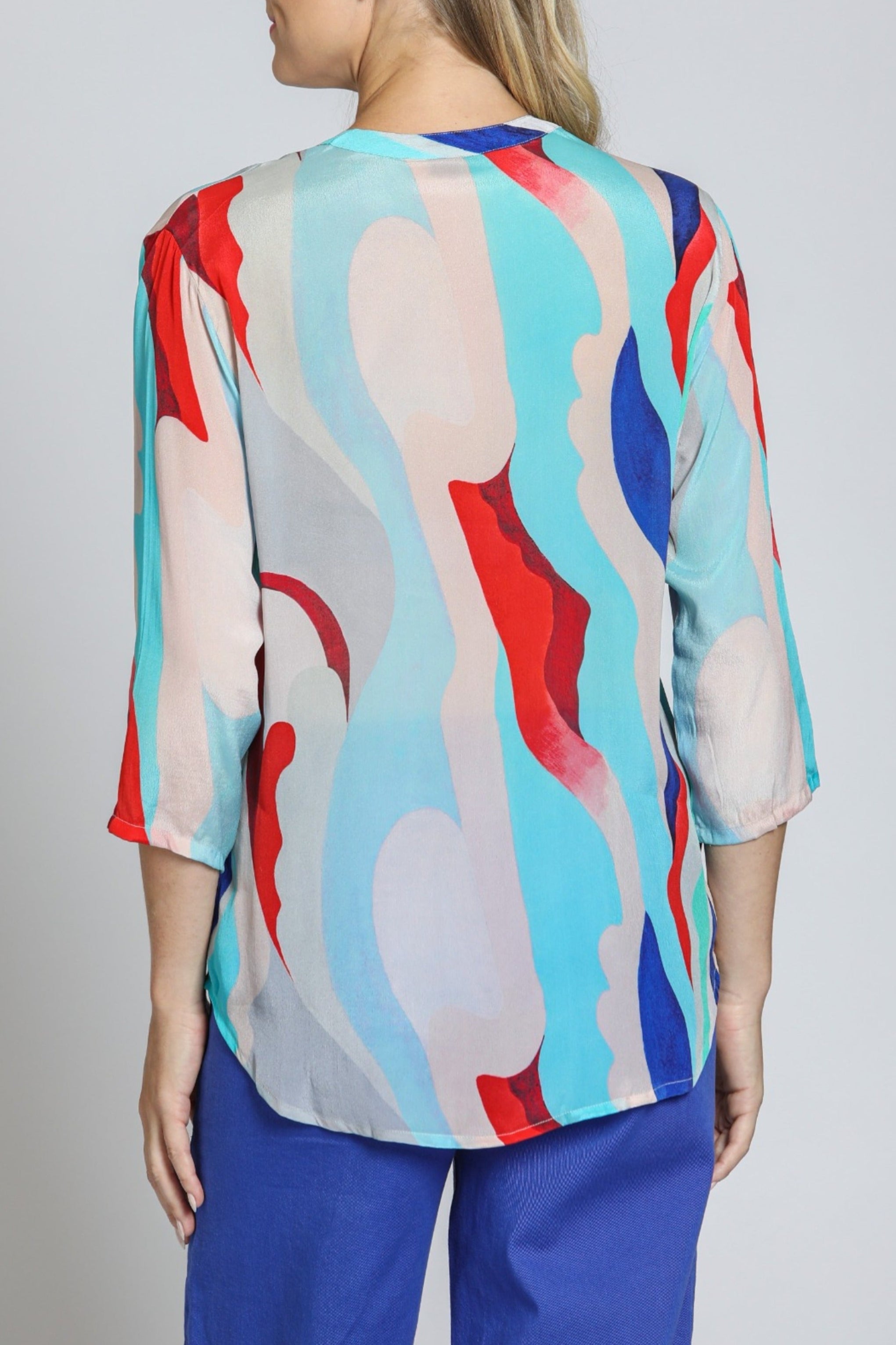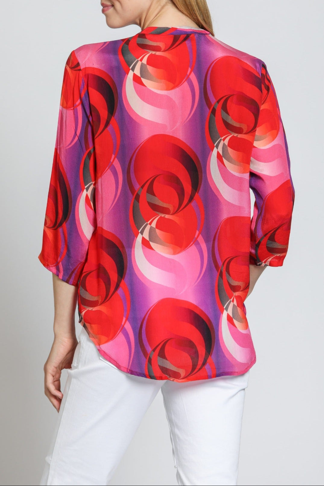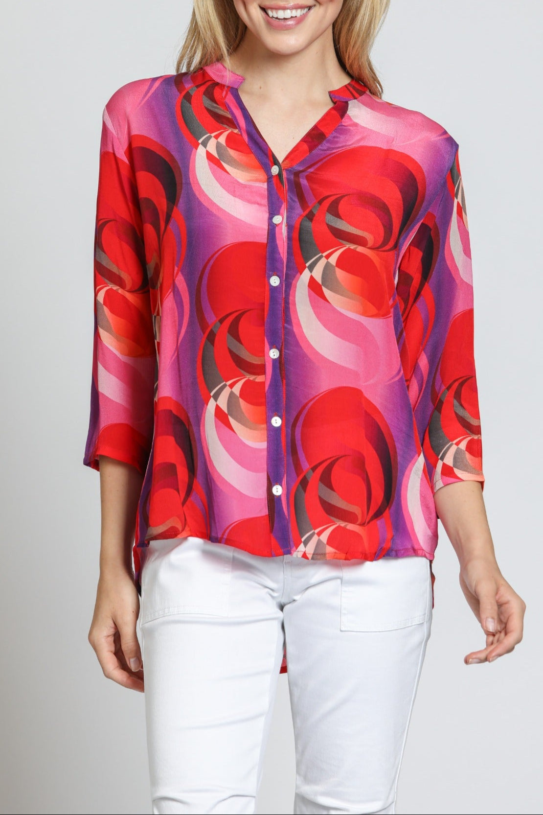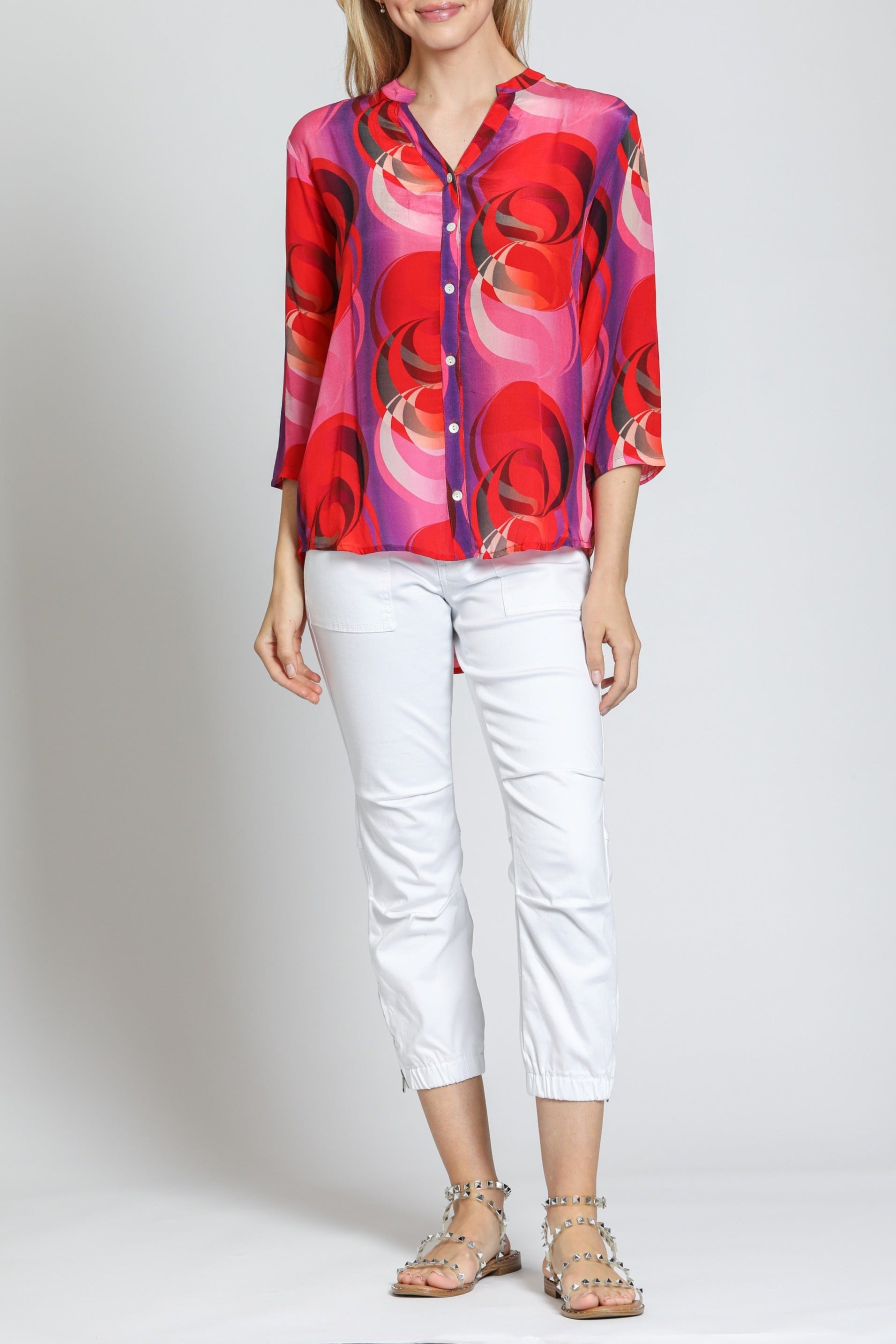 3/4 Sleeve Mandarin Collar Button-up
