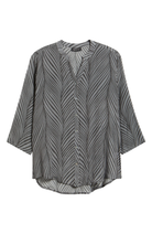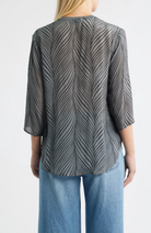 3/4 Sleeve Mandarin Collar Button-up