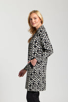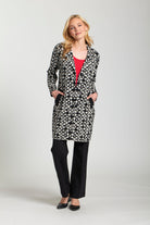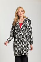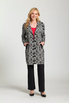 Make a graphic style statement with this eye-catching Abstract Dot Sweater Coat, a cozy knit layer with a sophisticated, longline silhouette. This coat features a striking, high-contrast geometric pattern in black and off-white that offers a contemporary update to classic outerwear. Designed with a smart notched lapel and an easy single-button closure, it provides the structure of a coat with the soft comfort of a heavy knit sweater. This coat is the perfect versatile piece for instantly elevating any outfit, from tailored pants to casual denim.