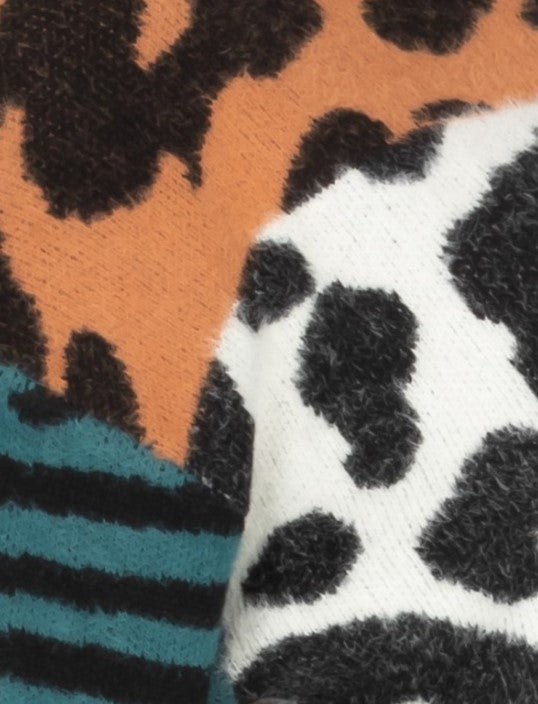 Add a playful and stylish touch to your wardrobe with this Animal Patched Sweater. Crafted from soft, cozy knit fabric, this sweater features charming animal patch details that bring a whimsical and unique element to your look. Its relaxed fit and versatile design make it perfect for pairing with jeans, skirts, or layered over dresses for a casual yet chic outfit. Whether for a fun daytime look or a cozy night out, this sweater is a standout piece that blends comfort with personality.