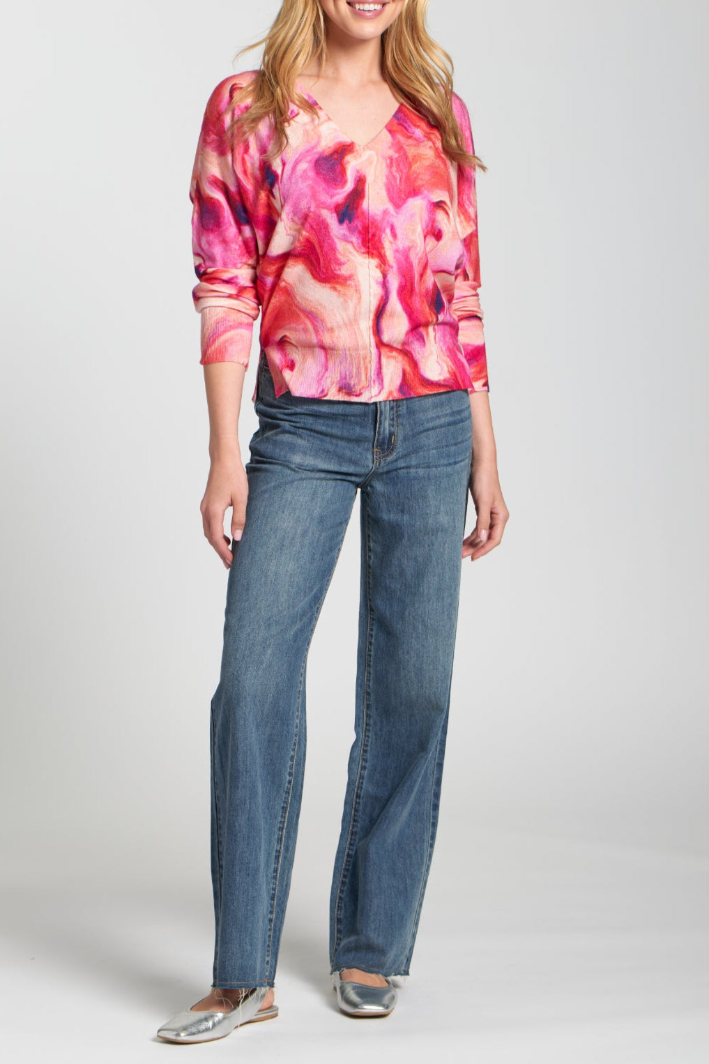 Add a pop of color to your wardrobe with this Printed V-Neck Pullover, designed for both comfort and style. Featuring a flattering V-neckline and a relaxed pullover silhouette, this top is perfect for everyday wear. The vibrant allover print brings a bold, artistic touch, while the long sleeves provide cozy coverage. Crafted from soft, breathable fabric and finished with a clean straight hemline, it pairs effortlessly with jeans or trousers for a casual-chic look.