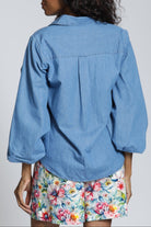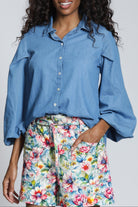 Voluminous three-quarter sleeves frame this cotton-chambray button-up shirt made from lightweight cotton for a breezy style that looks good all year long.