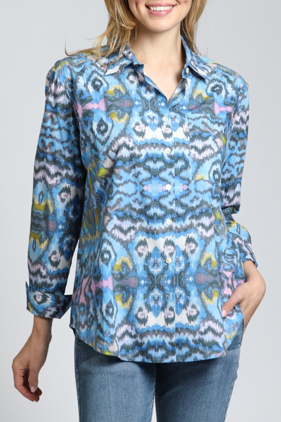 Meet Your New Favorite Shirt! transporting you to exotic lands with every wear. The relaxed boyfriend fit gives off effortless cool, while the button-up style offers versatility. Whether you're exploring new horizons or simply enjoying a sunny day out, this shirt is your perfect companion. This shirt isn't just clothing; it's a vibe.