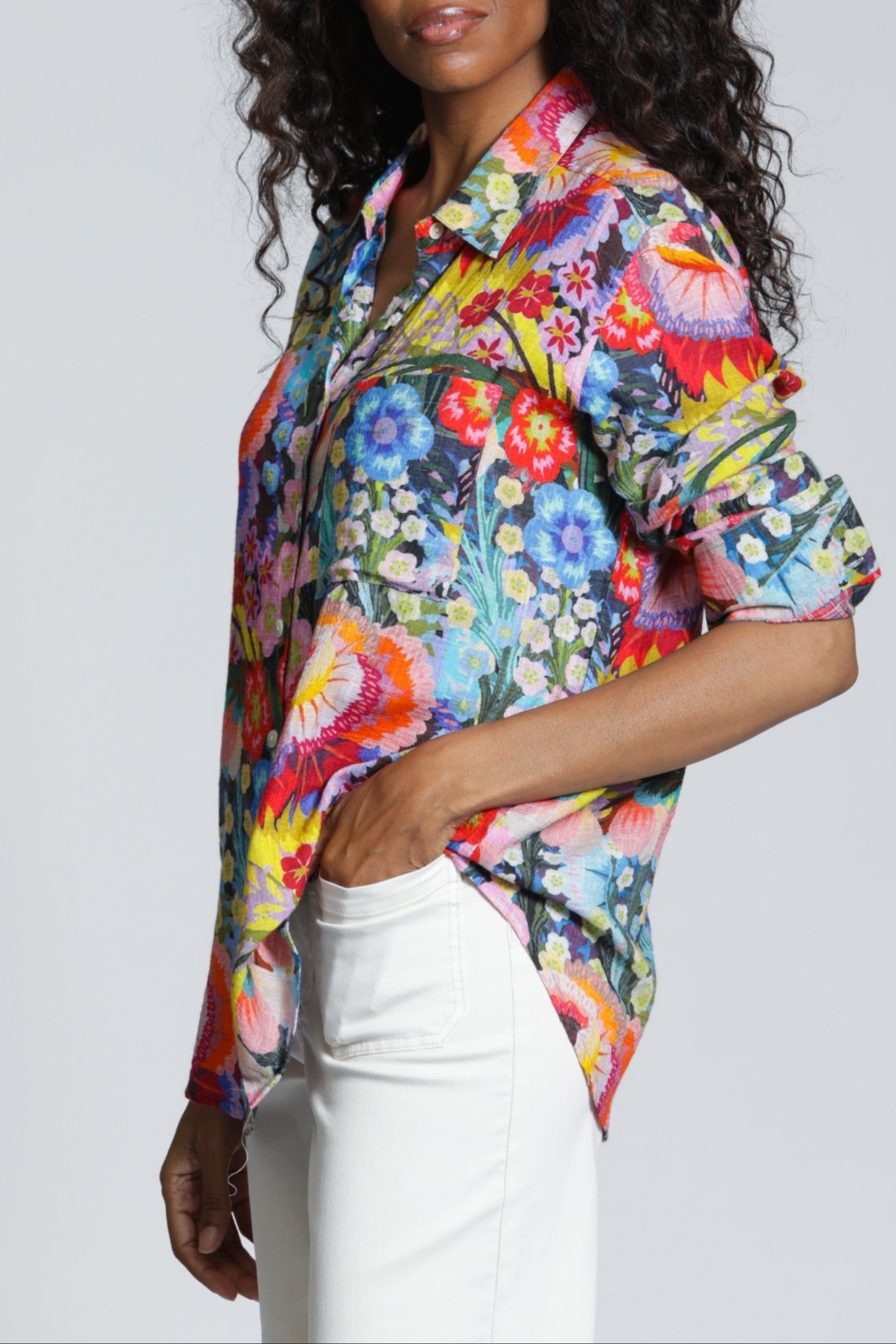 There is no doubt you're going to fall for this subtle yet chic craft. Designed with a classic button-up silhouette, it offers a timeless appeal for any occasion. Embrace its relaxed boyfriend fit, ensuring both comfort and elegance with every wear. Perfect for a leisurely day out or a casual gathering, this shirt effortlessly elevates your style with its botanical appeal.