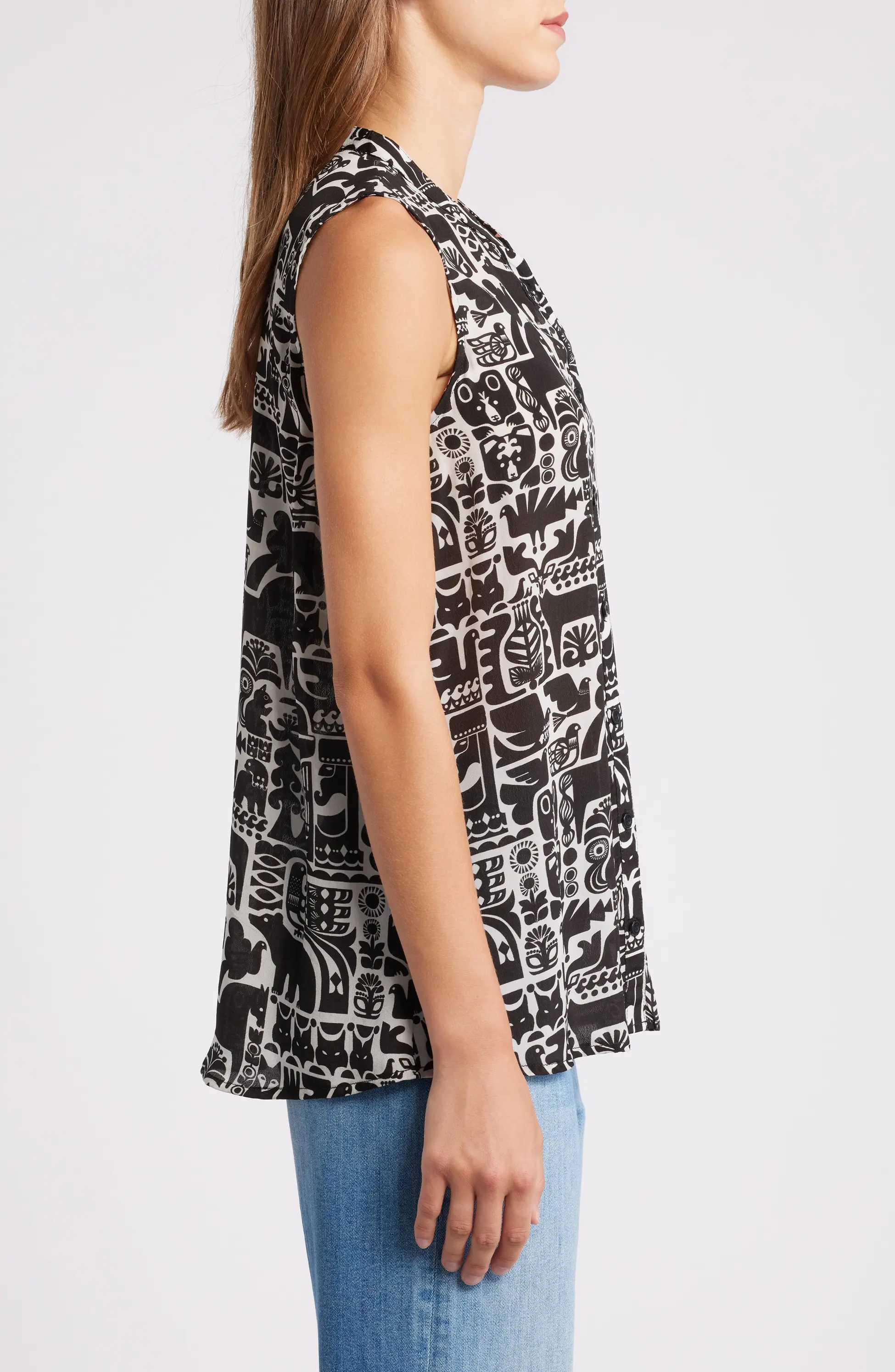 We absolutely love shirts that have extra special touches and this stunning button-up tank delivers flattering silhouettes with bold hues and beautiful motifs that are bound to turn heads through every season and beyond.