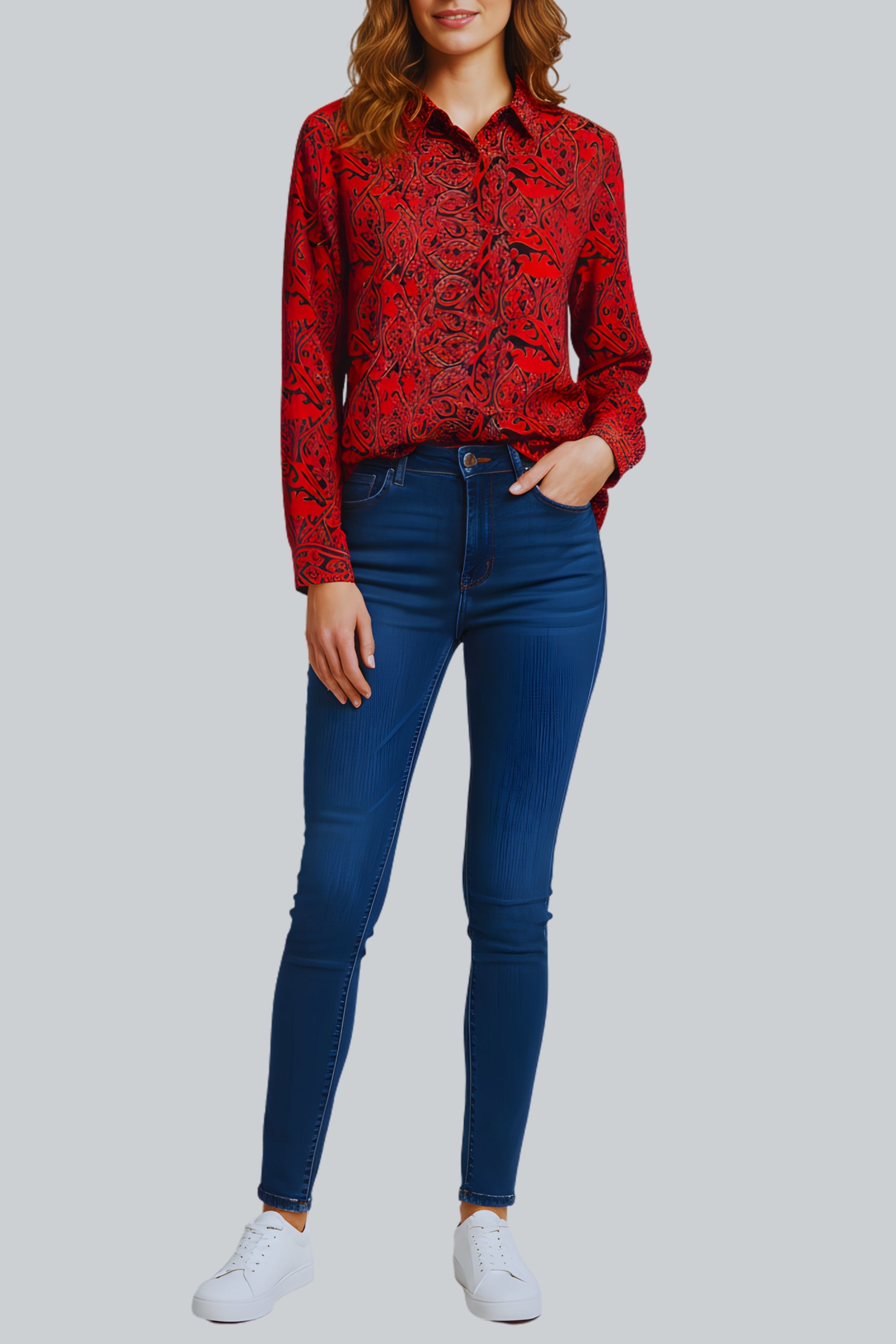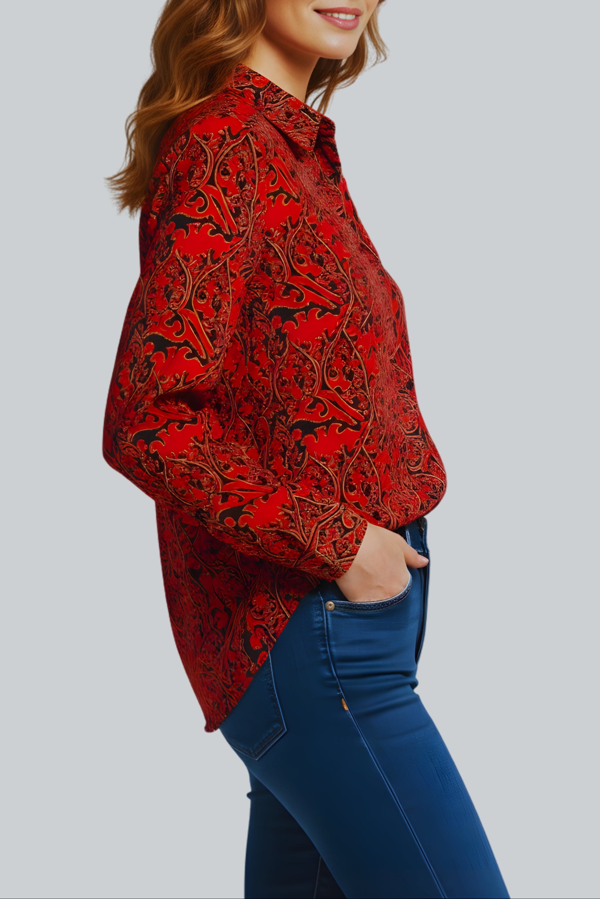 A long sleeve button-up is a style essential, and this easy piece has captured our attention thanks to the print details and effortless look. We love the beautiful prints flowing on the fabric, rolled up tab sleeves, flattering silhouette and every other detail we need to snap up this easy blouse and wear it on repeat in every season. Slip on this button-up shirt and fall in love with our flattering silhouette, relaxed fit and breathtaking print designs. Nothing beats a basic with a splash of colors.