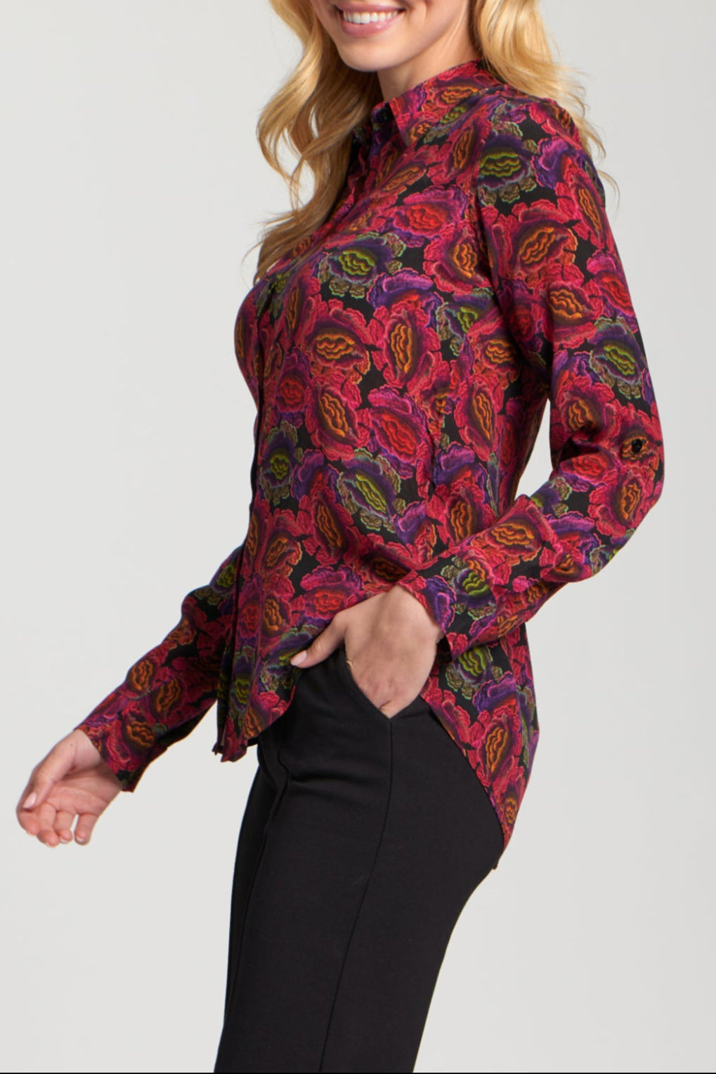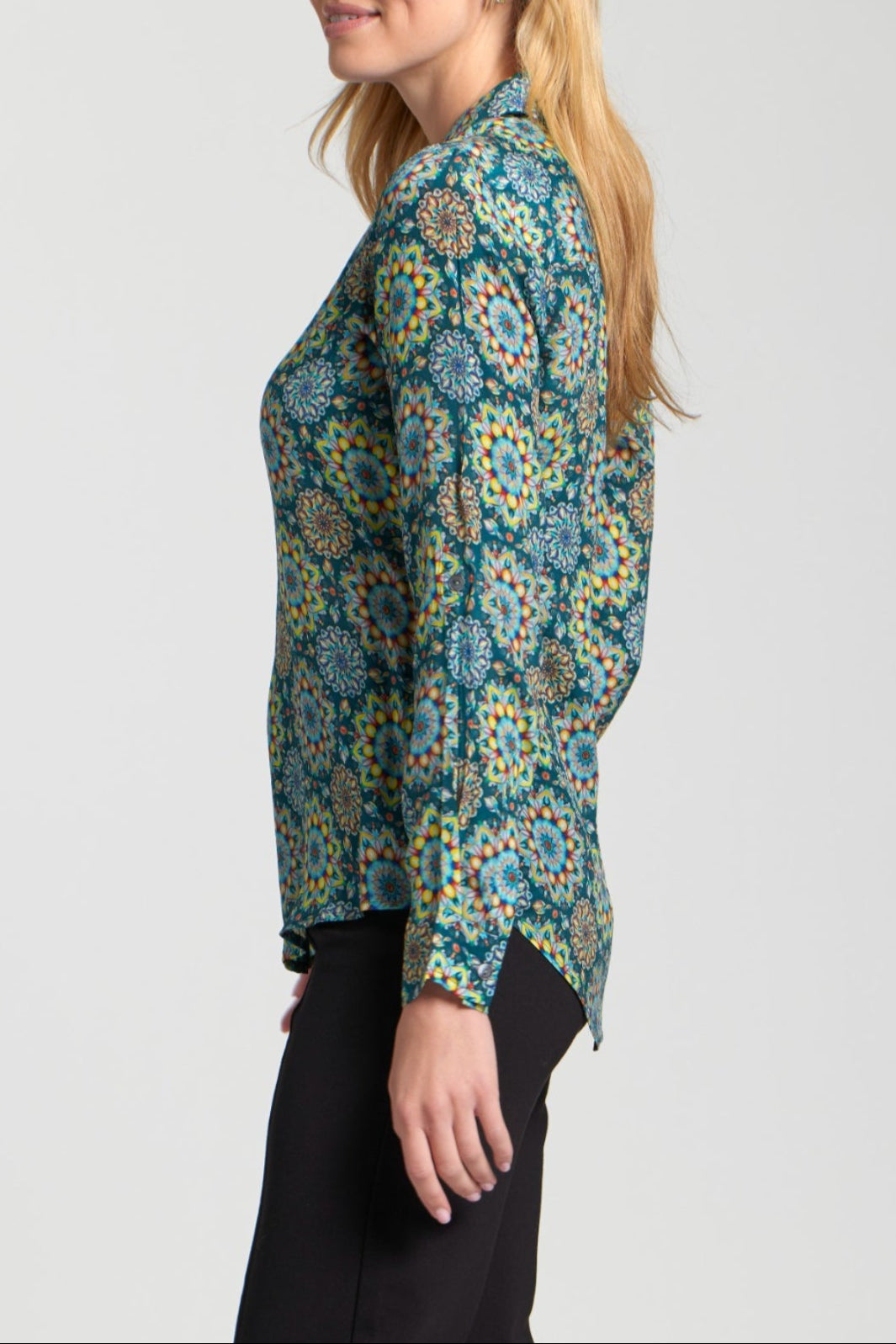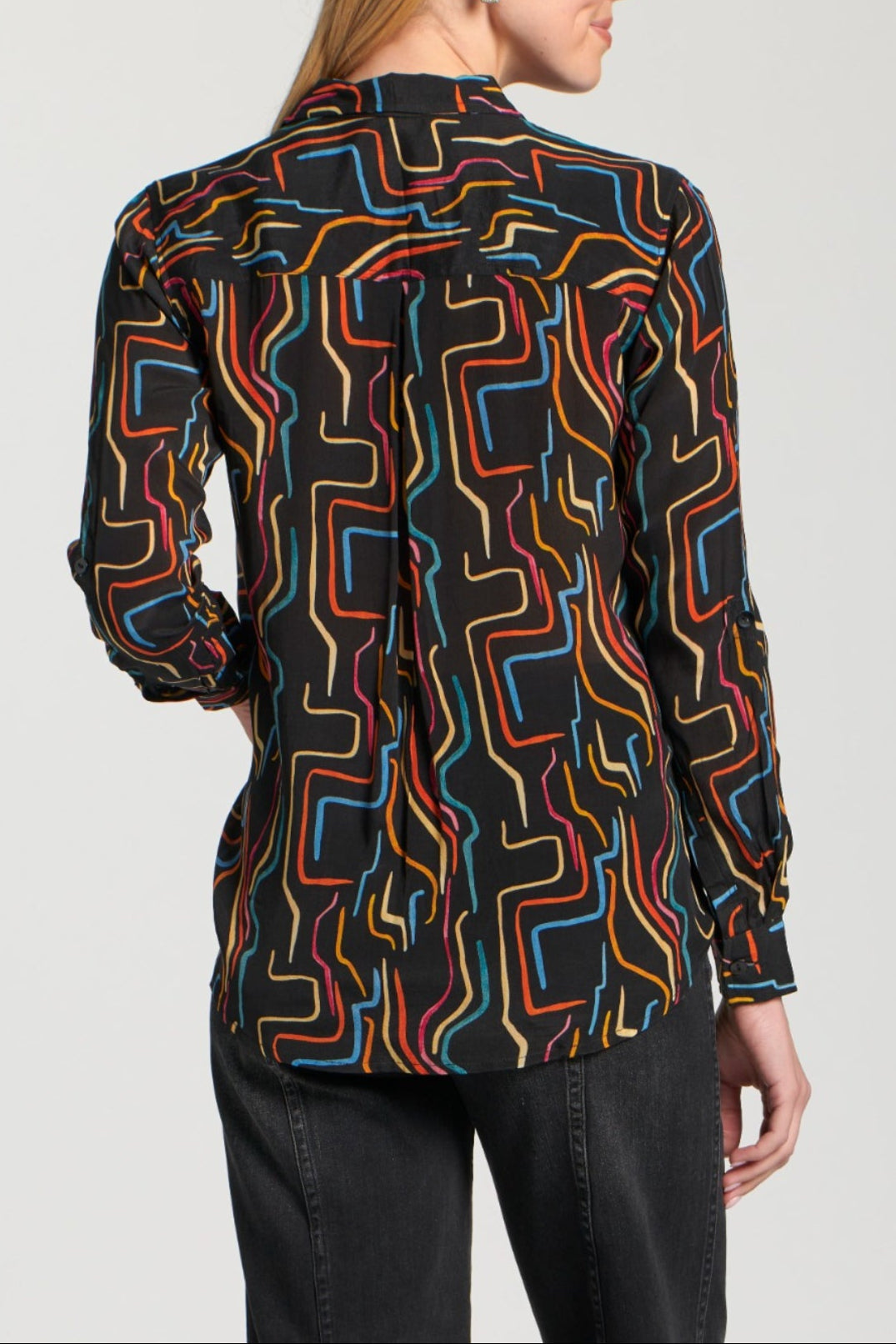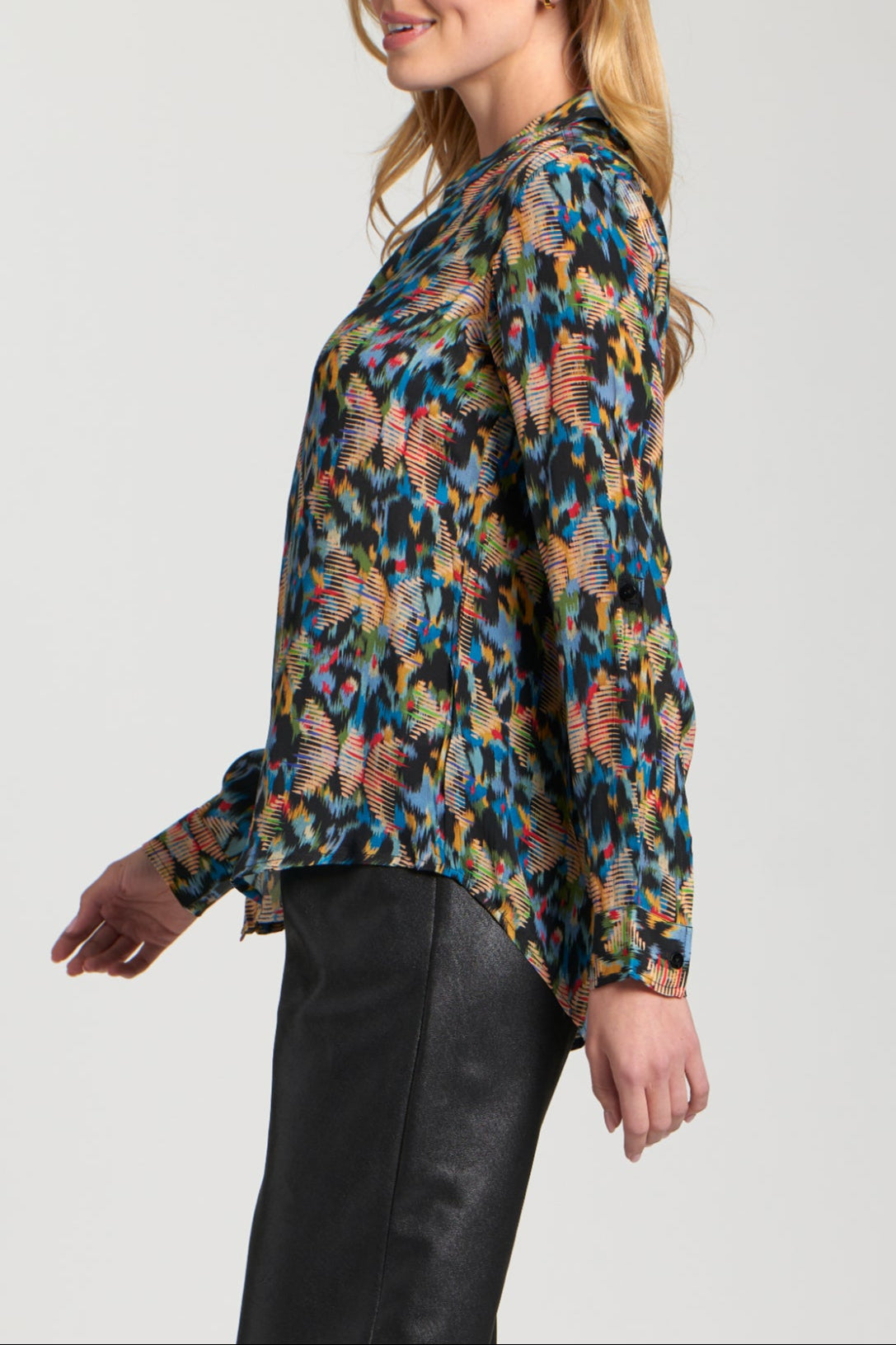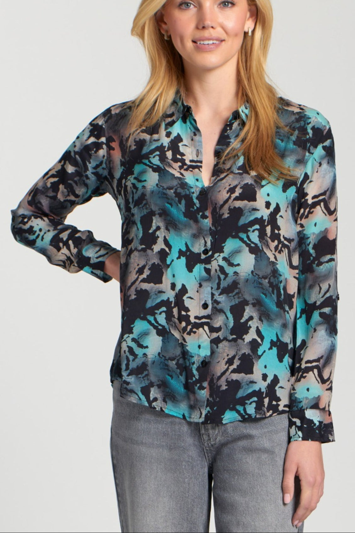 A long sleeve button-up is a style essential, and this easy piece has captured our attention thanks to the print details and effortless look. We love the beautiful prints flowing on the fabric, rolled up tab sleeves, flattering silhouette and every other detail we need to snap up this easy blouse and wear it on repeat in every season. Slip on this button-up shirt and fall in love with our flattering silhouette, relaxed fit and breathtaking print designs. Nothing beats a basic with a splash of colors.