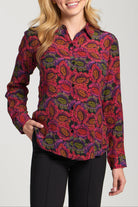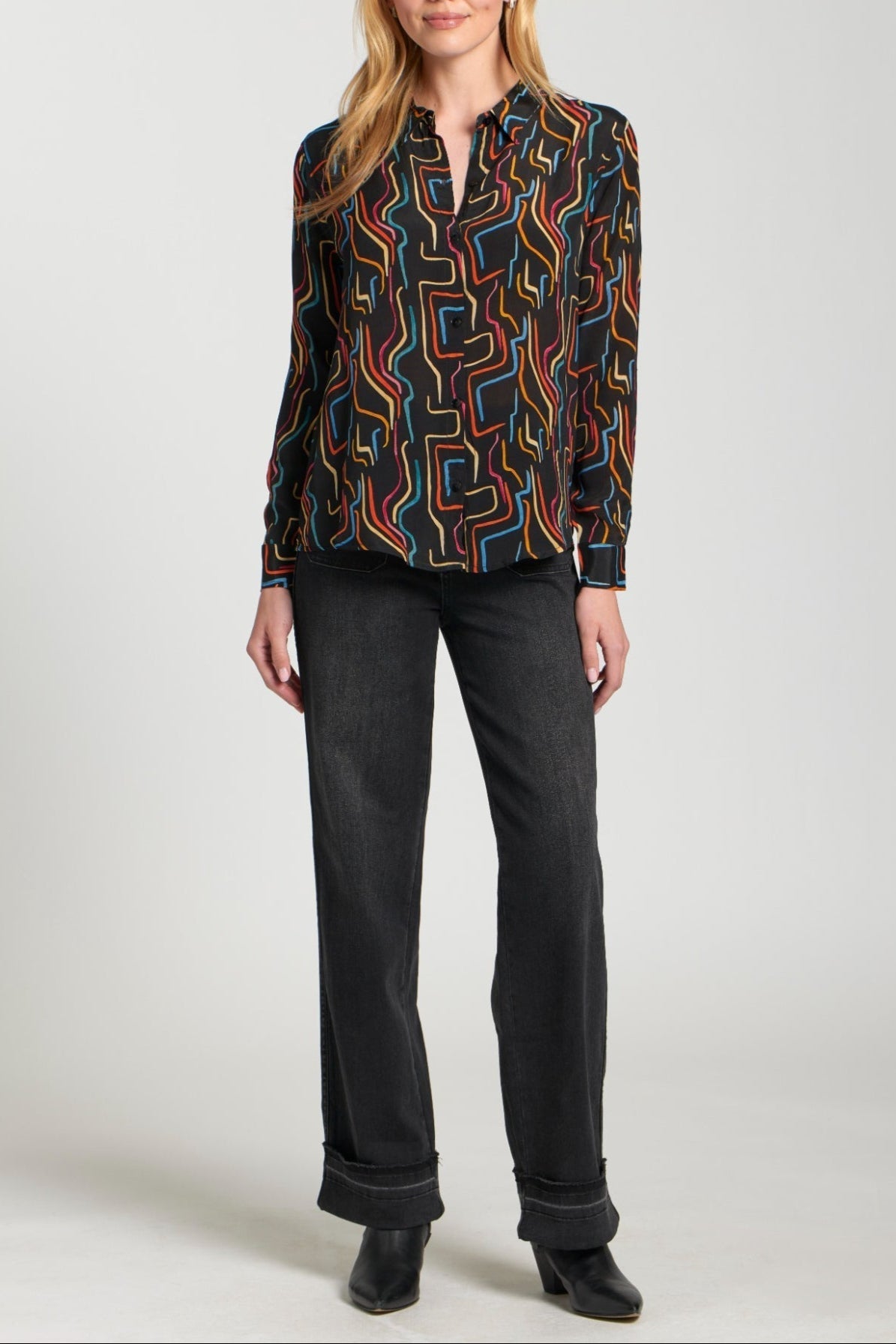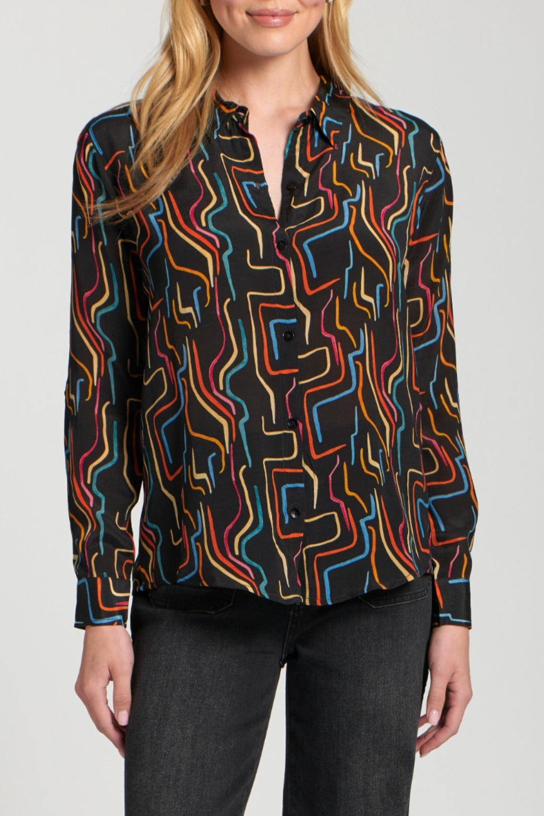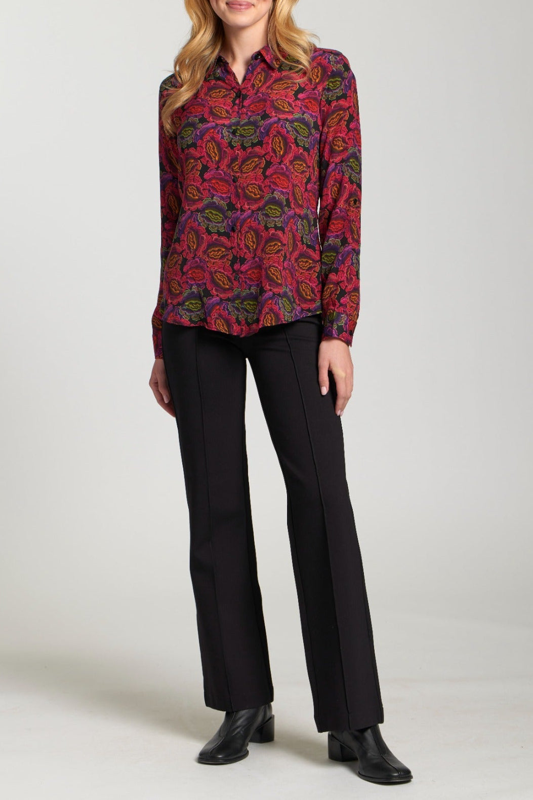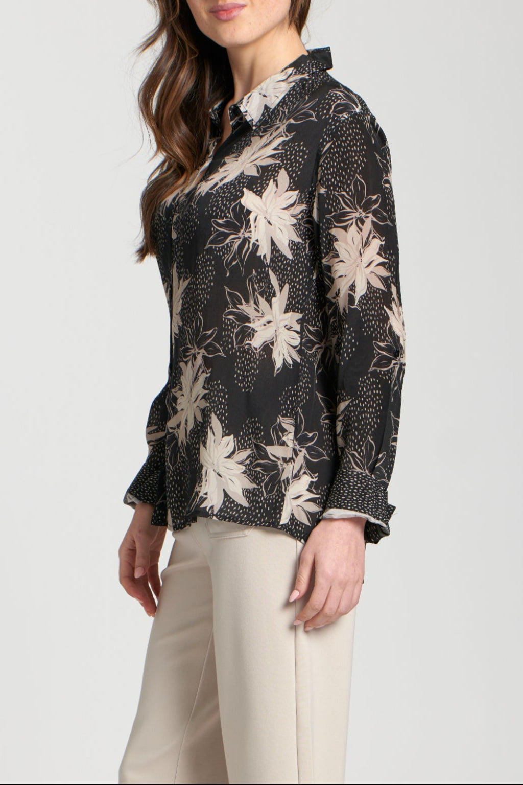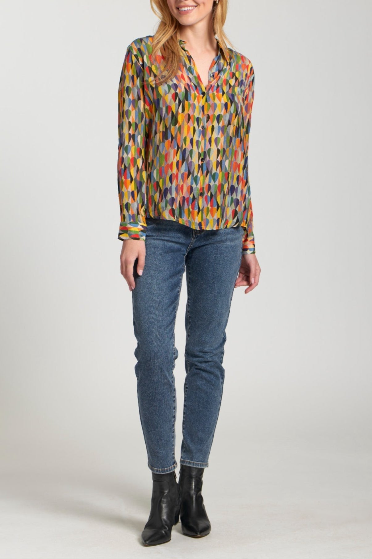A long sleeve button-up is a style essential, and this easy piece has captured our attention thanks to the print details and effortless look. We love the beautiful prints flowing on the fabric, rolled up tab sleeves, flattering silhouette and every other detail we need to snap up this easy blouse and wear it on repeat in every season. Slip on this button-up shirt and fall in love with our flattering silhouette, relaxed fit and breathtaking print designs. Nothing beats a basic with a splash of colors.