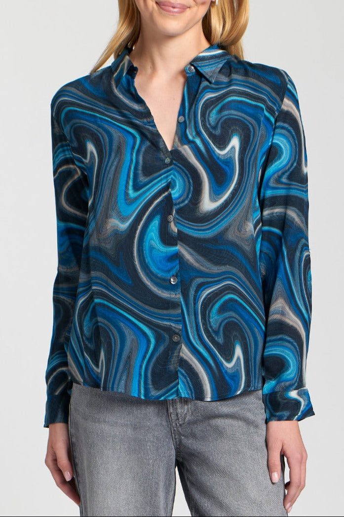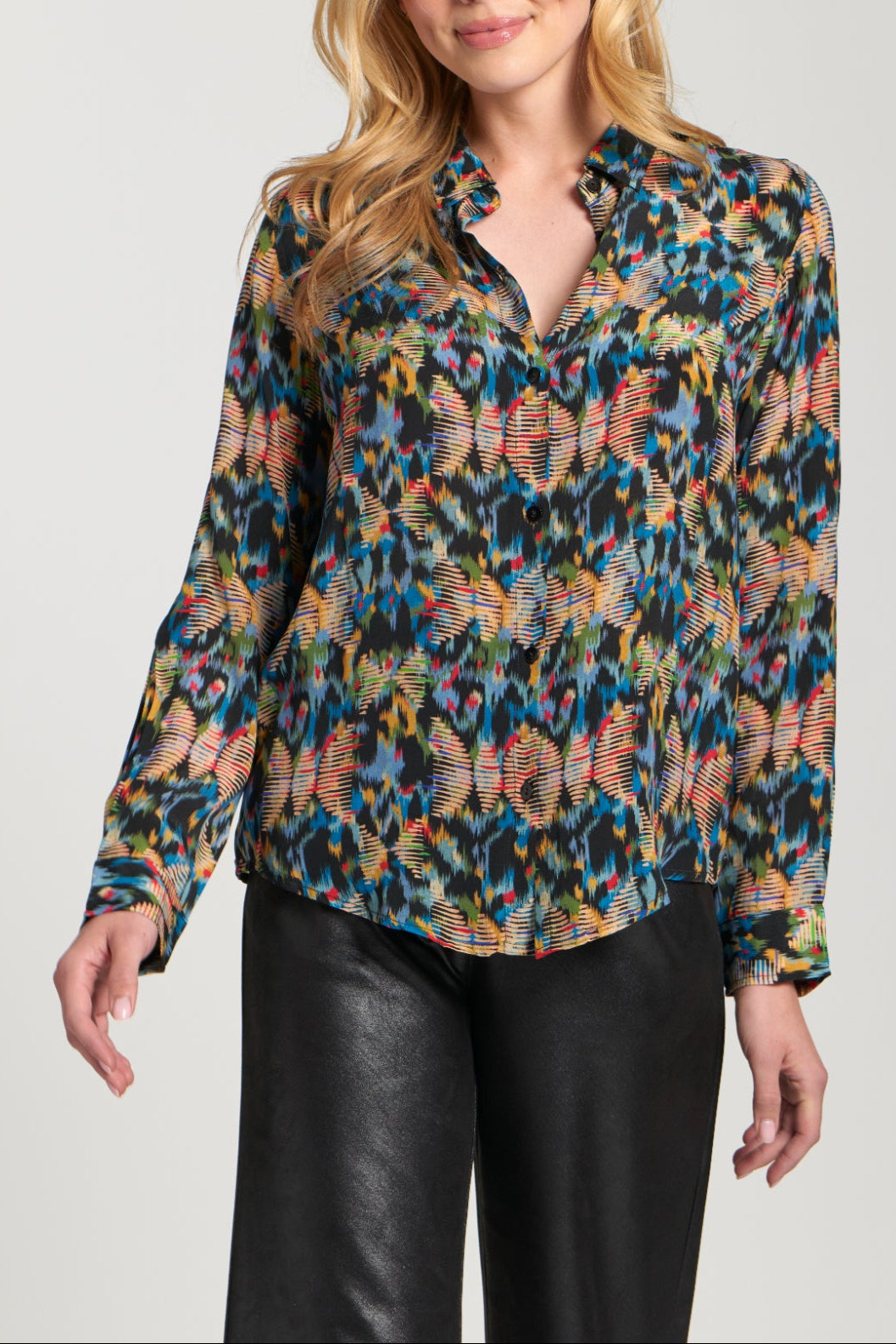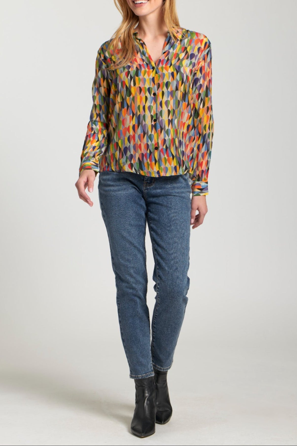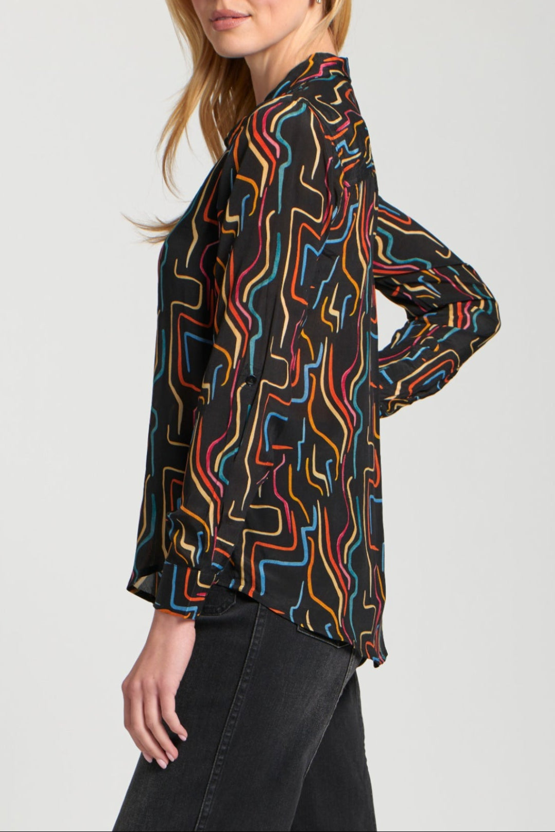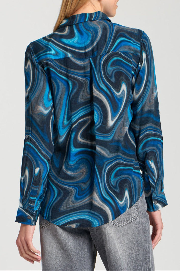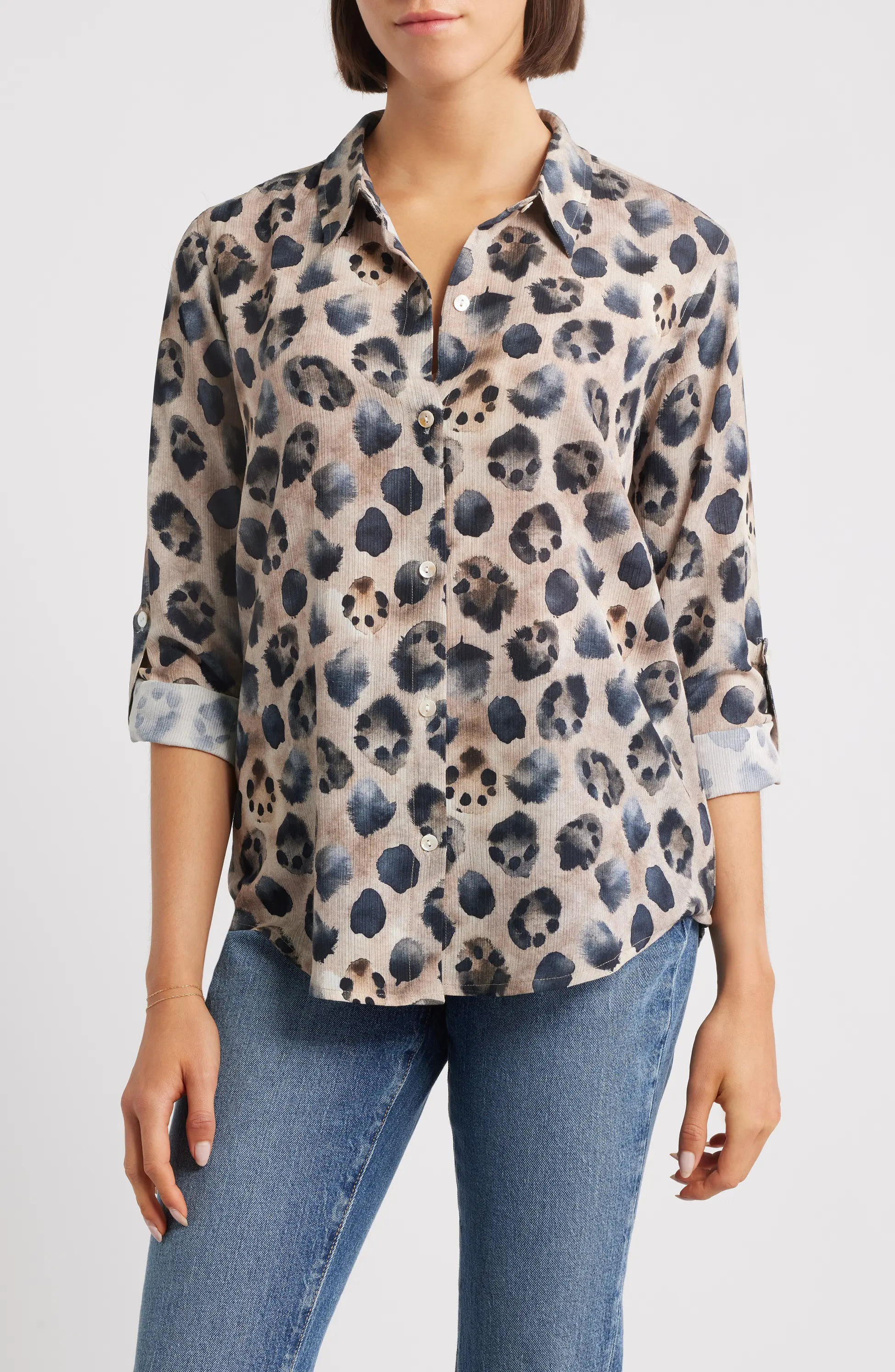 A long sleeve button-up is a style essential, and this easy piece has captured our attention thanks to the print details and effortless look. We love the beautiful prints flowing on the fabric, rolled up tab sleeves, flattering silhouette and every other detail we need to snap up this easy blouse and wear it on repeat in every season. Slip on this button-up shirt and fall in love with our flattering silhouette, relaxed fit and breathtaking print designs. Nothing beats a basic with a splash of colors.