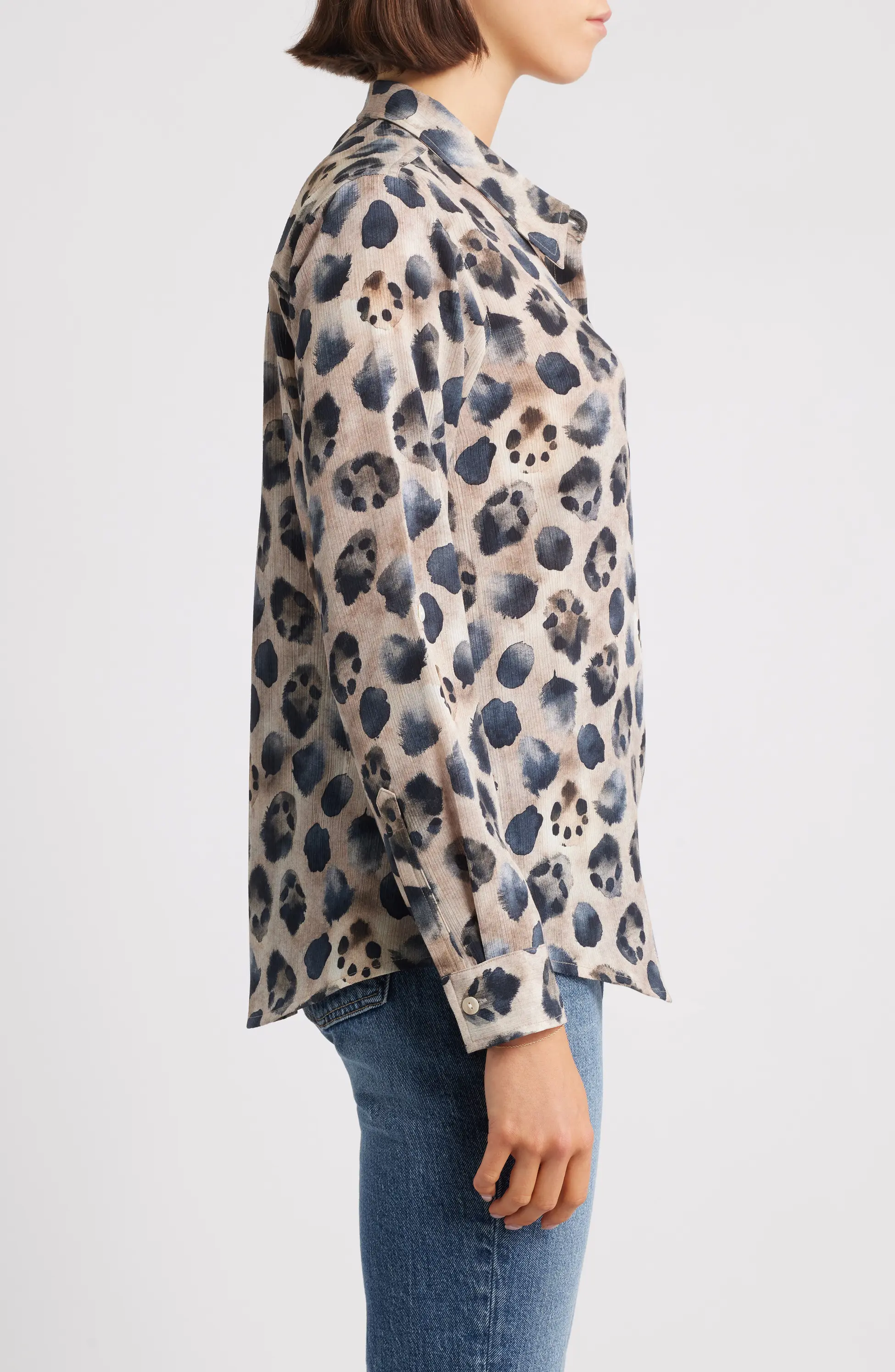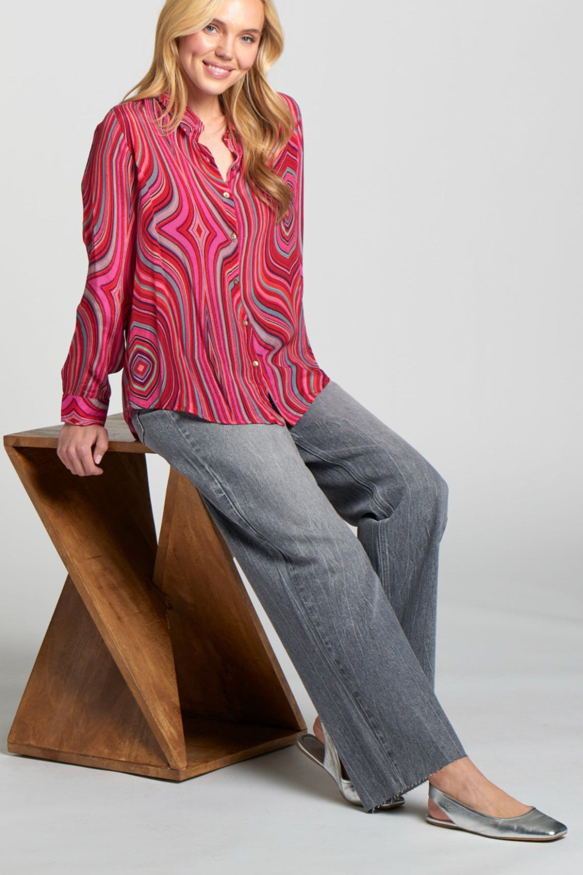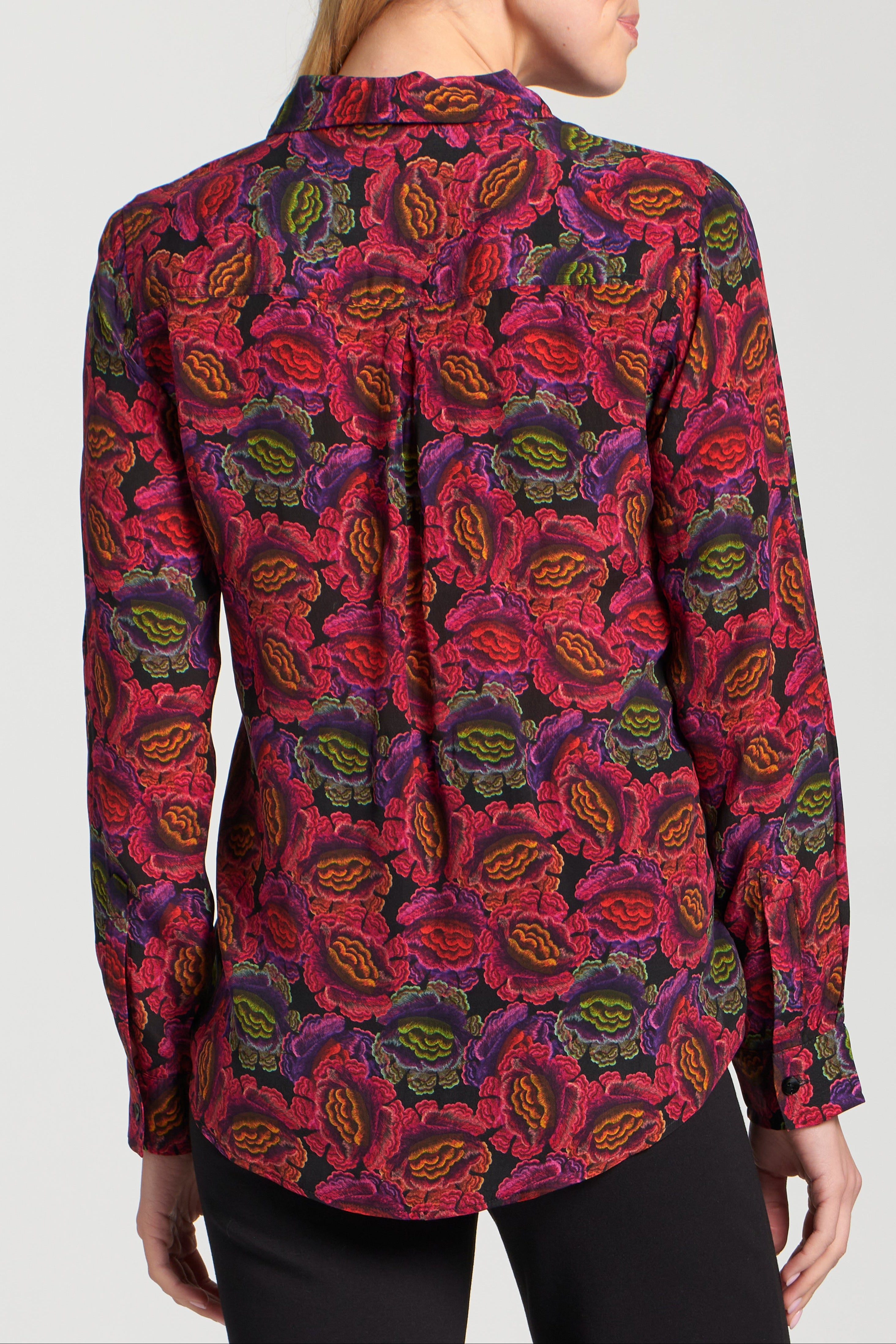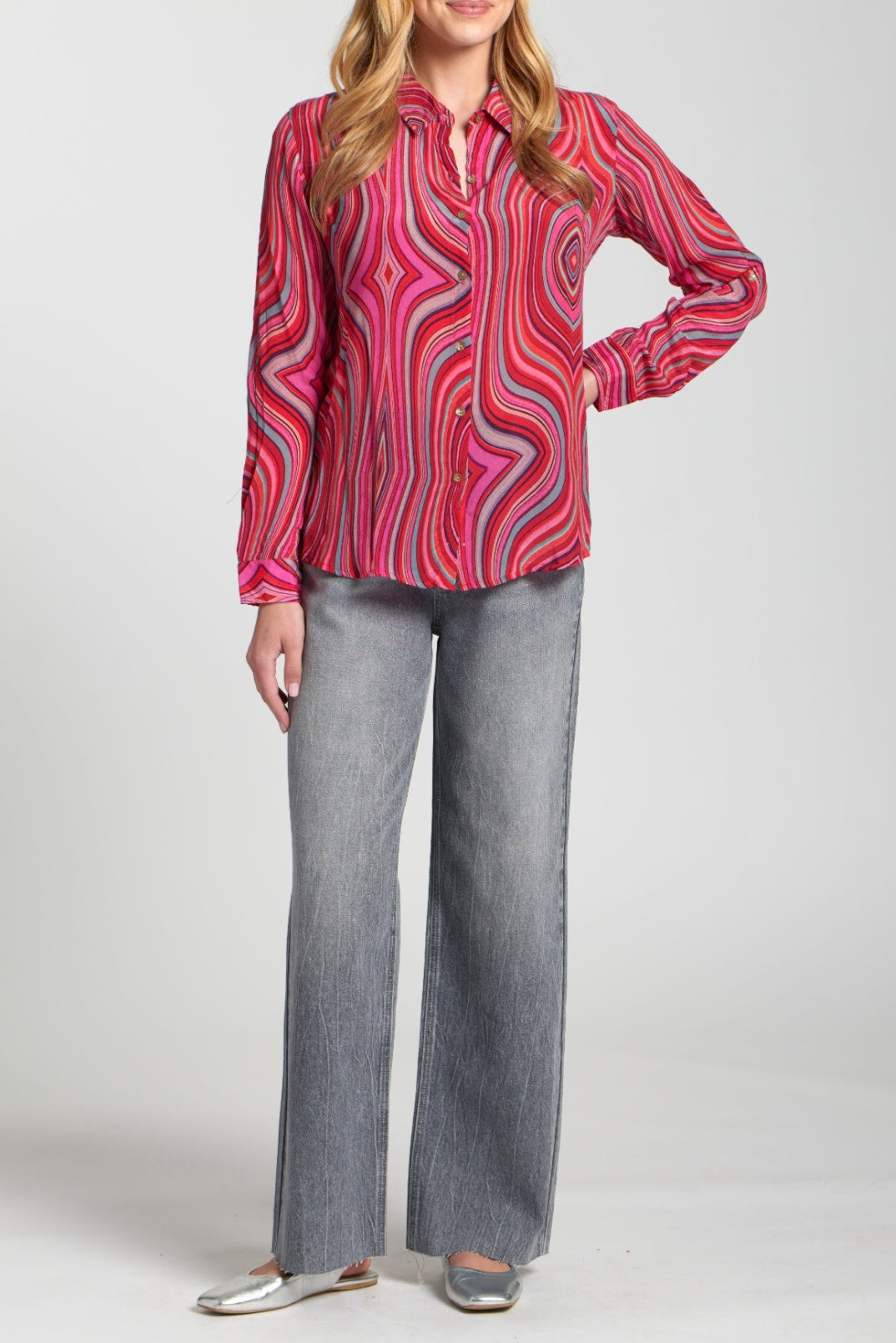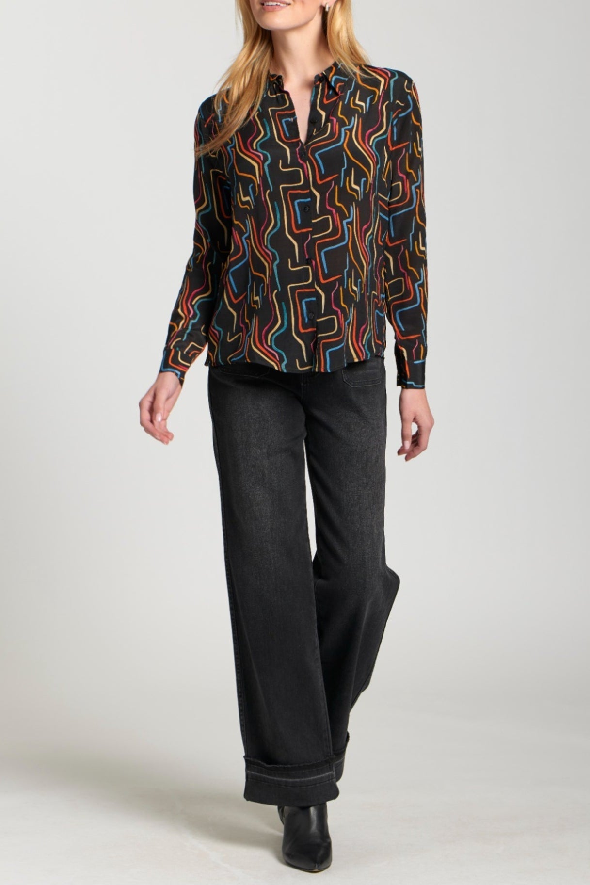 A long sleeve button-up is a style essential, and this easy piece has captured our attention thanks to the print details and effortless look. We love the beautiful prints flowing on the fabric, rolled up tab sleeves, flattering silhouette and every other detail we need to snap up this easy blouse and wear it on repeat in every season. Slip on this button-up shirt and fall in love with our flattering silhouette, relaxed fit and breathtaking print designs. Nothing beats a basic with a splash of colors.