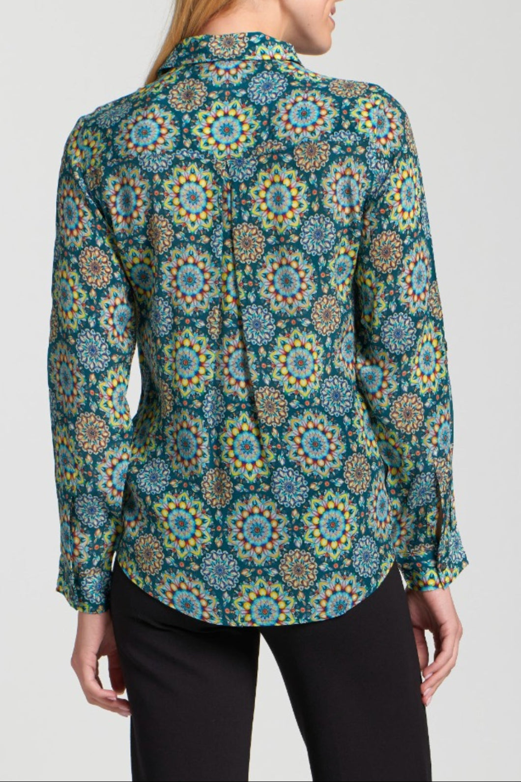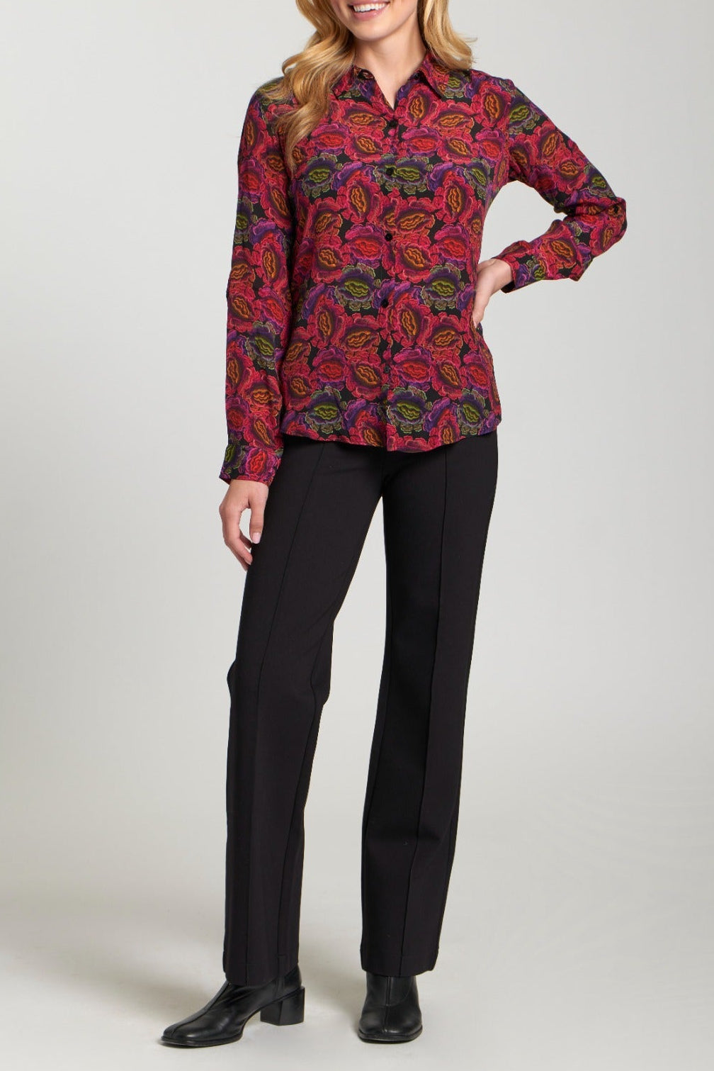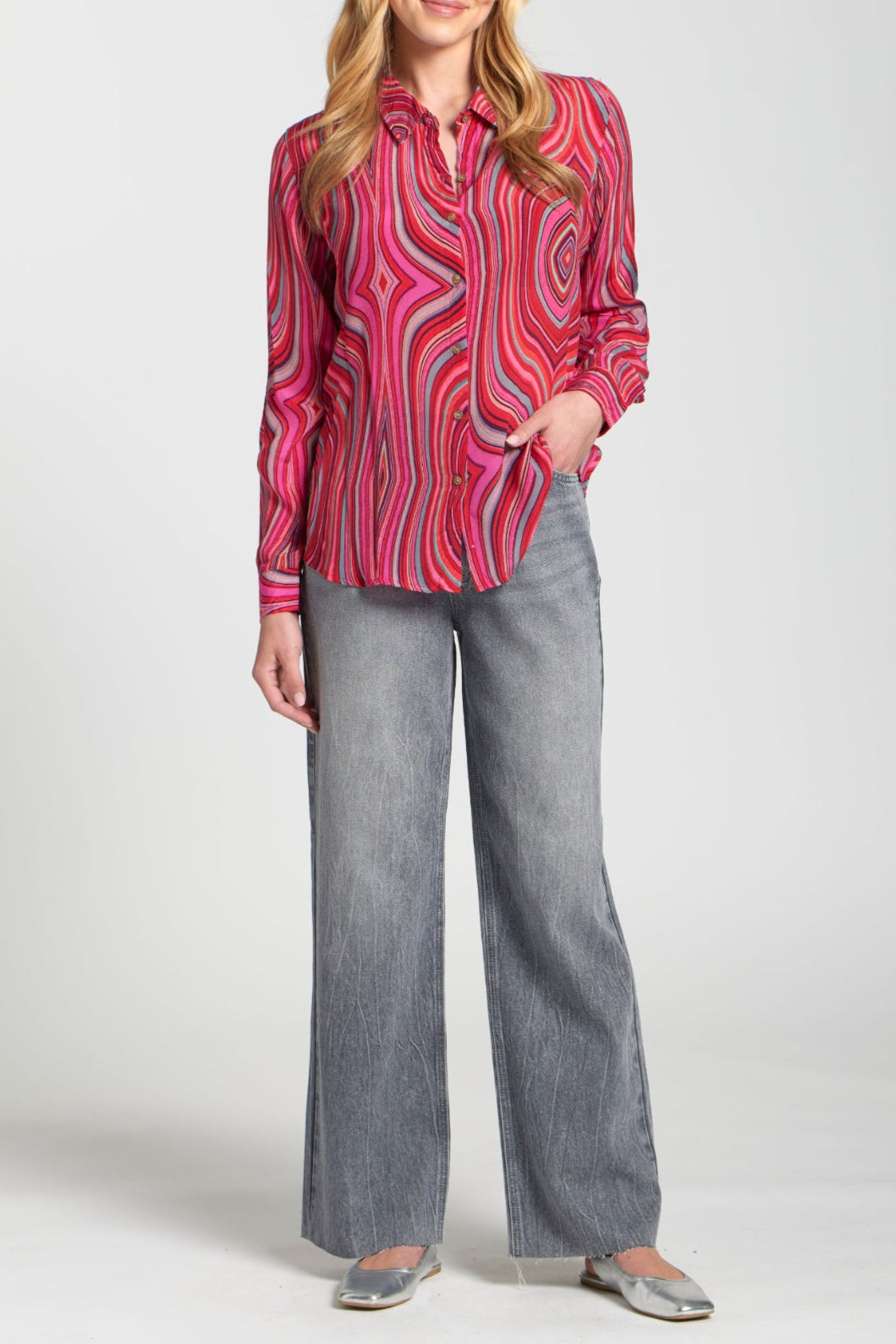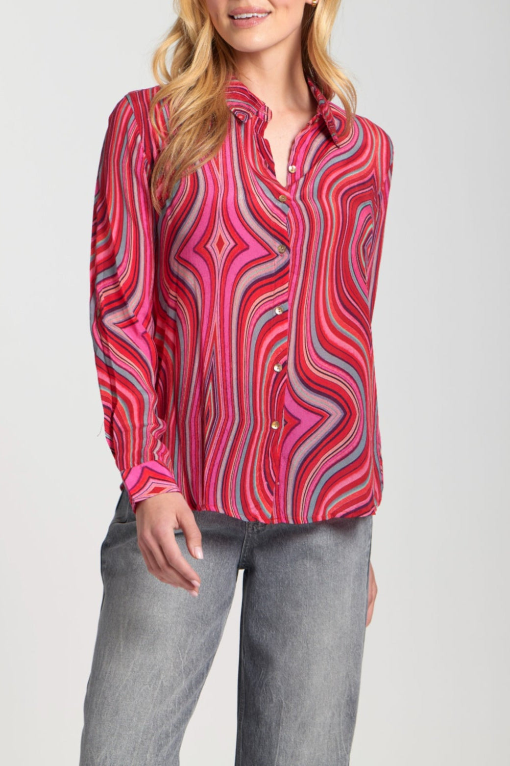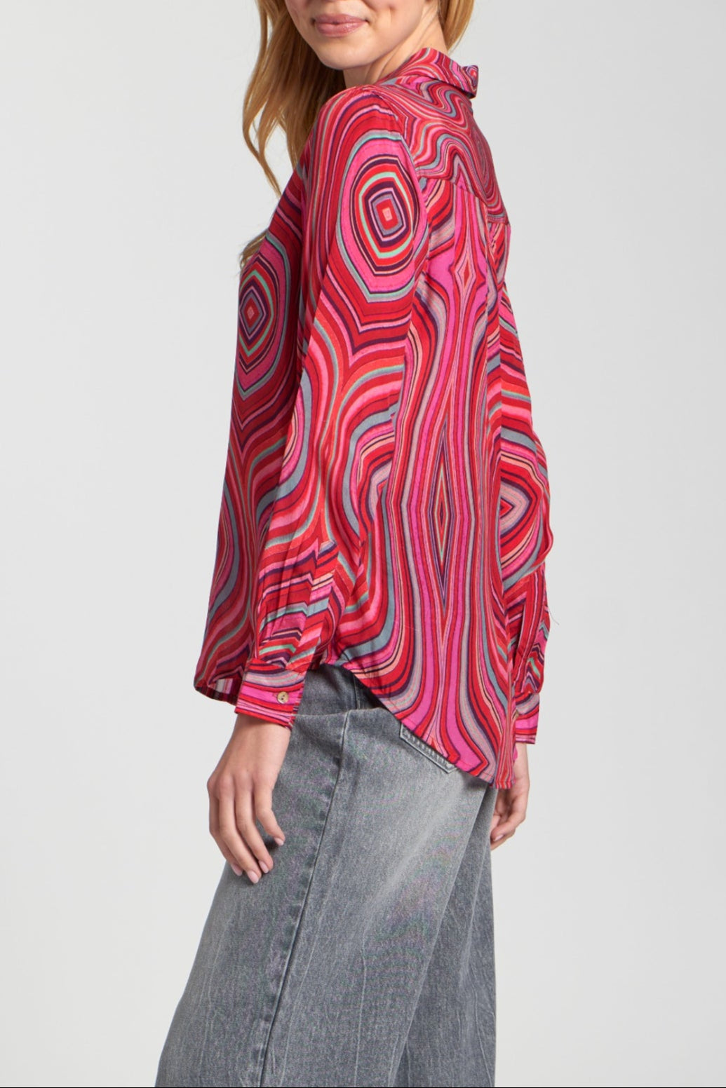A long sleeve button-up is a style essential, and this easy piece has captured our attention thanks to the print details and effortless look. We love the beautiful prints flowing on the fabric, rolled up tab sleeves, flattering silhouette and every other detail we need to snap up this easy blouse and wear it on repeat in every season. Slip on this button-up shirt and fall in love with our flattering silhouette, relaxed fit and breathtaking print designs. Nothing beats a basic with a splash of colors.