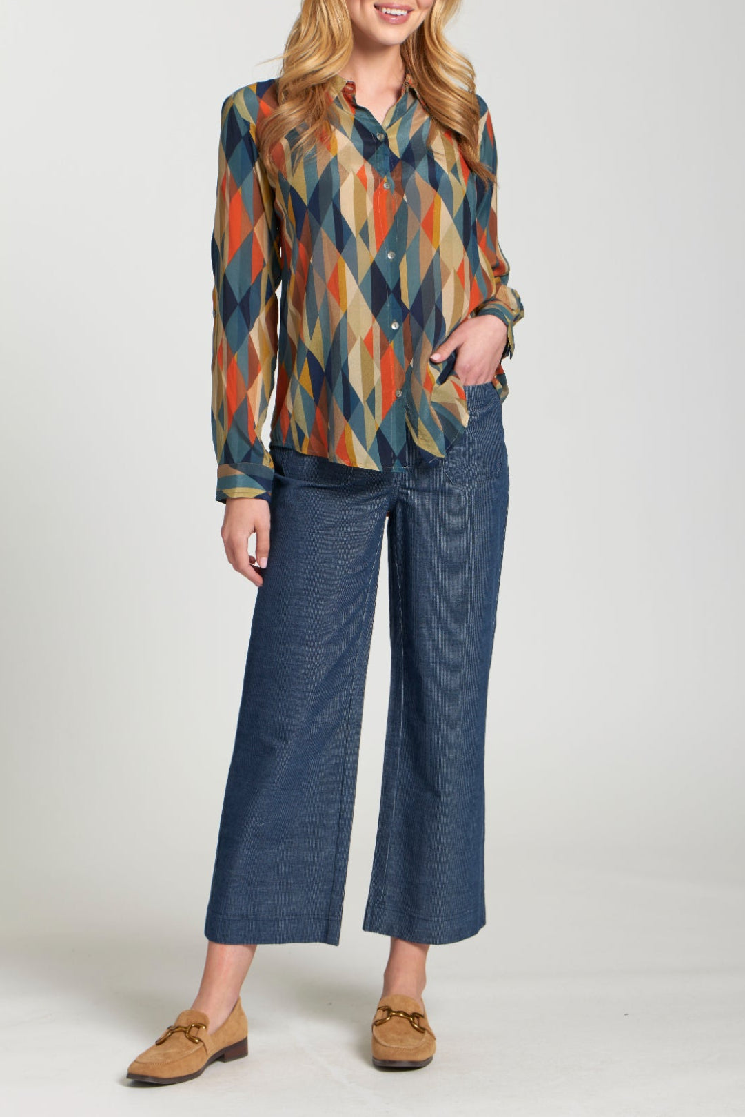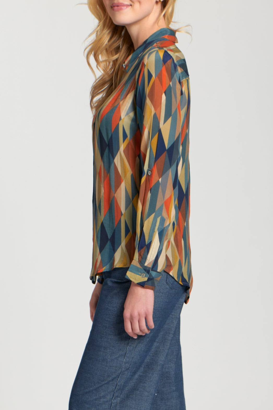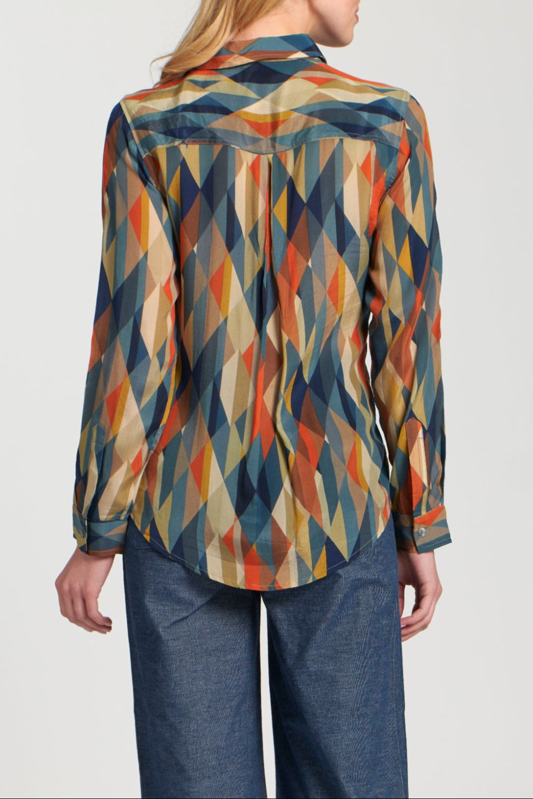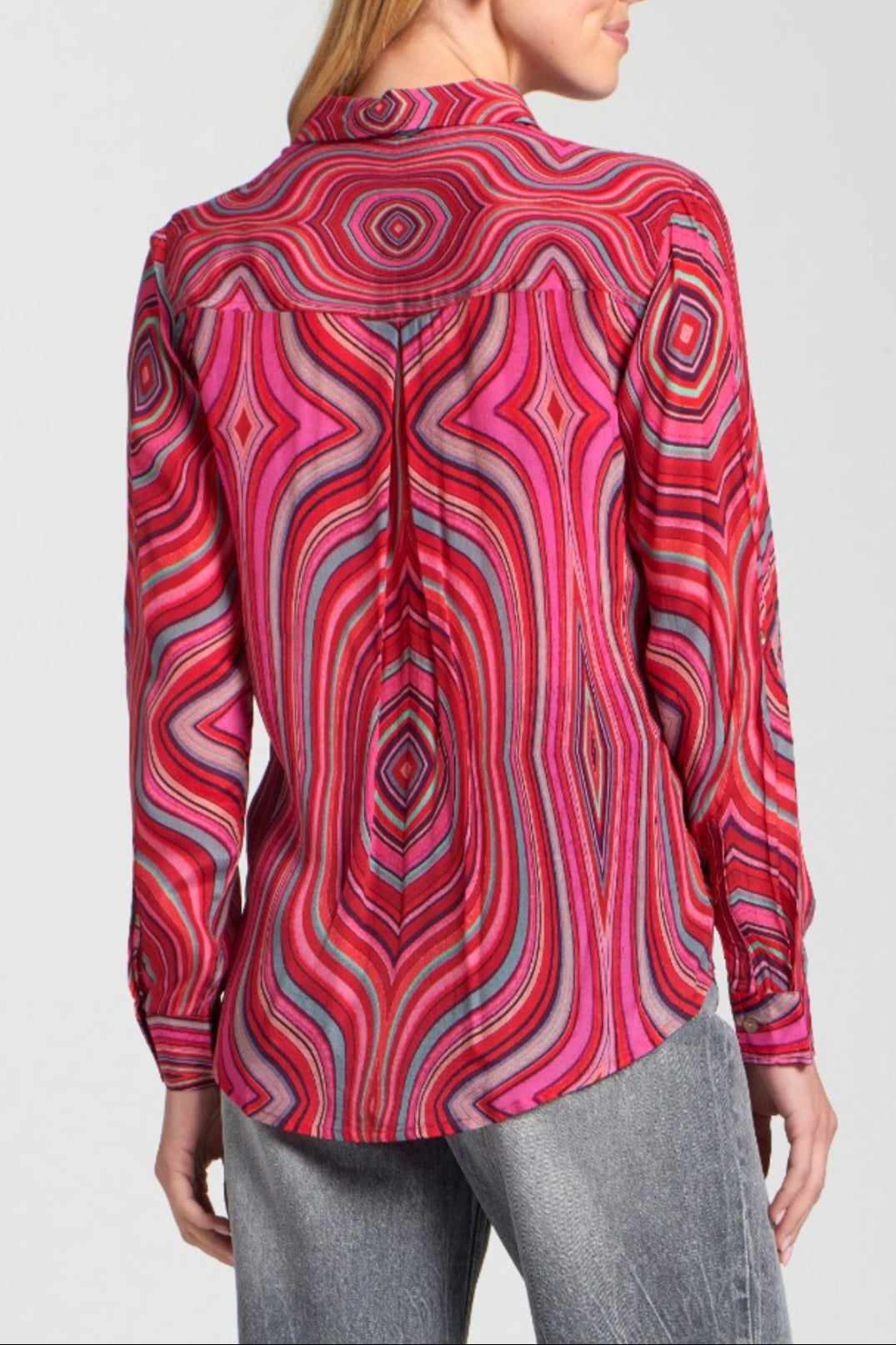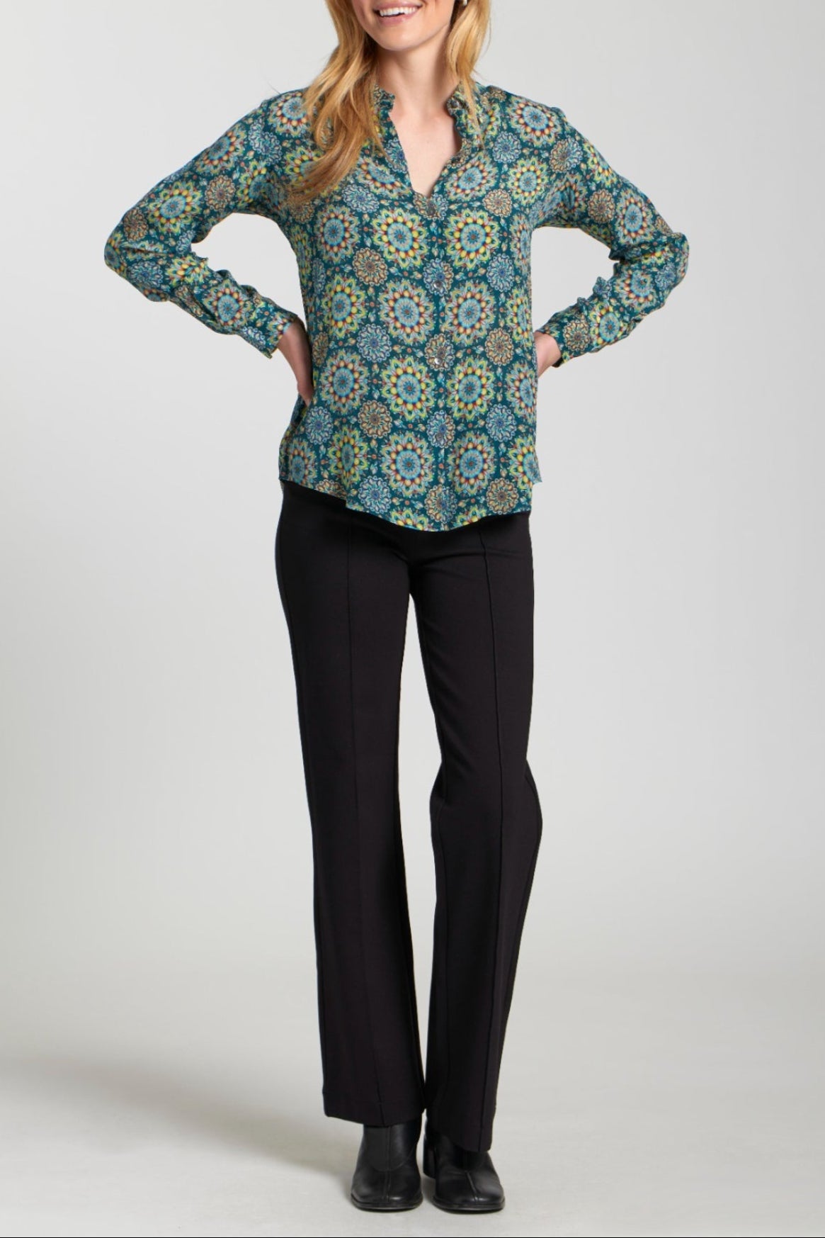 A long sleeve button-up is a style essential, and this easy piece has captured our attention thanks to the print details and effortless look. We love the beautiful prints flowing on the fabric, rolled up tab sleeves, flattering silhouette and every other detail we need to snap up this easy blouse and wear it on repeat in every season. Slip on this button-up shirt and fall in love with our flattering silhouette, relaxed fit and breathtaking print designs. Nothing beats a basic with a splash of colors.