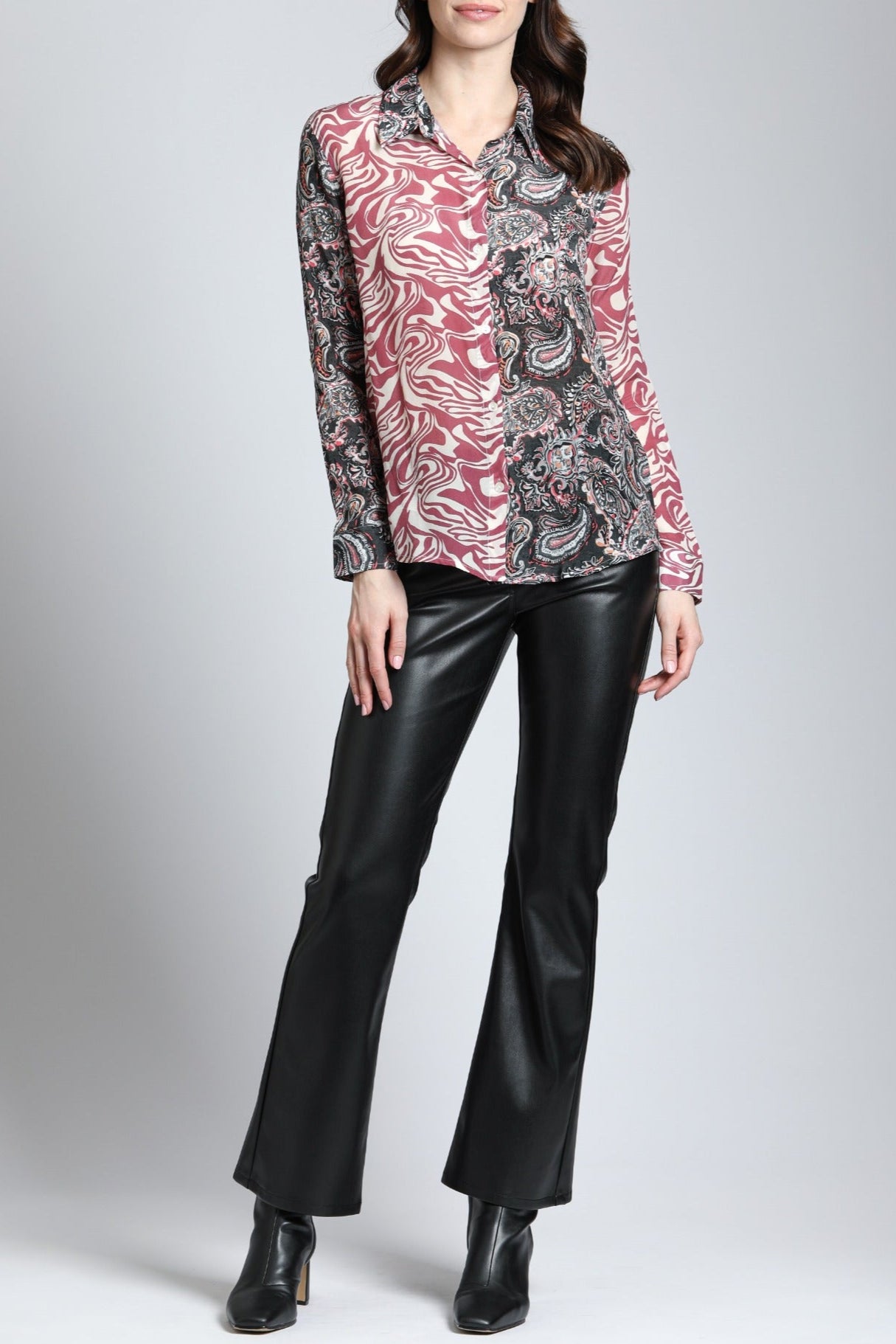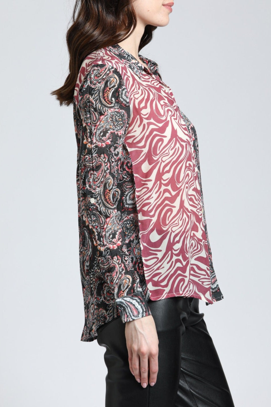 A long sleeve button-up is a style essential, and this easy piece has captured our attention thanks to the print details and effortless look. We love the beautiful prints flowing on the fabric, rolled up tab sleeves, flattering silhouette and every other detail we need to snap up this easy blouse and wear it on repeat in every season. Slip on this button-up shirt and fall in love with our flattering silhouette, relaxed fit and breathtaking print designs. Nothing beats a basic with a splash of colors.