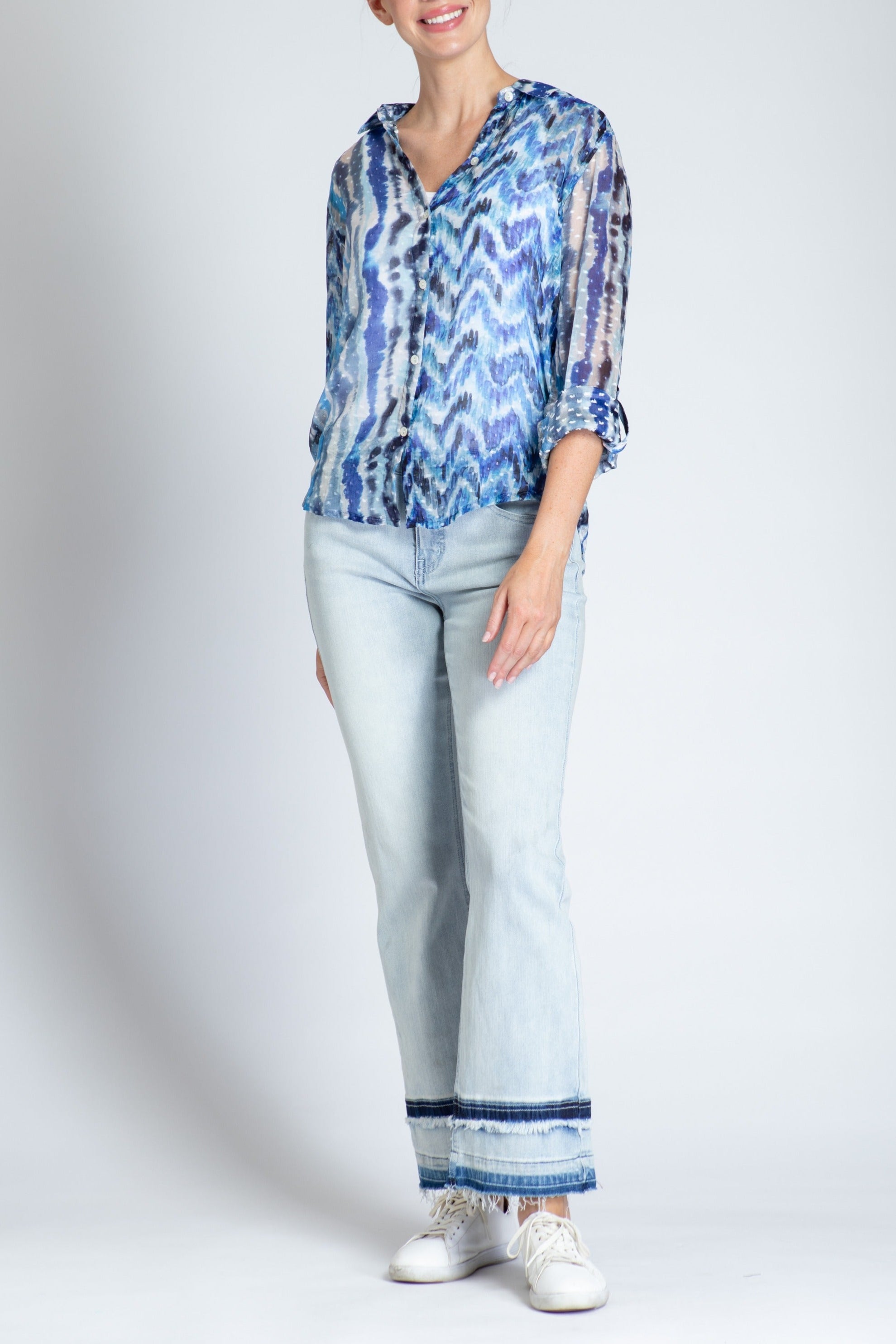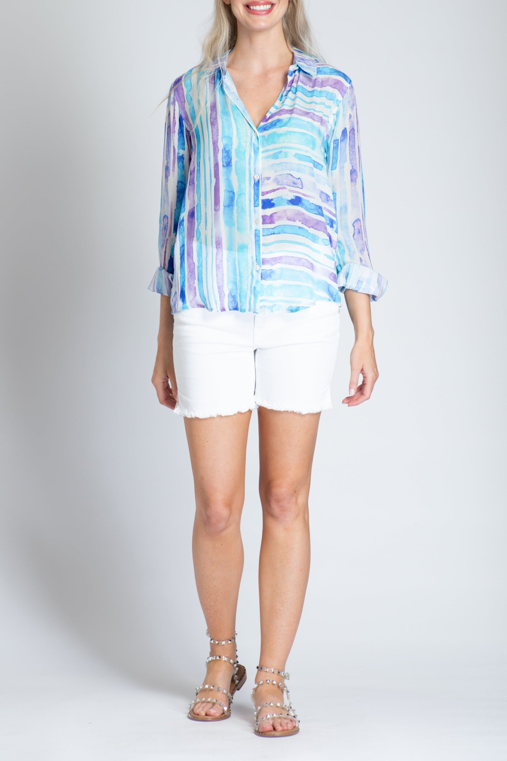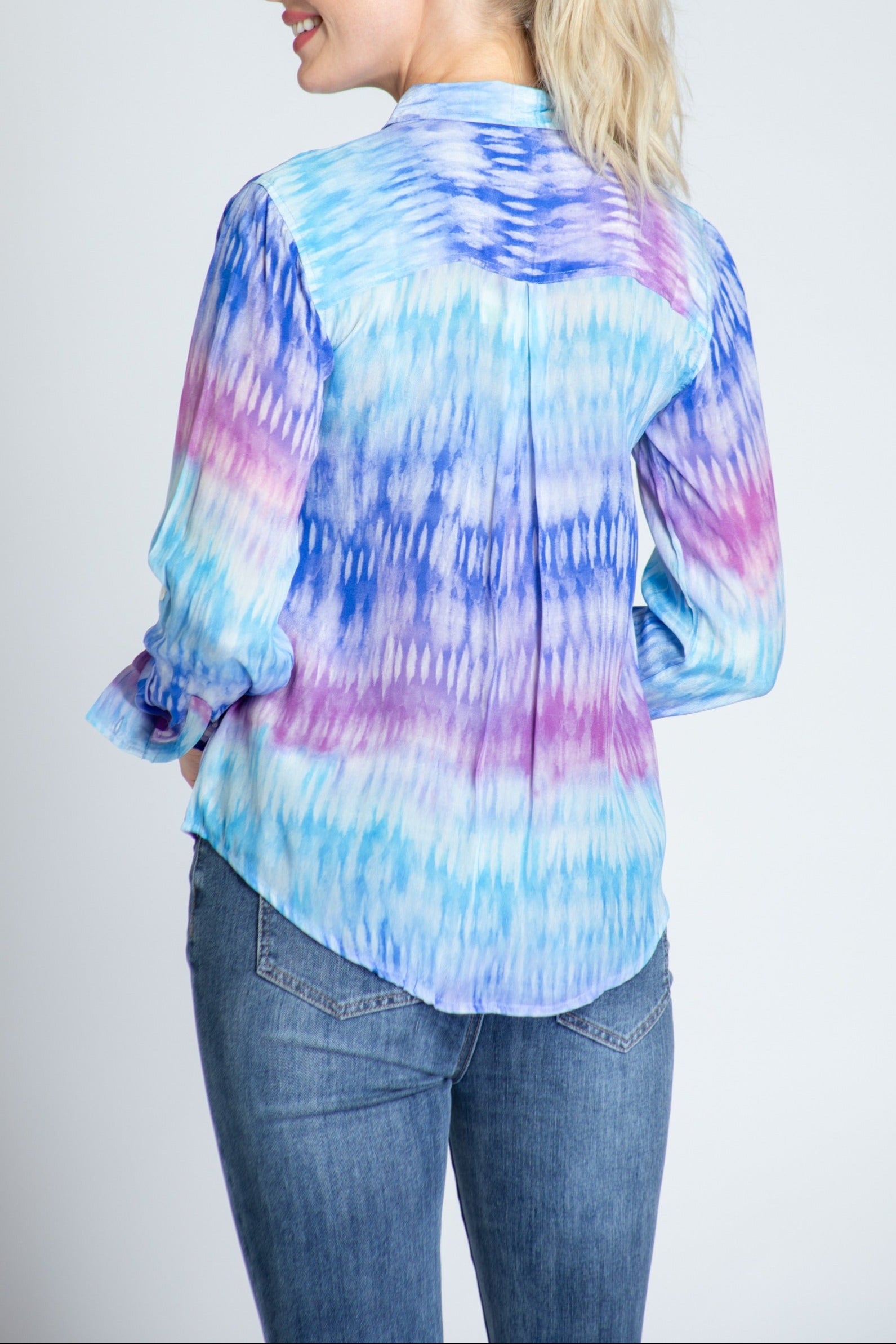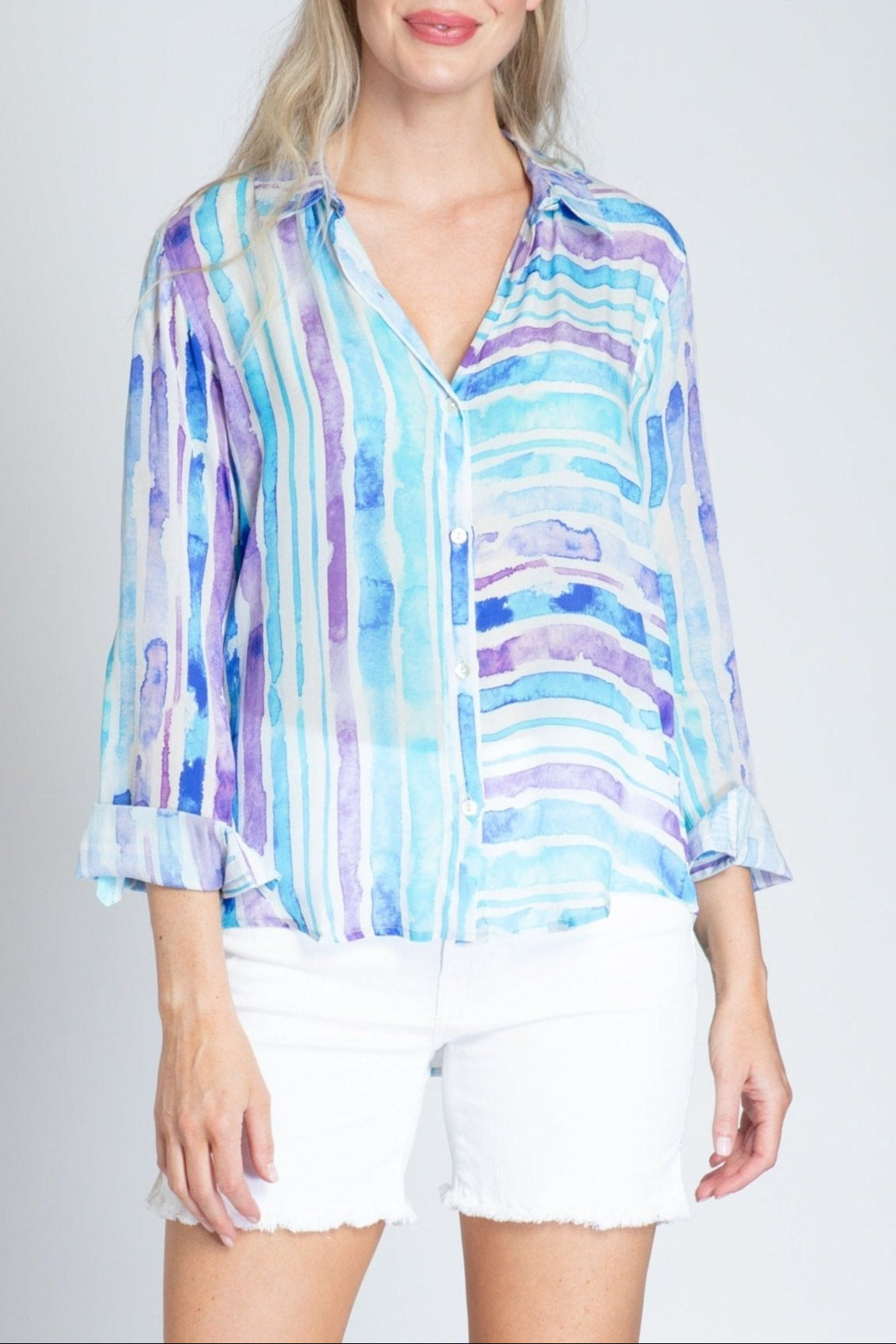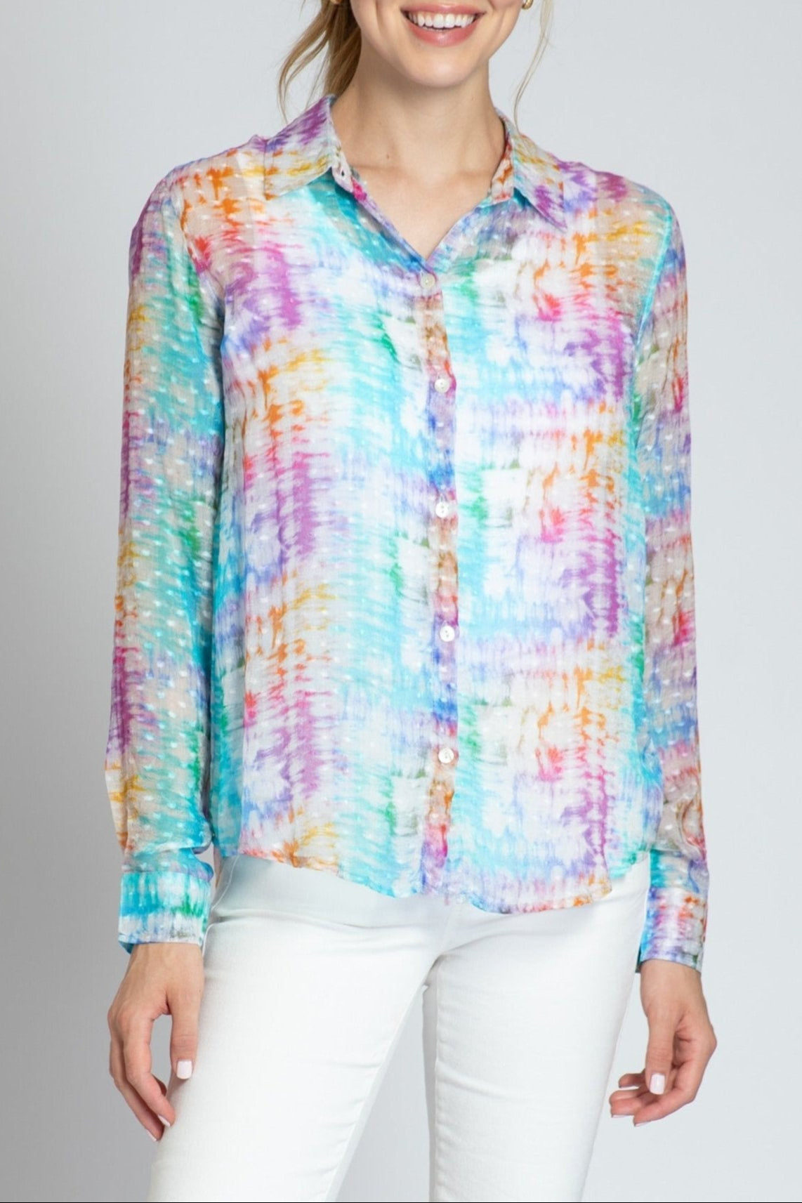 A long sleeve button-up is a style essential, and this easy piece has captured our attention thanks to the print details and effortless look. We love the beautiful prints flowing on the fabric, rolled up tab sleeves, flattering silhouette and every other detail we need to snap up this easy blouse and wear it on repeat in every season. Slip on this button-up shirt and fall in love with our flattering silhouette, relaxed fit and breathtaking print designs. Nothing beats a basic with a splash of colors.