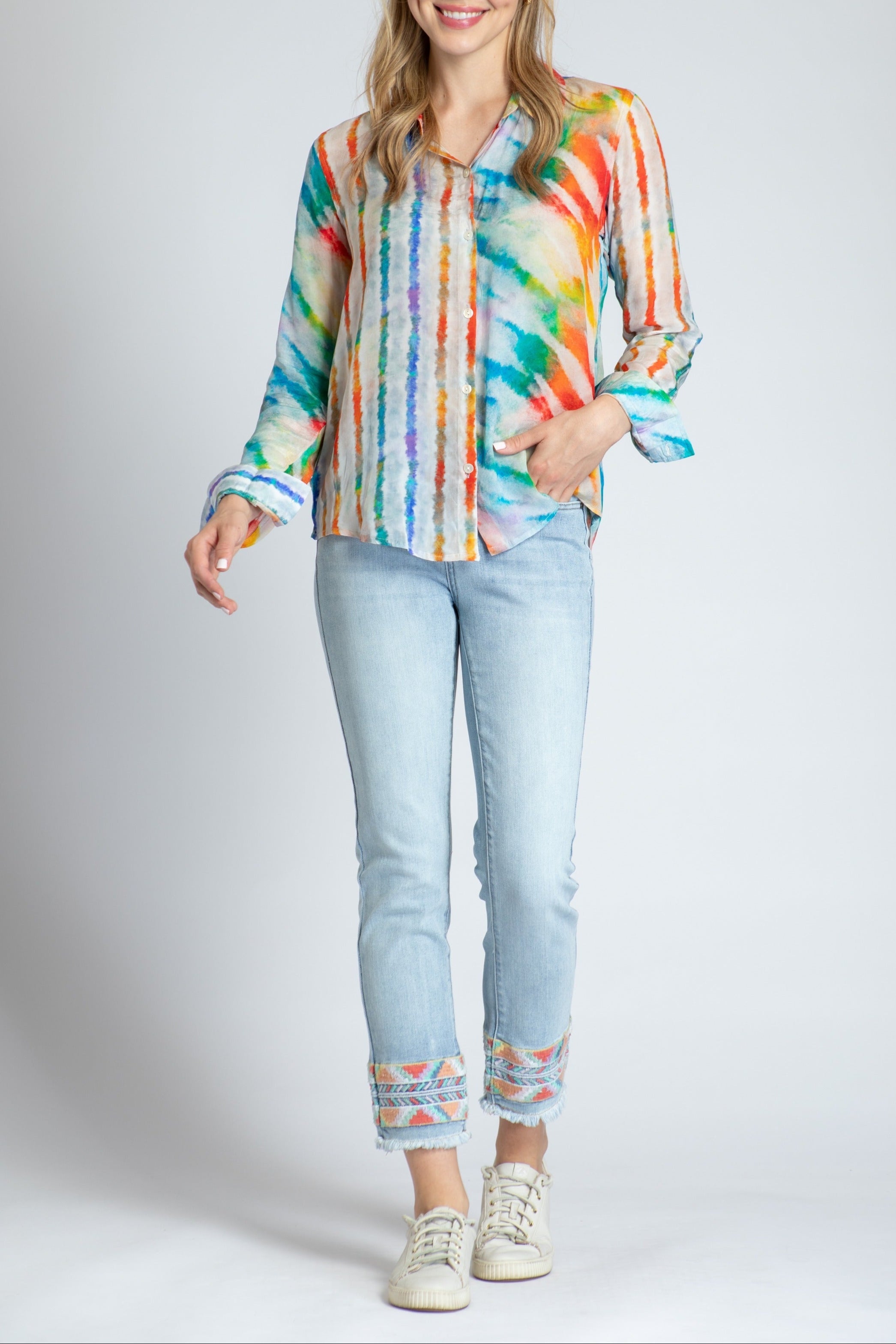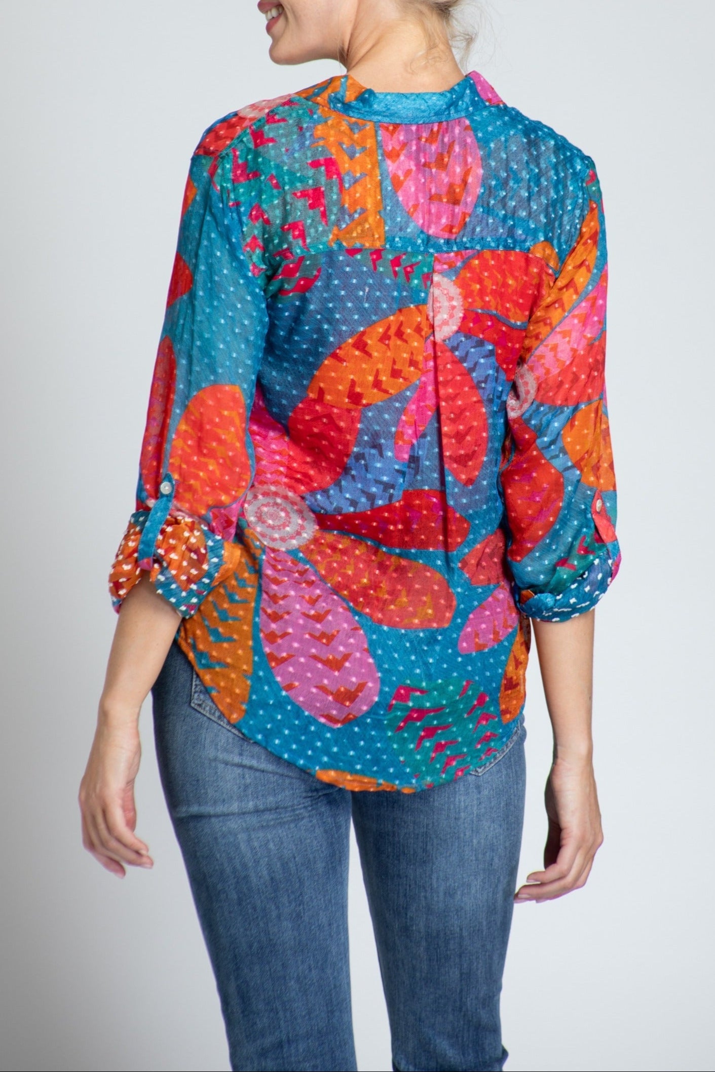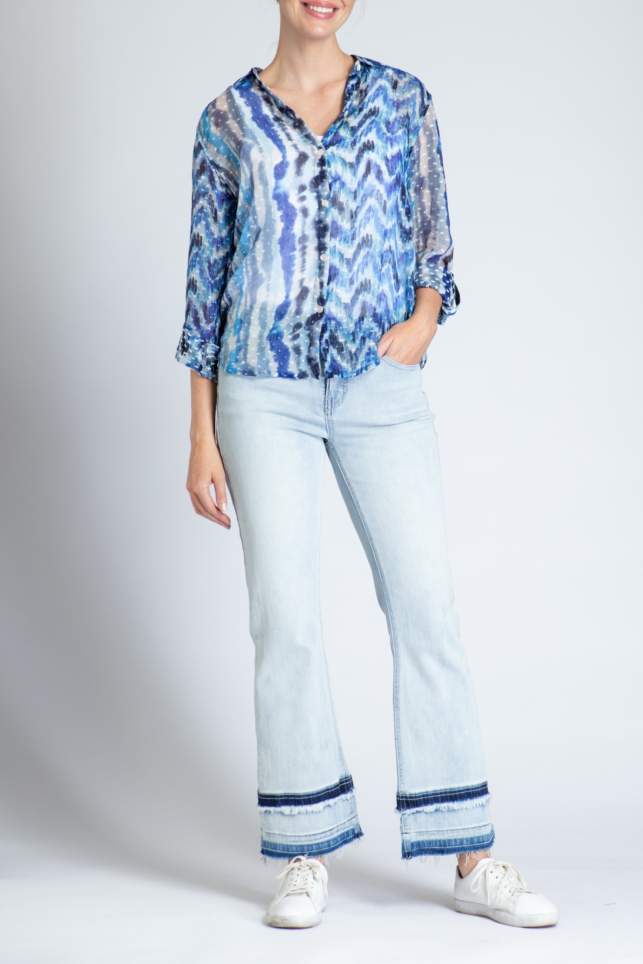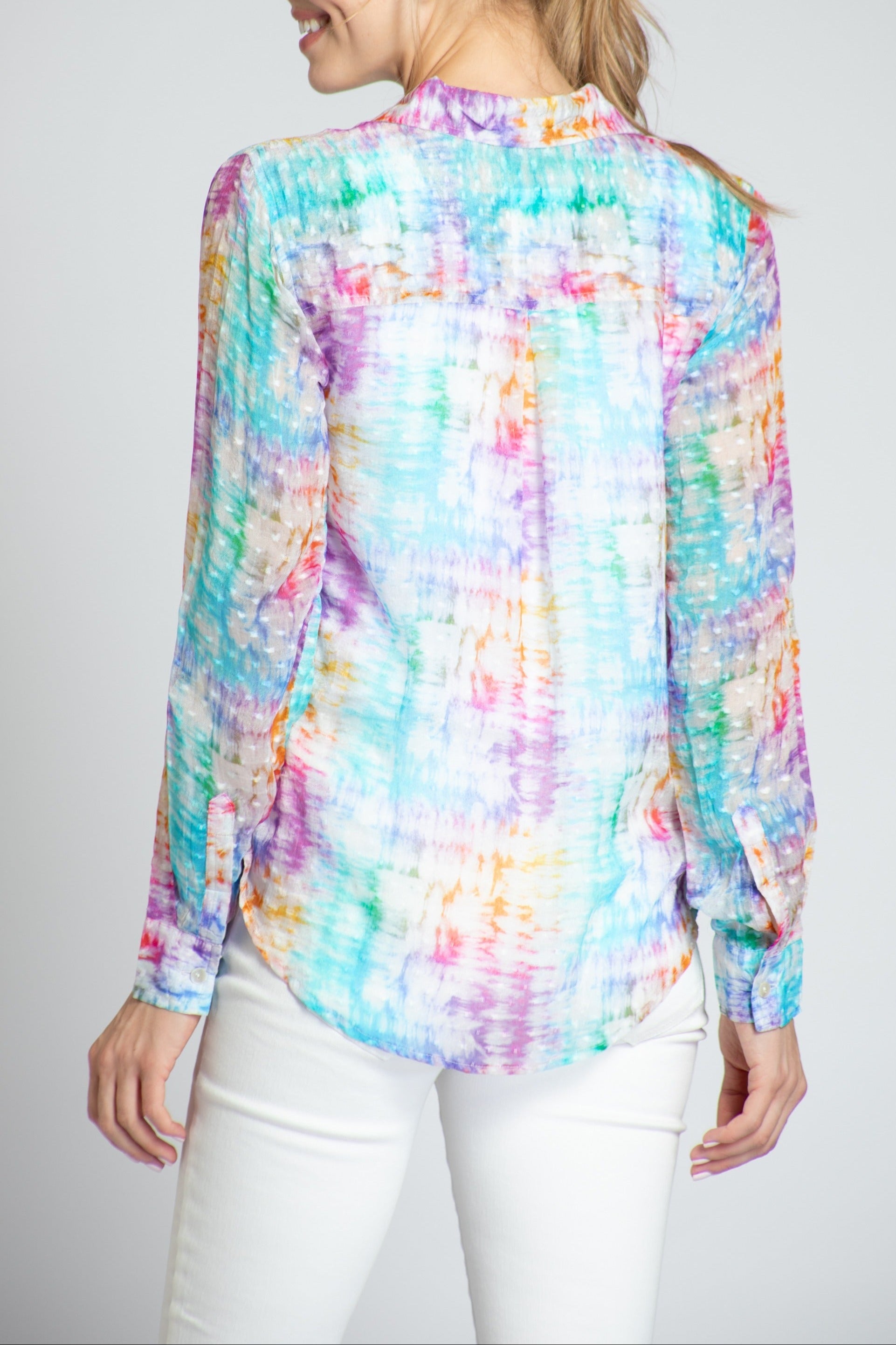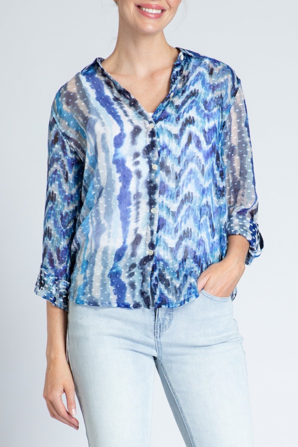 A long sleeve button-up is a style essential, and this easy piece has captured our attention thanks to the print details and effortless look. We love the beautiful prints flowing on the fabric, rolled up tab sleeves, flattering silhouette and every other detail we need to snap up this easy blouse and wear it on repeat in every season. Slip on this button-up shirt and fall in love with our flattering silhouette, relaxed fit and breathtaking print designs. Nothing beats a basic with a splash of colors.