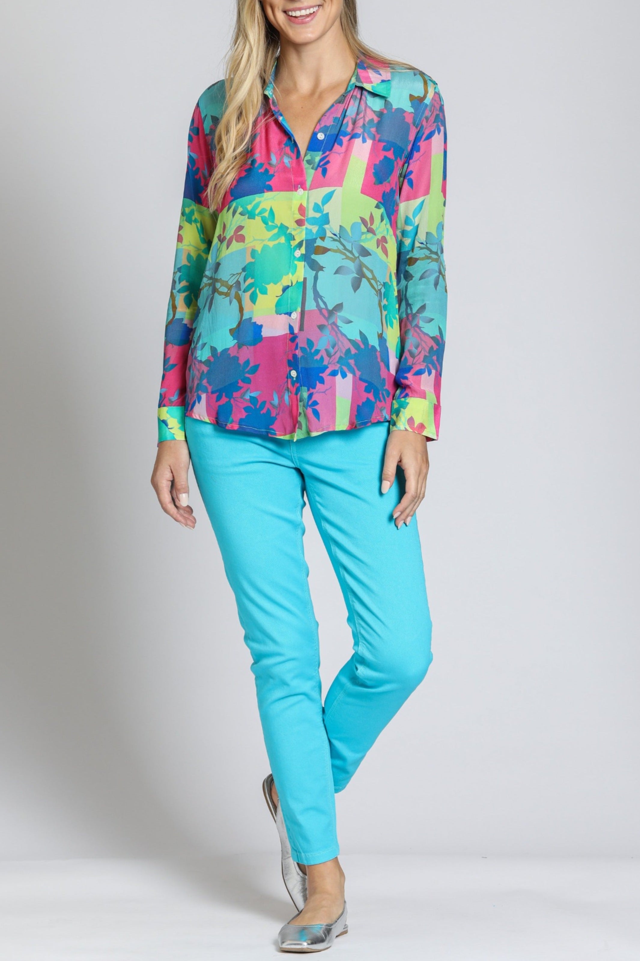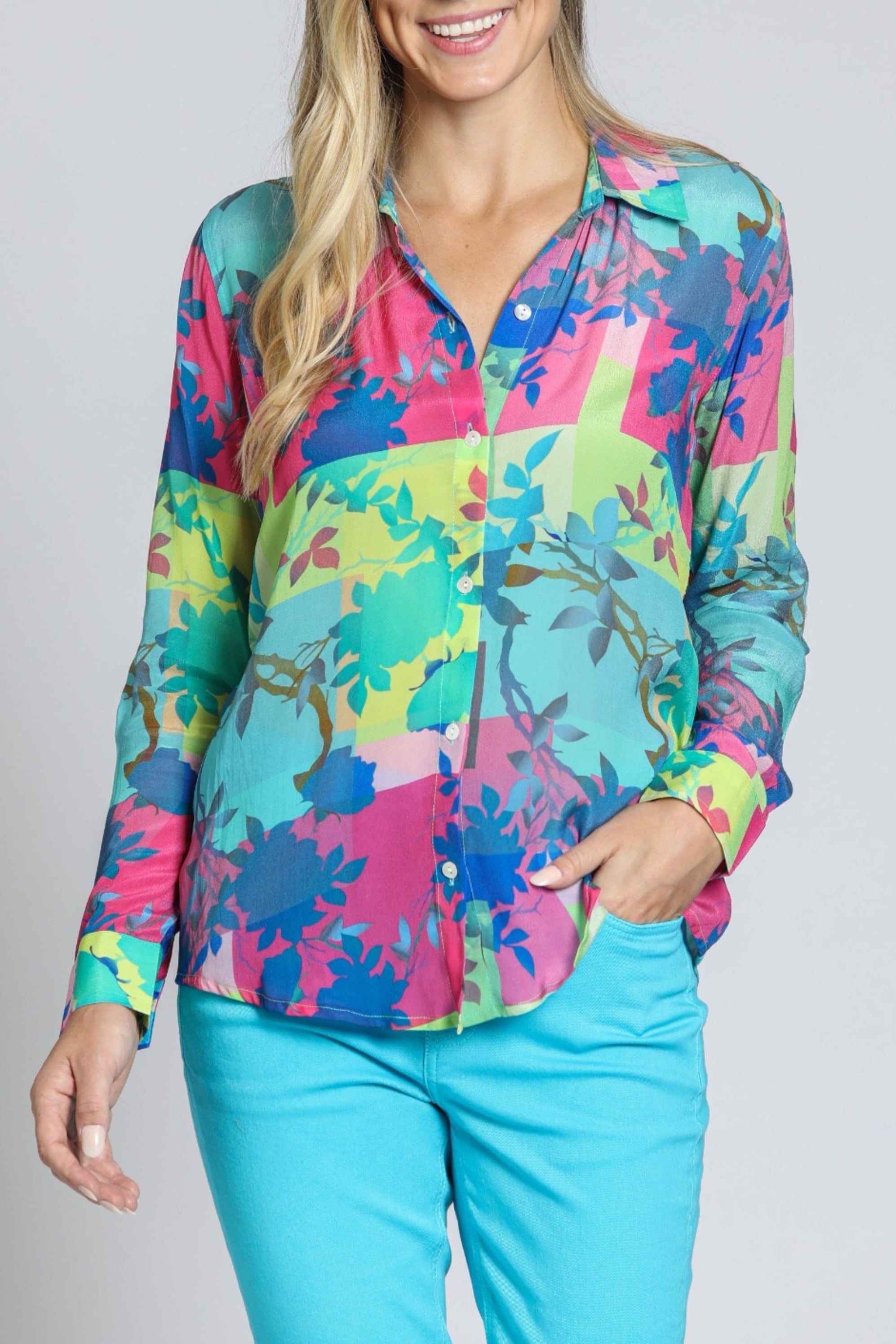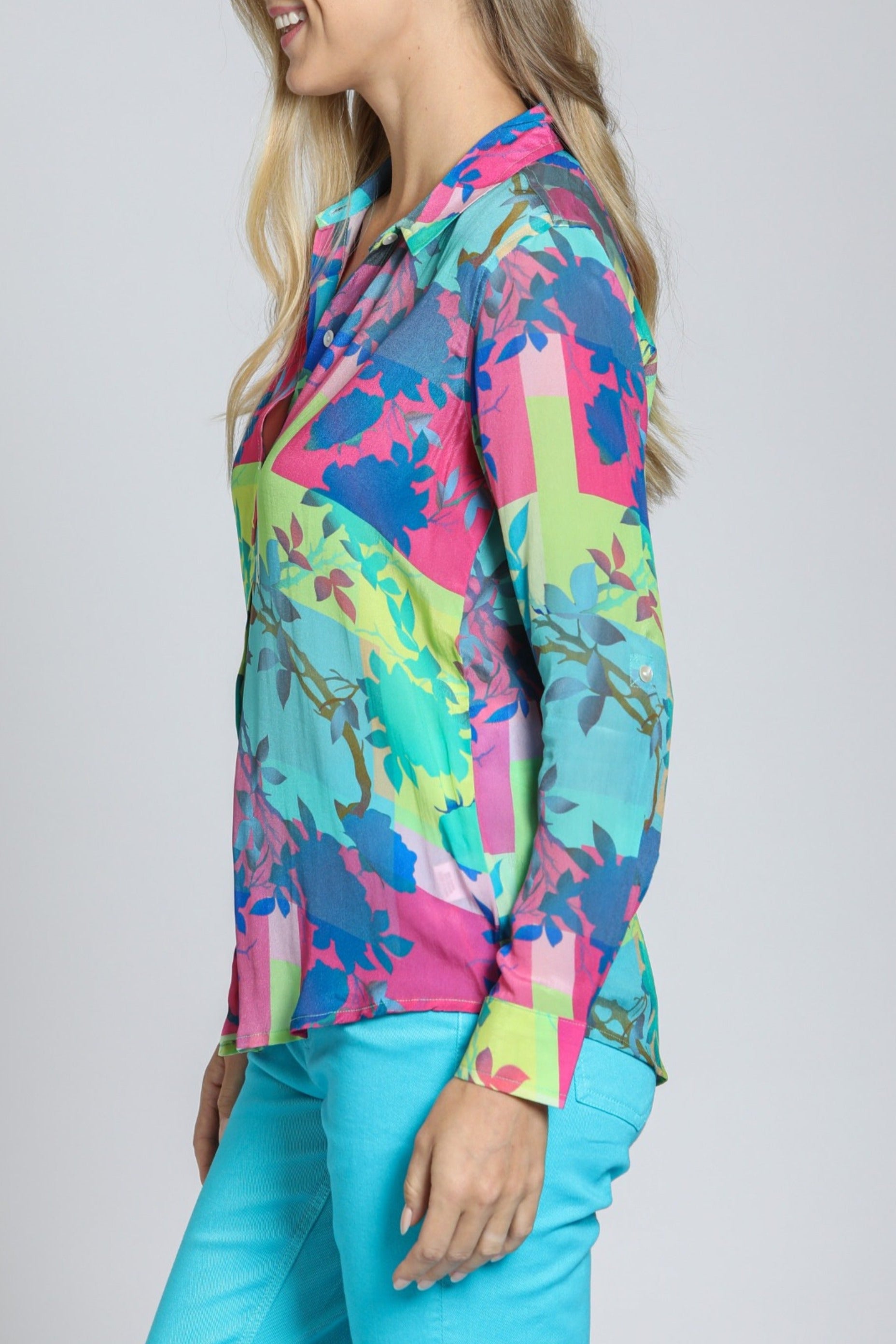A long sleeve button-up is a style essential, and this easy piece has captured our attention thanks to the print details and effortless look. We love the beautiful prints flowing on the fabric, rolled up tab sleeves, flattering silhouette and every other detail we need to snap up this easy blouse and wear it on repeat in every season. Slip on this button-up shirt and fall in love with our flattering silhouette, relaxed fit and breathtaking print designs. Nothing beats a basic with a splash of colors.
