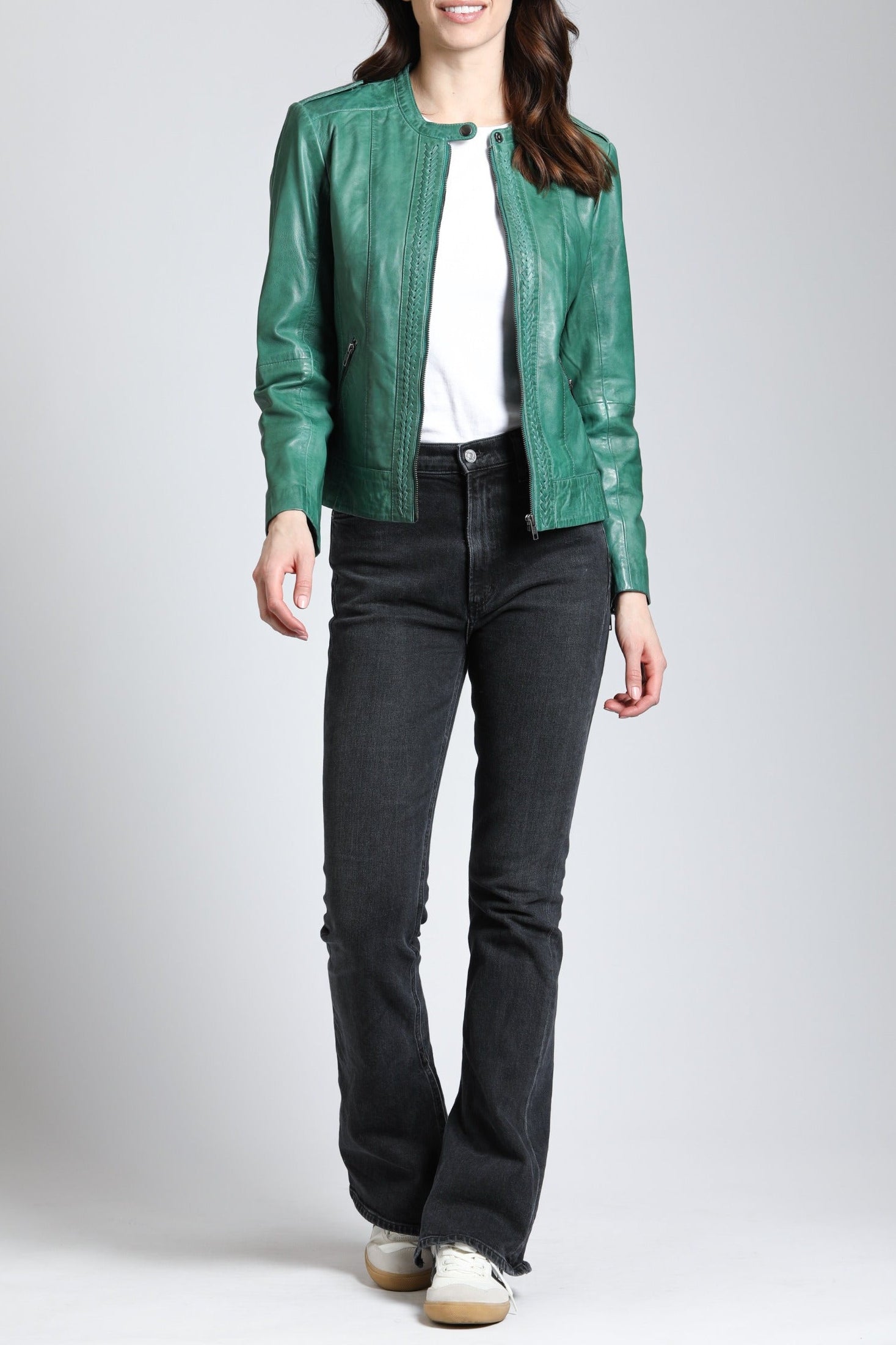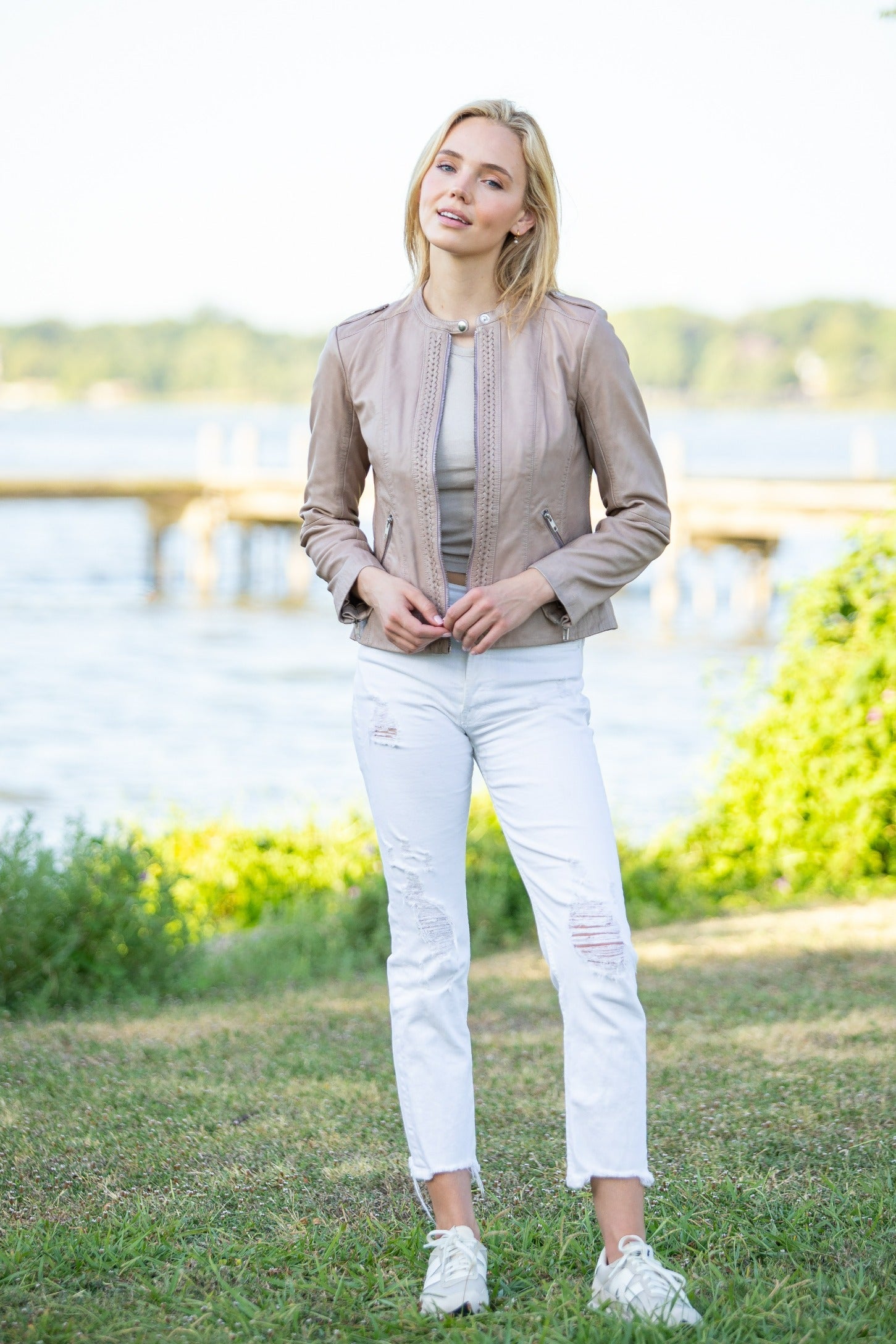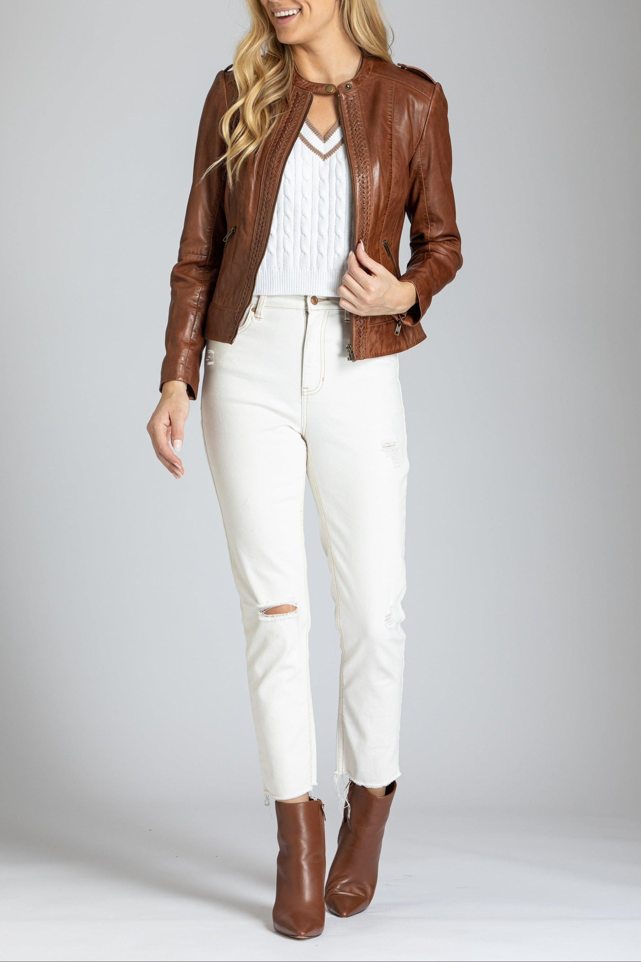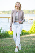 Refined craftsmanship meets timeless style in the Classic Zip Front Jacket with Braided Detail. Designed with a sleek zip-front closure, this jacket is elevated by intricate braided detailing for a touch of elegance. Its tailored fit and versatile design make it a perfect layering piece, effortlessly complementing both casual and dressy outfits.