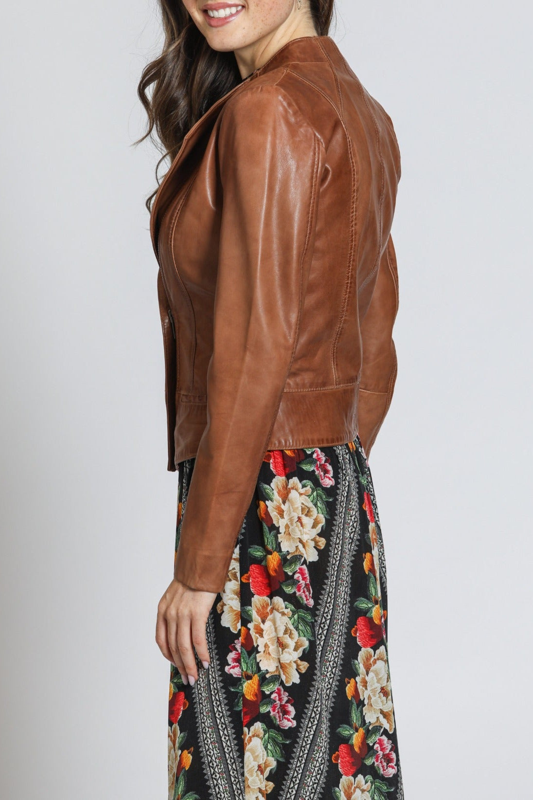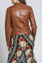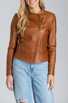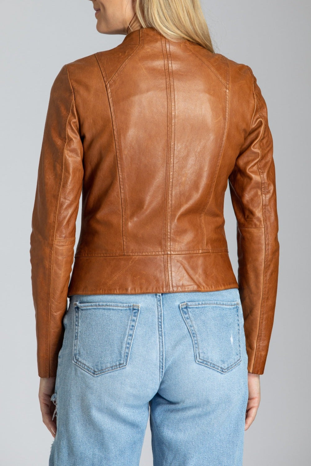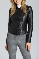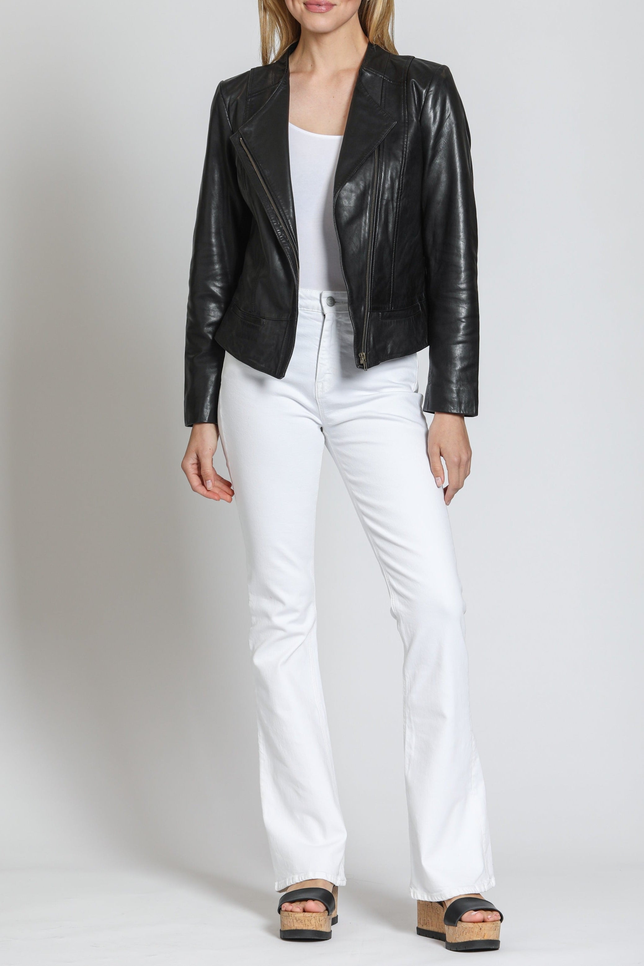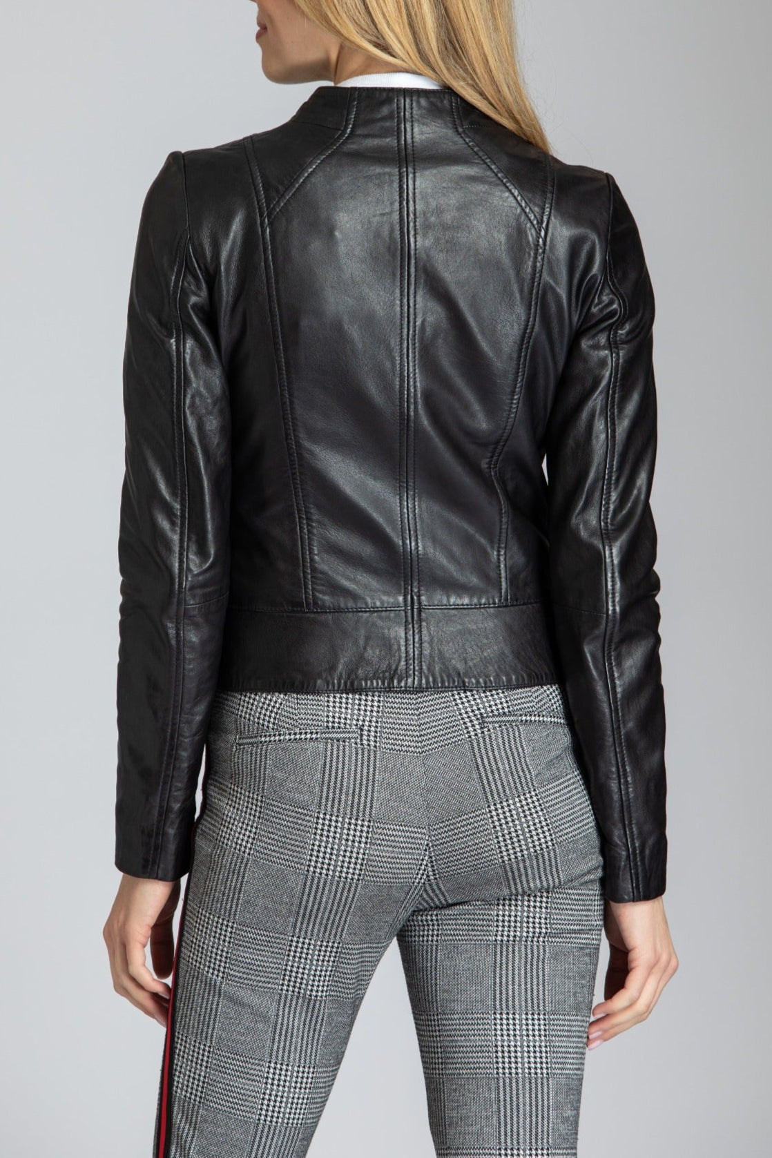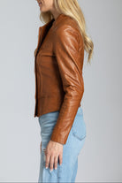 Collarless Lamb Leather Zip Up Jacket