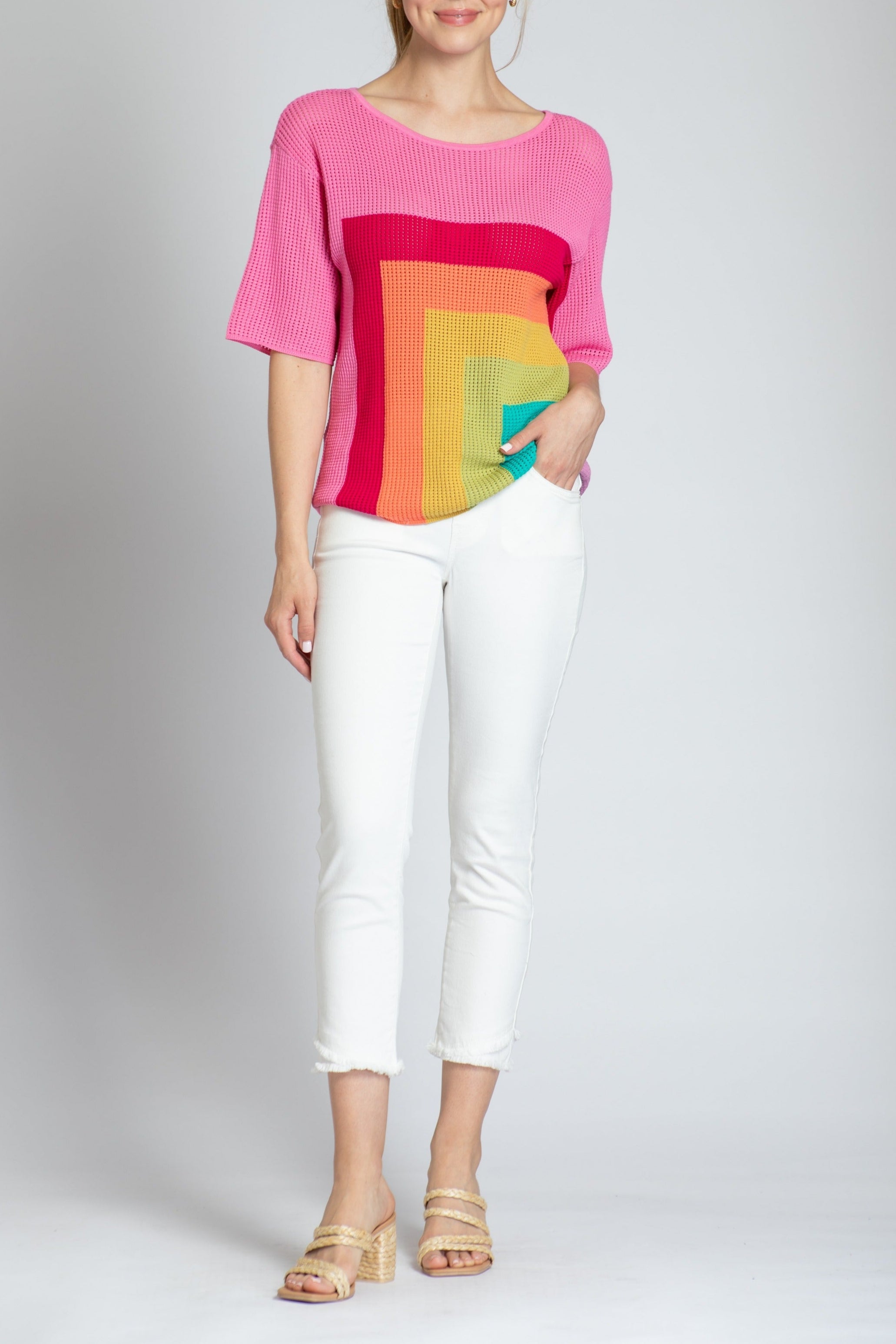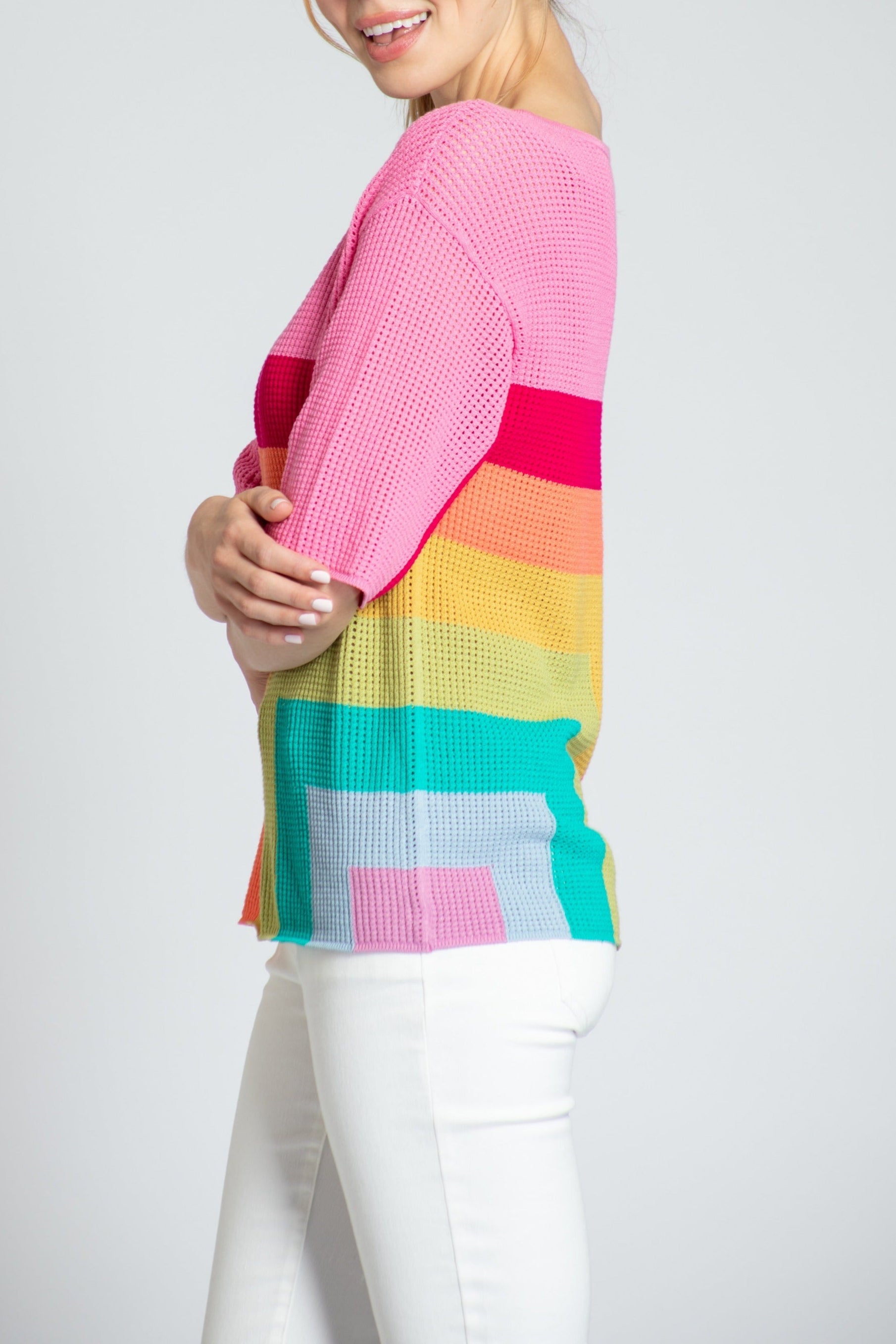 Color Block Open Knit Sweater