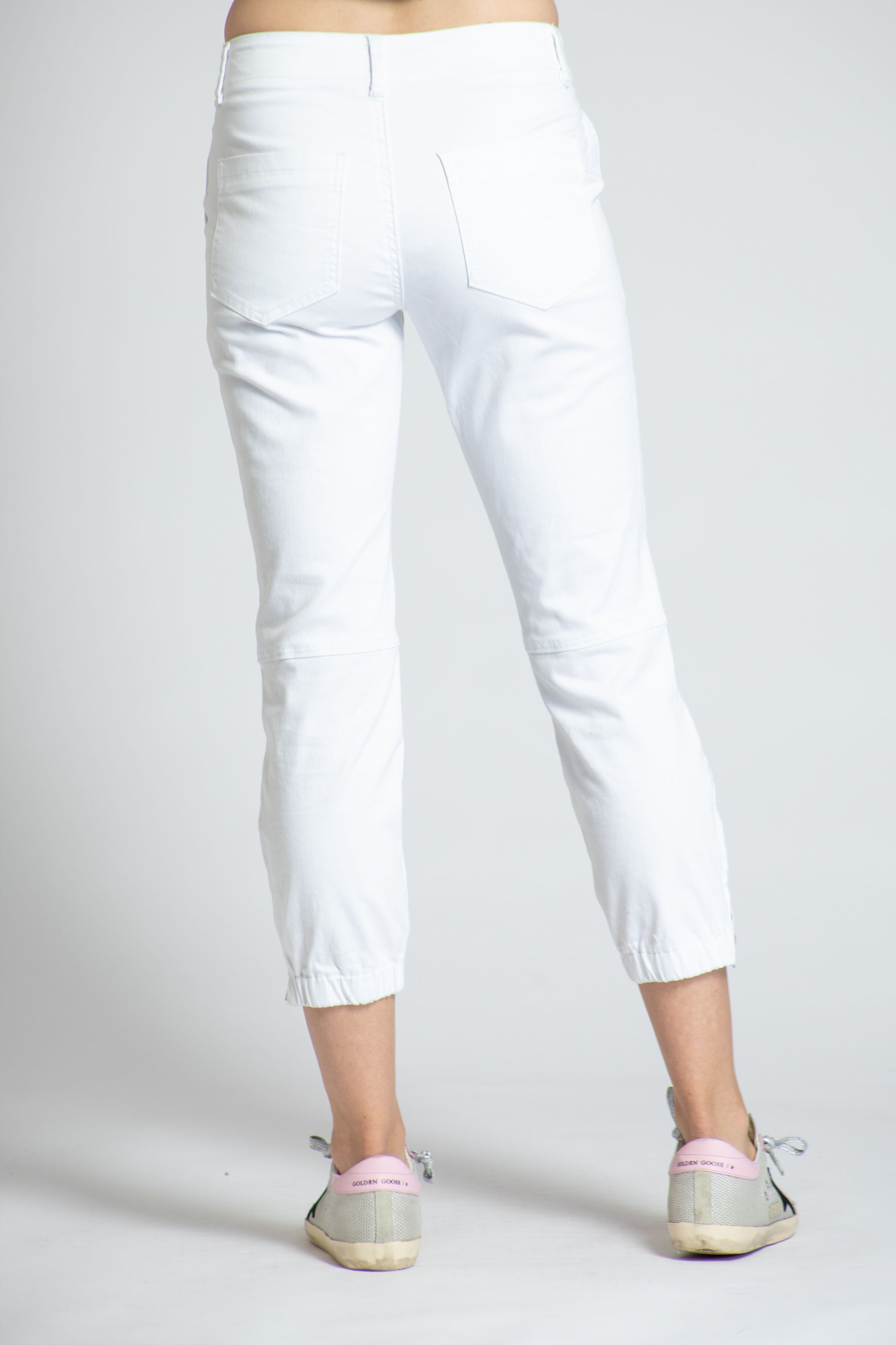Get the perfect blend of style and comfort with the Crop Military Jogger. It has a flattering high waist and a sleek fit, these joggers are ideal for a cool girl look. The cotton-spandex blend makes it flexible and comfortable for all-day wear. Pair them with a fitted tee or pullover for a casual look perfect for weekends or laid-back workdays. Don't wait, add these stylish joggers to your wardrobe today