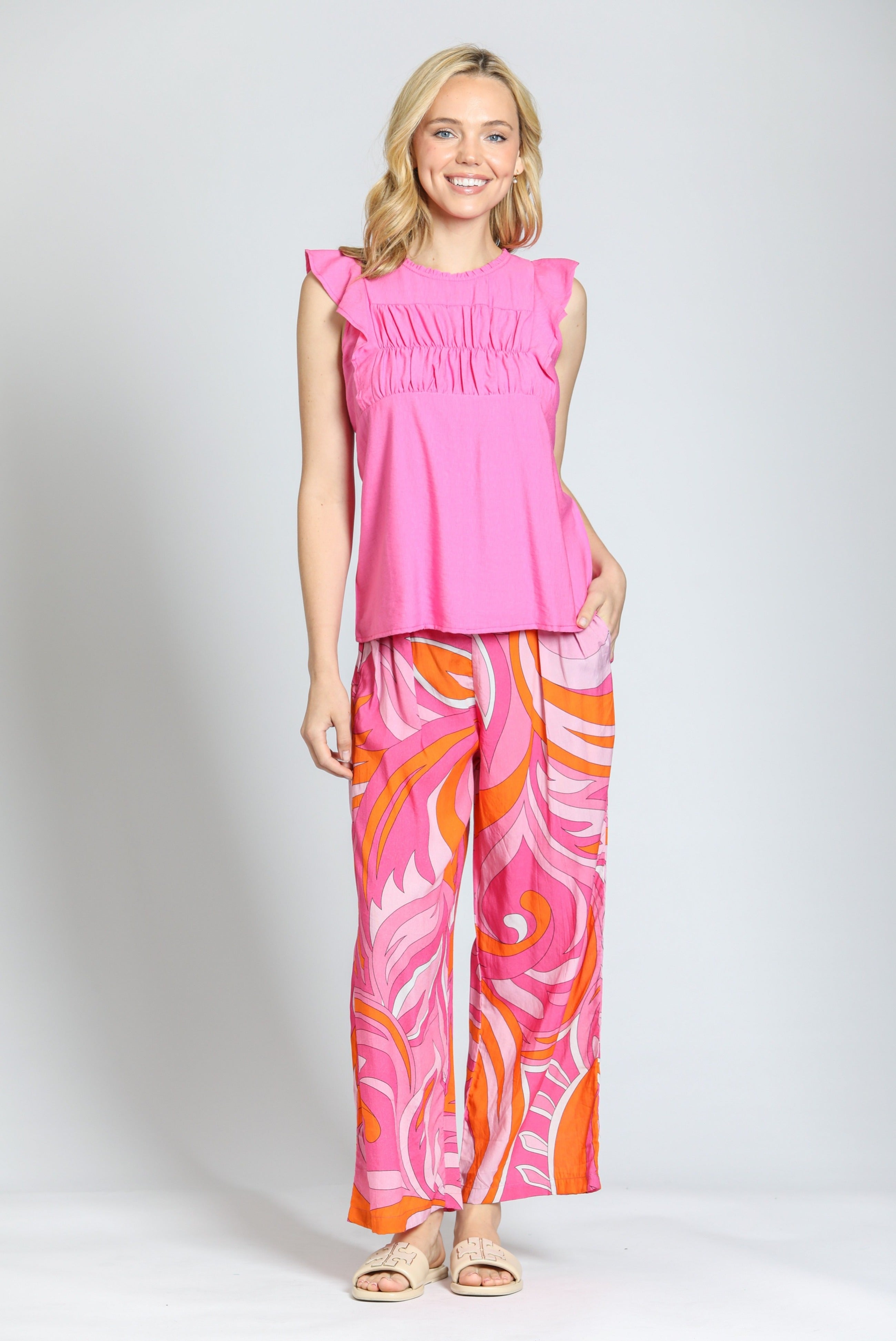 Step into a paradise of effortless style with our Printed Crop Wide Leg Pant. The wide-leg silhouette offers contemporary flair, while the cropped length adds a touch of playful modernity. High-waisted for a flattering fit, these pants are more than clothing - they're a statement piece, a celebration of bold prints and effortless elegance, ready to take you from daydreams to tropical nights.