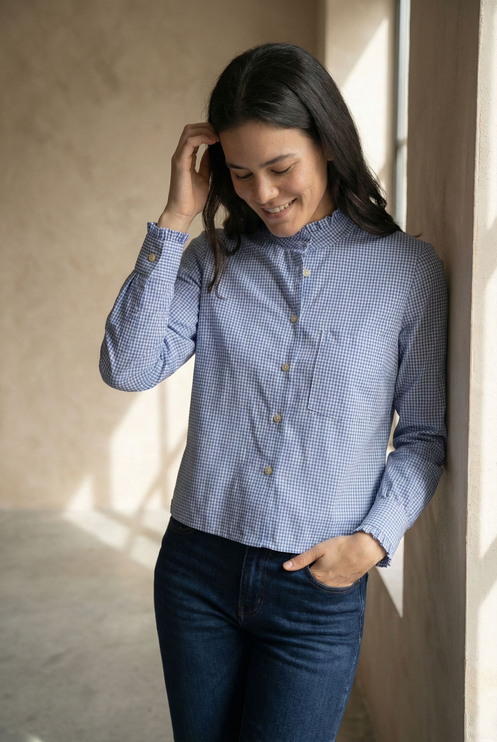 The Cropped Check Shirt with Ruffle Detail blends classic charm with modern style, featuring a timeless check pattern and delicate ruffle accents. Its cropped silhouette pairs effortlessly with high-waisted jeans or skirts for a trendy look. Made from soft, breathable fabric, it offers all-day comfort with a chic flair.