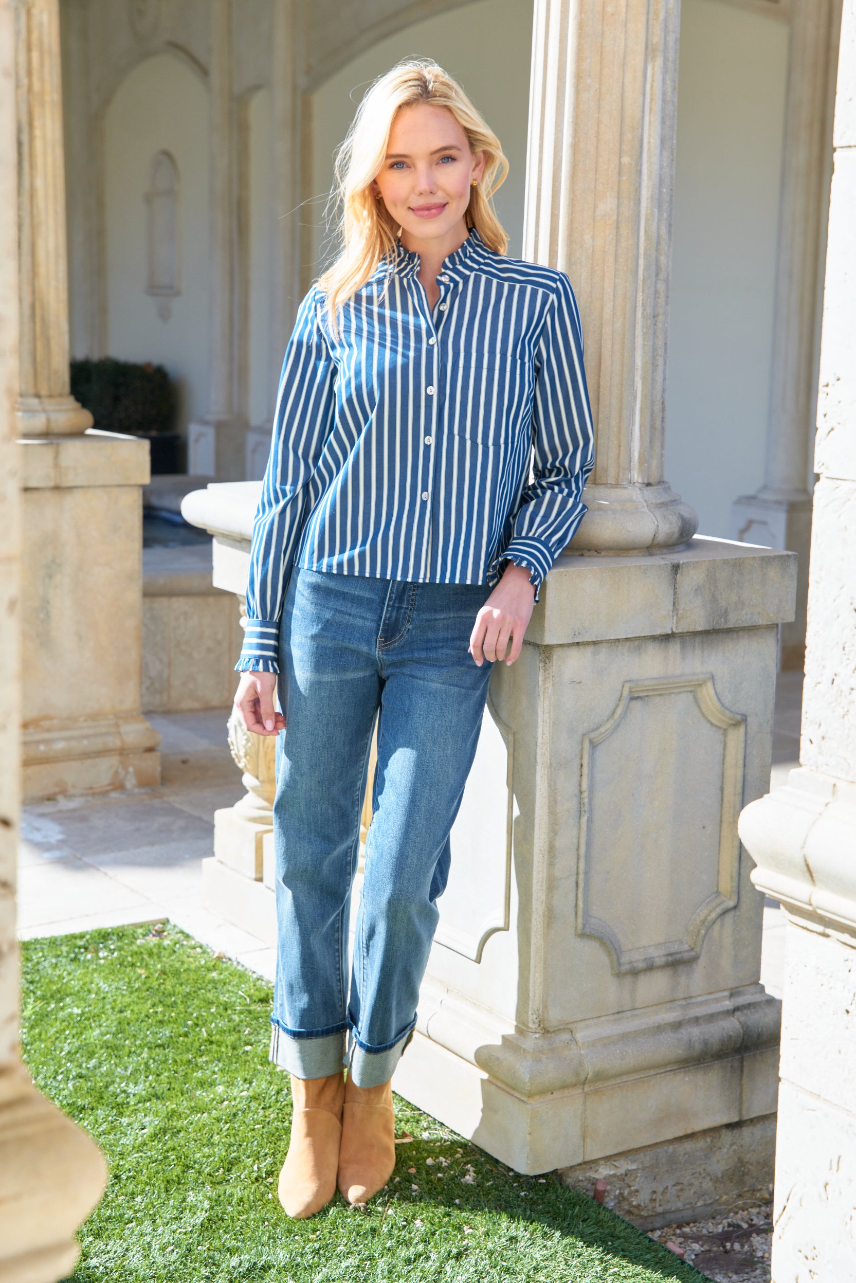 The Cropped Check Shirt with Ruffle Detail is a playful and stylish piece that adds a touch of femininity to your wardrobe. Made from soft, breathable fabric, this shirt features a classic check print combined with delicate ruffles along the sleeves and hem for a charming, whimsical look. The cropped length pairs well with high-waisted jeans, skirts, or trousers, creating a balanced, chic outfit. Perfect for casual outings or dressed-up ensembles, this shirt effortlessly blends comfort with stylish flair.