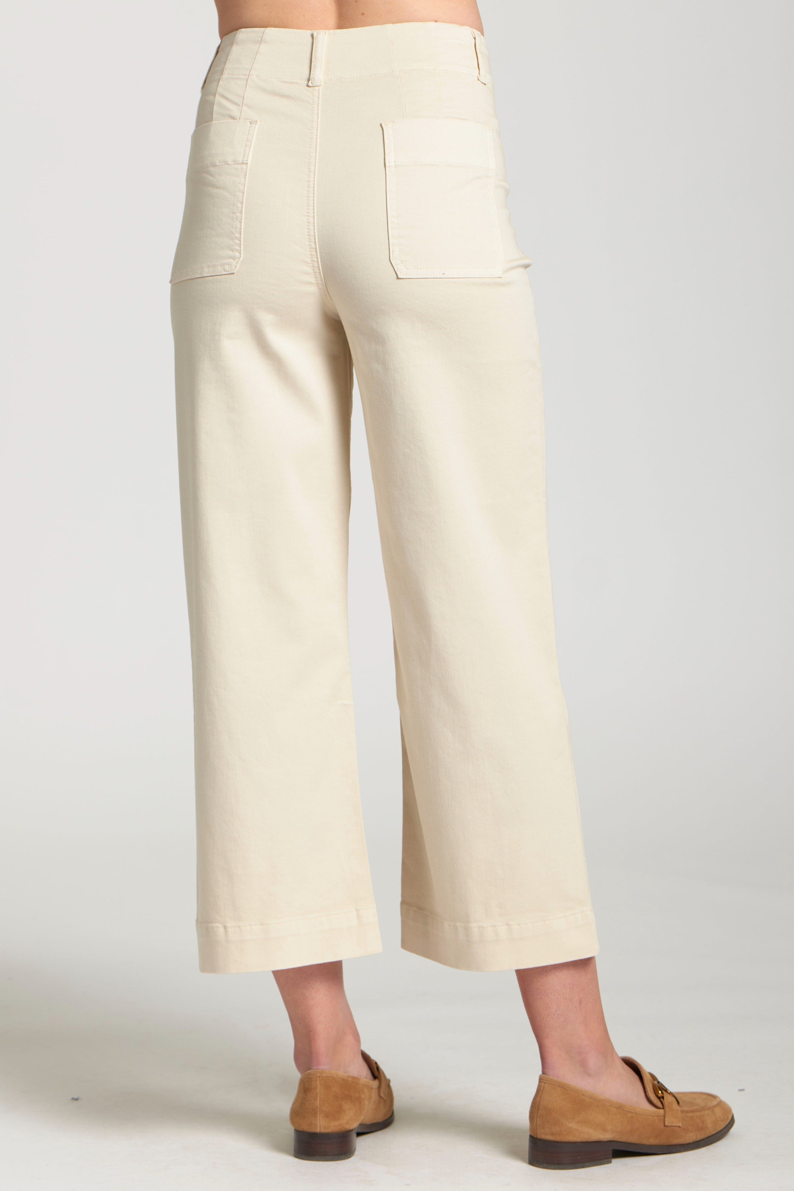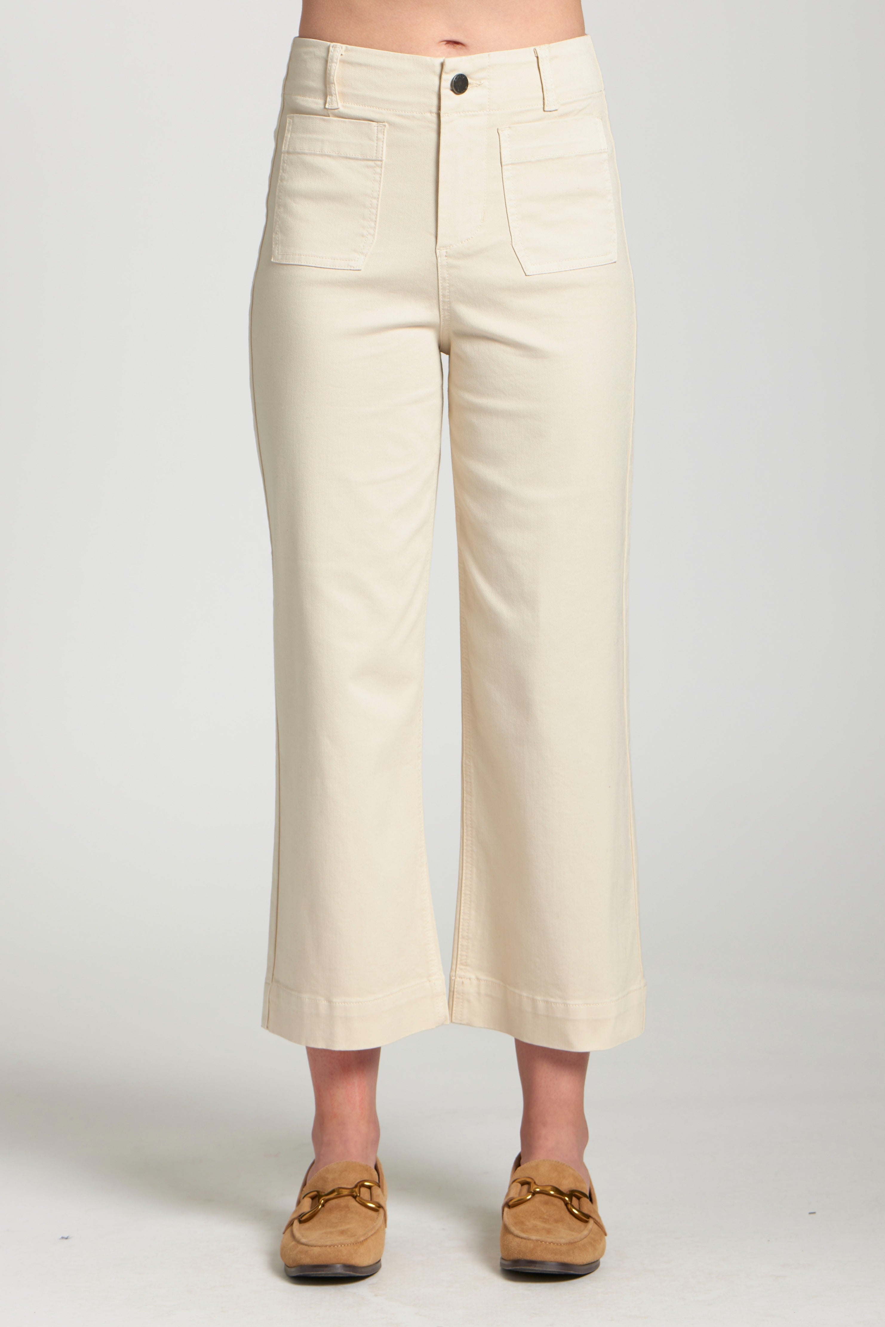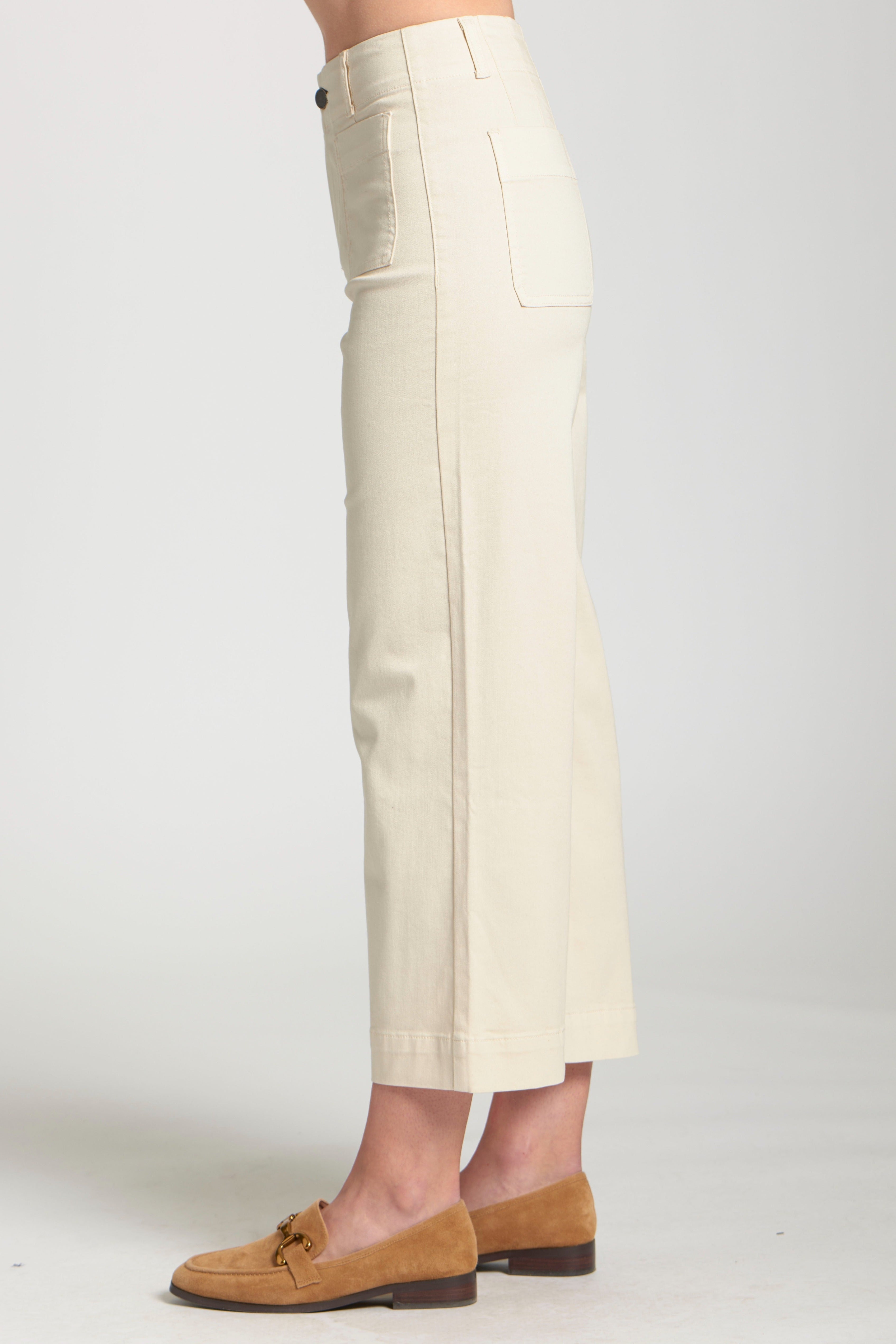 Cropped Wide Leg Pant With Patch Pockets - Natural