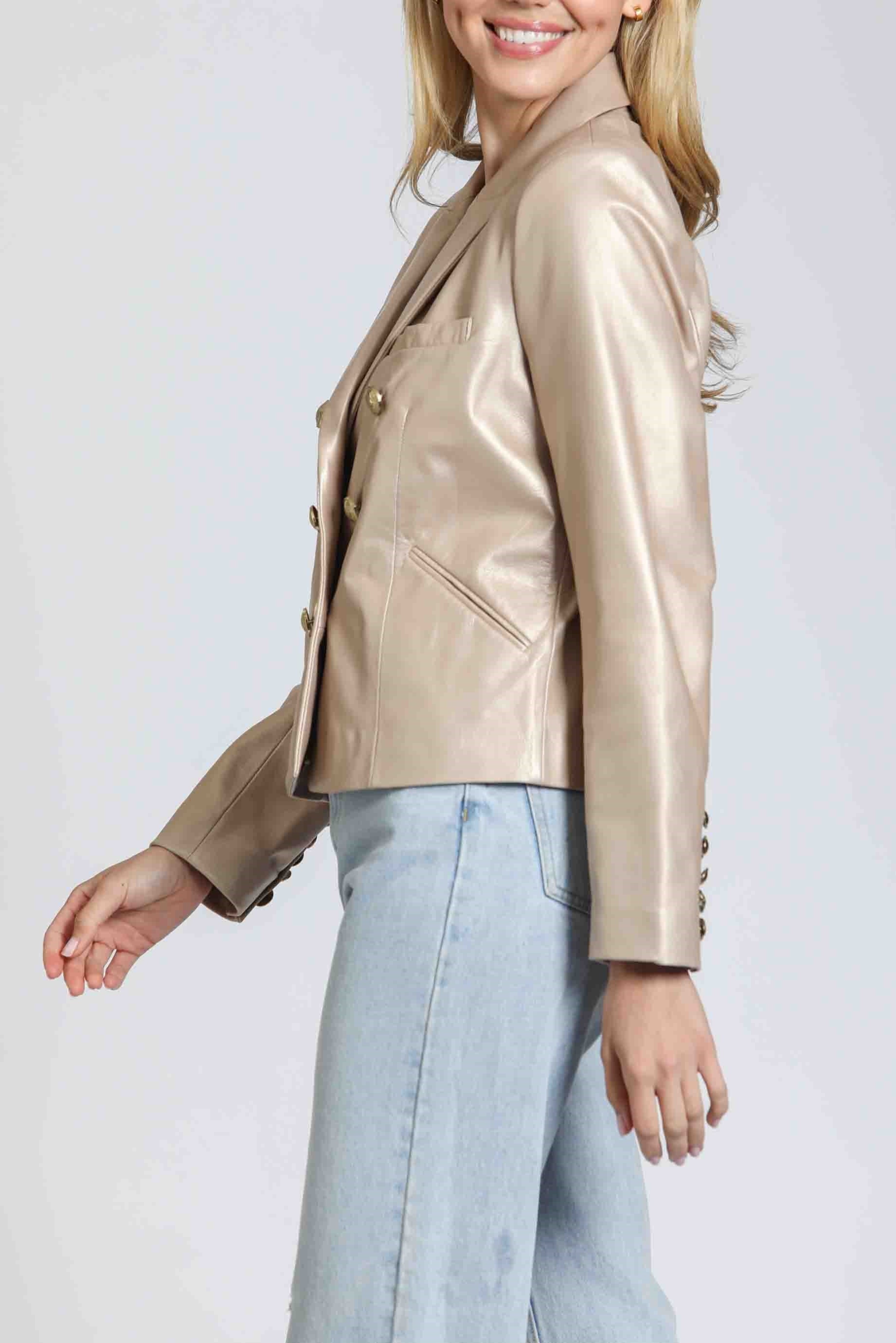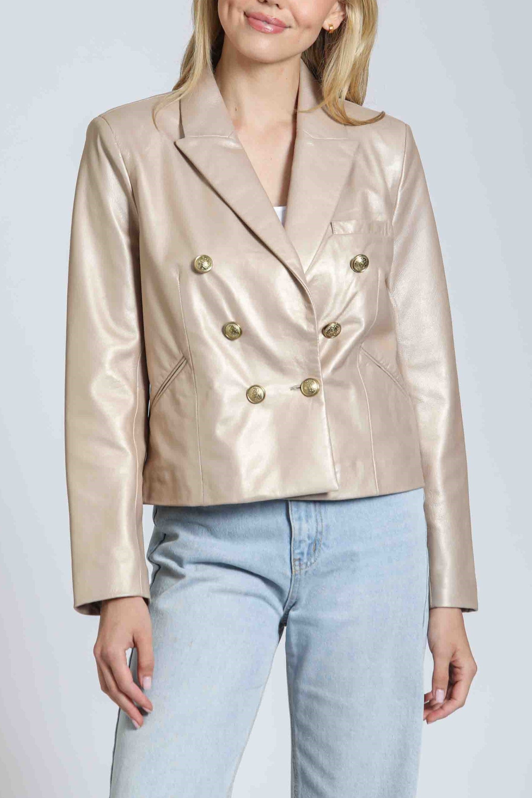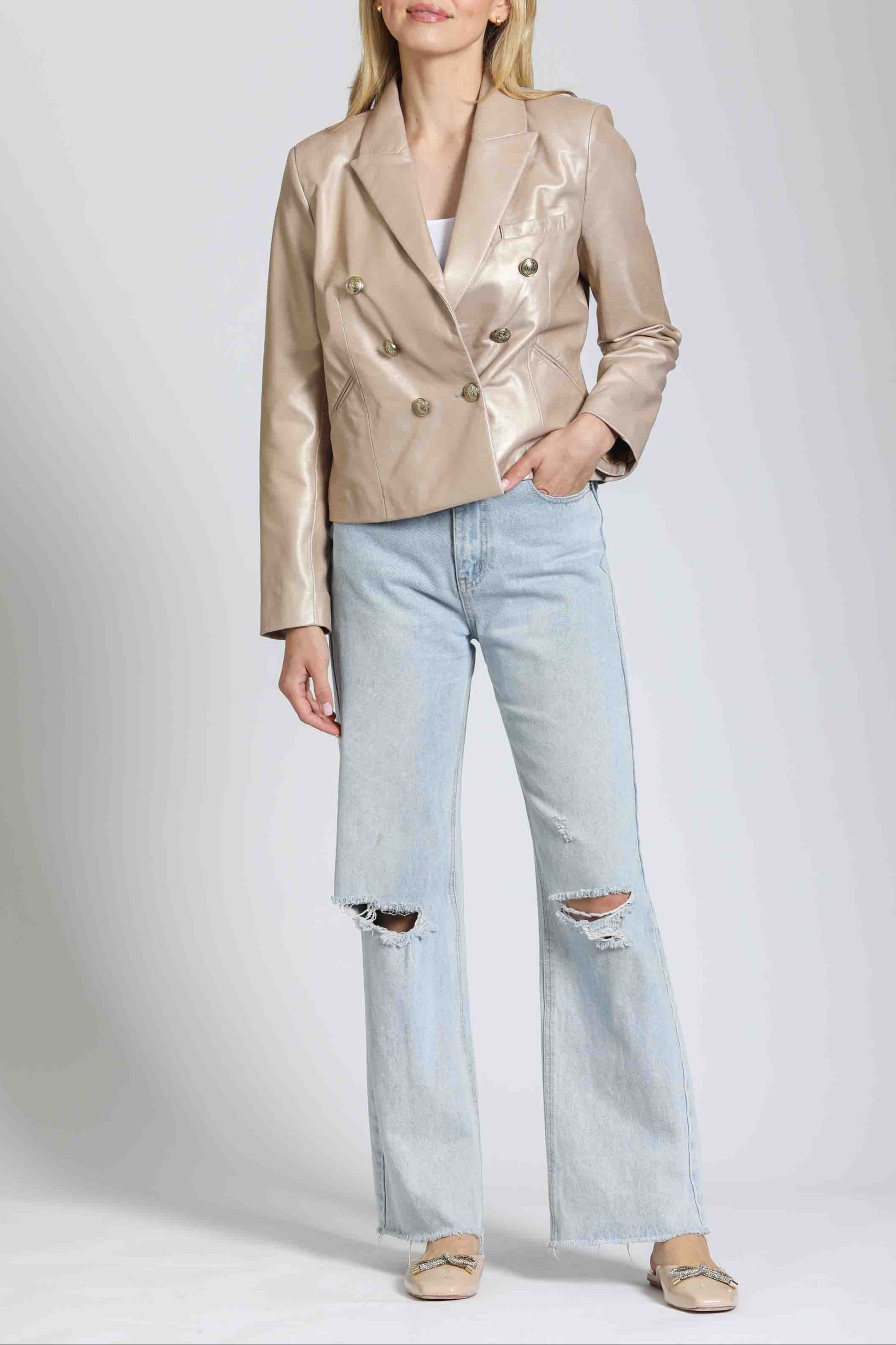 Double Breasted Cropped Jacket With Crest Buttons - Black