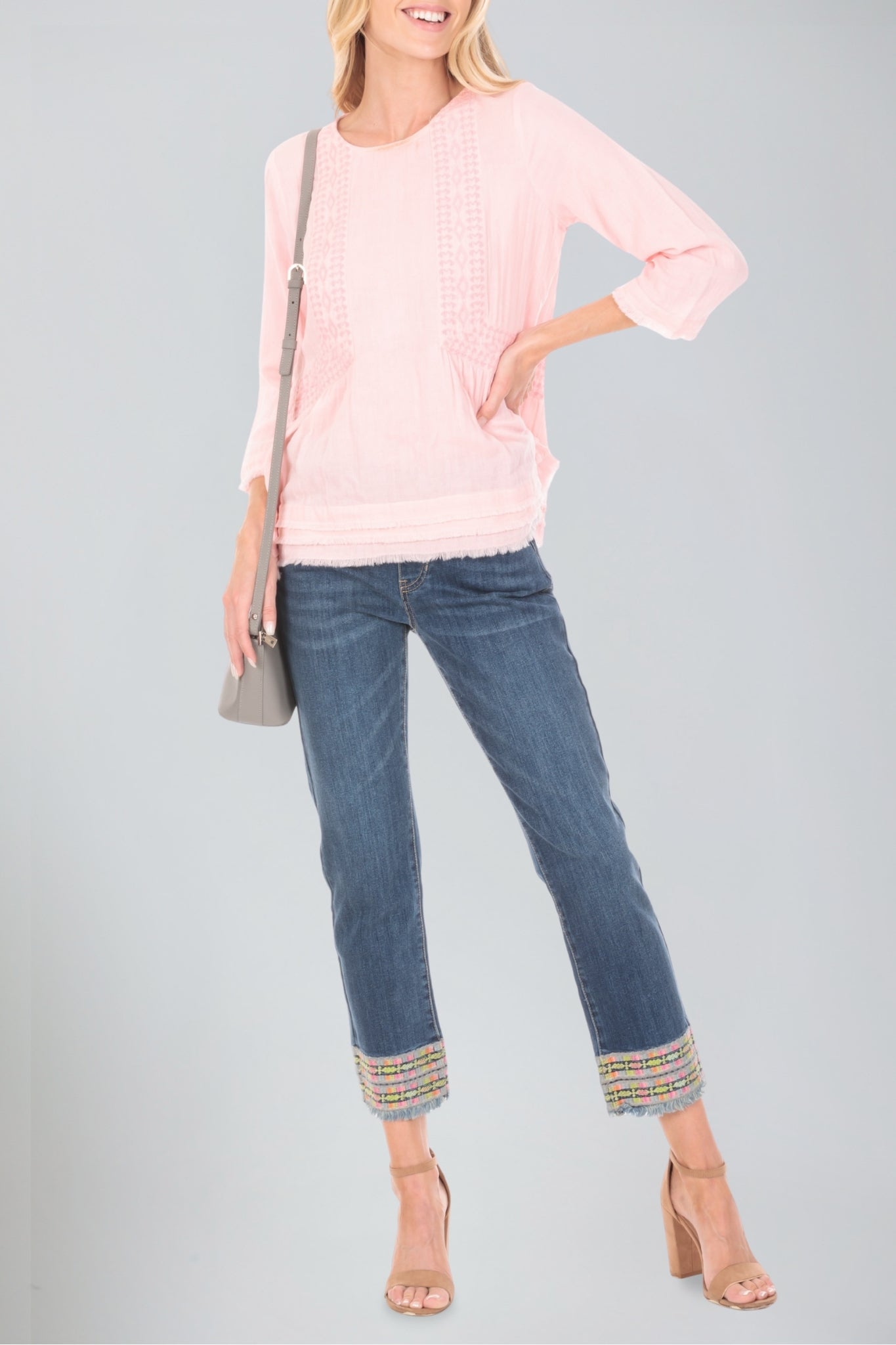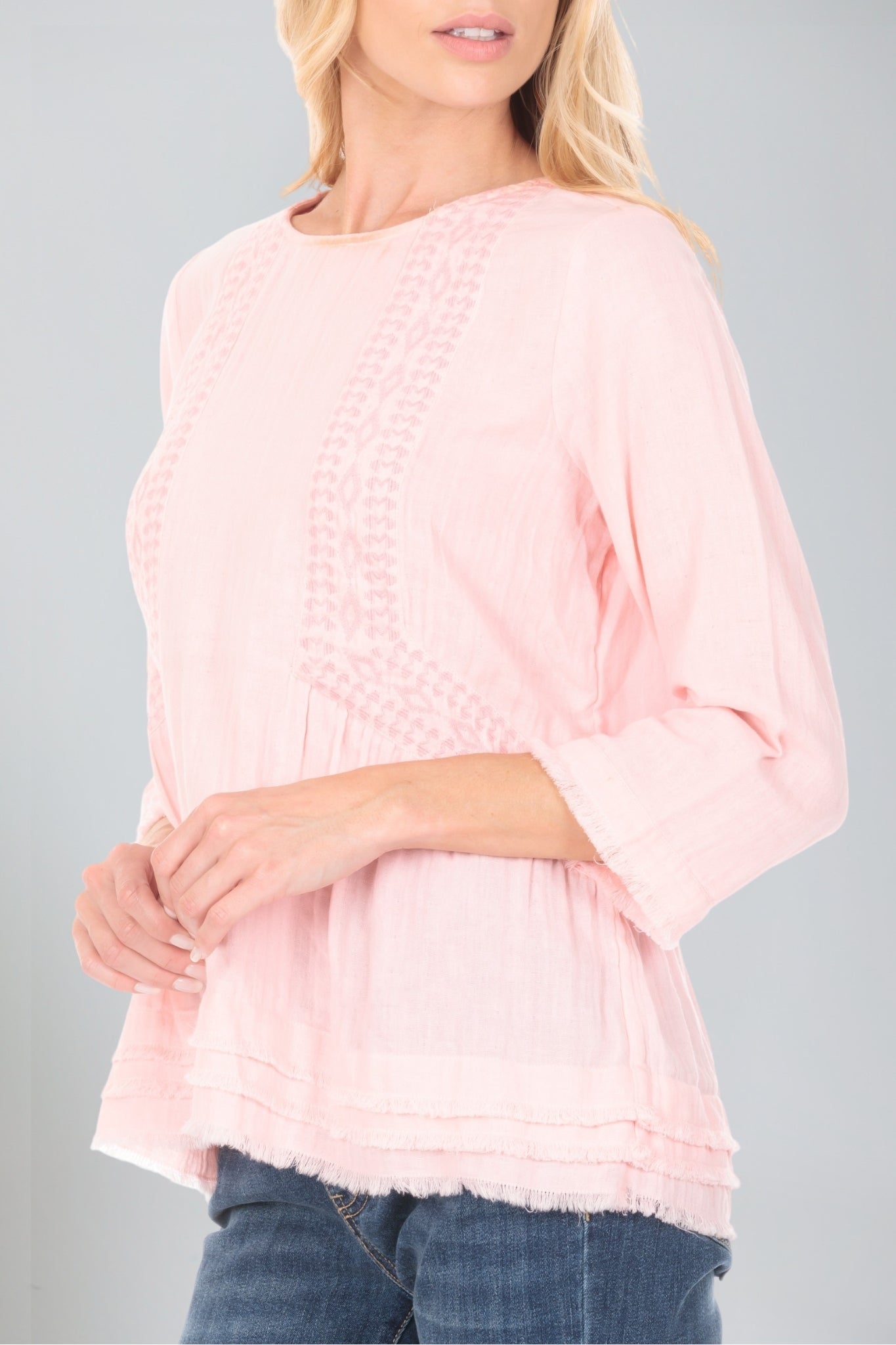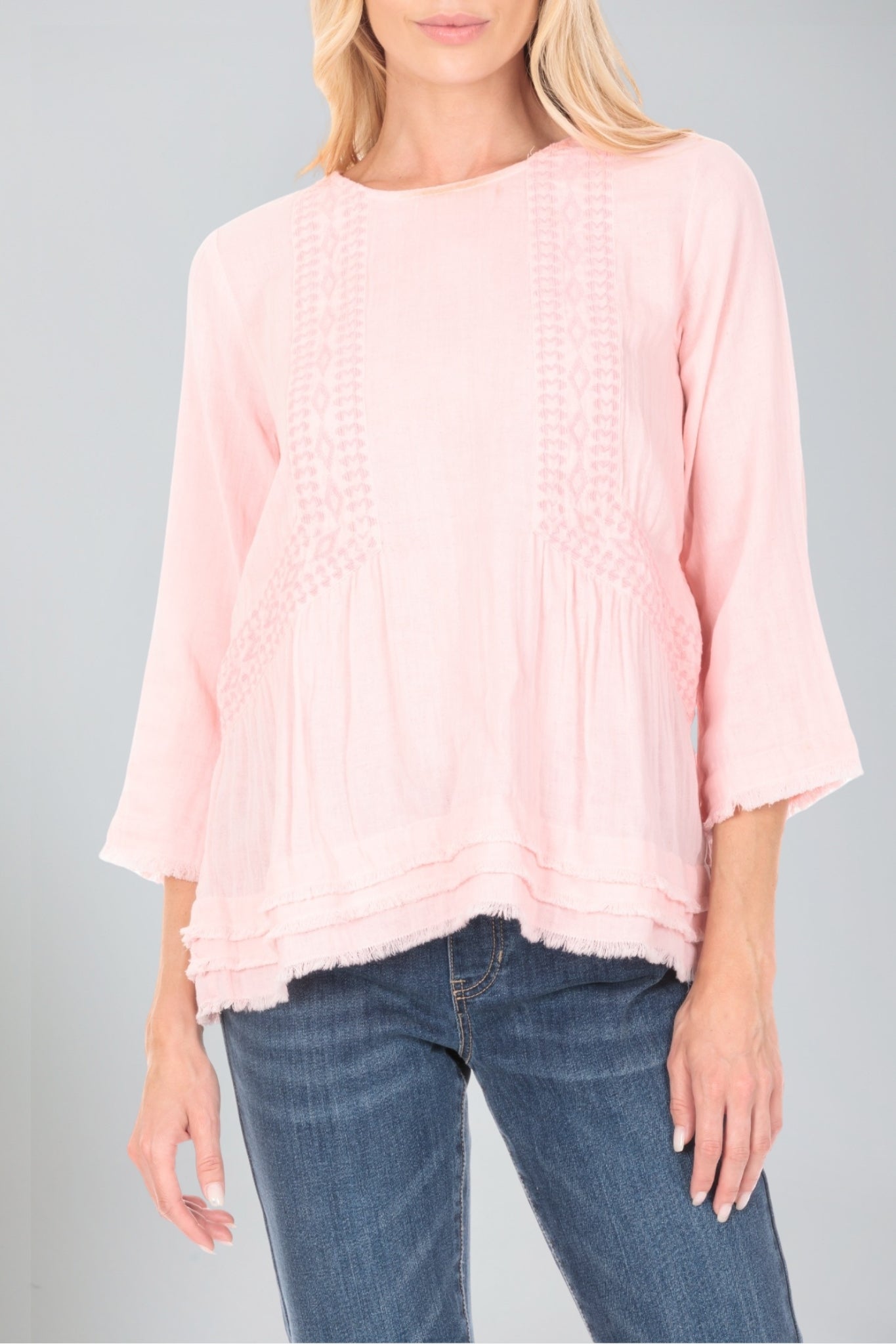 Elevate your everyday style with the "Embroidered P/O With Layered Hem." This pullover combines delicate embroidery with a unique layered hem, offering a touch of sophistication to a casual staple. Crafted from soft, breathable fabric, it provides all-day comfort without compromising on elegance. The intricate embroidery adds a feminine touch, while the layered hem creates a subtle, flattering silhouette. Perfect for pairing with jeans, skirts, or tailored pants, this versatile piece transitions effortlessly from day to night.