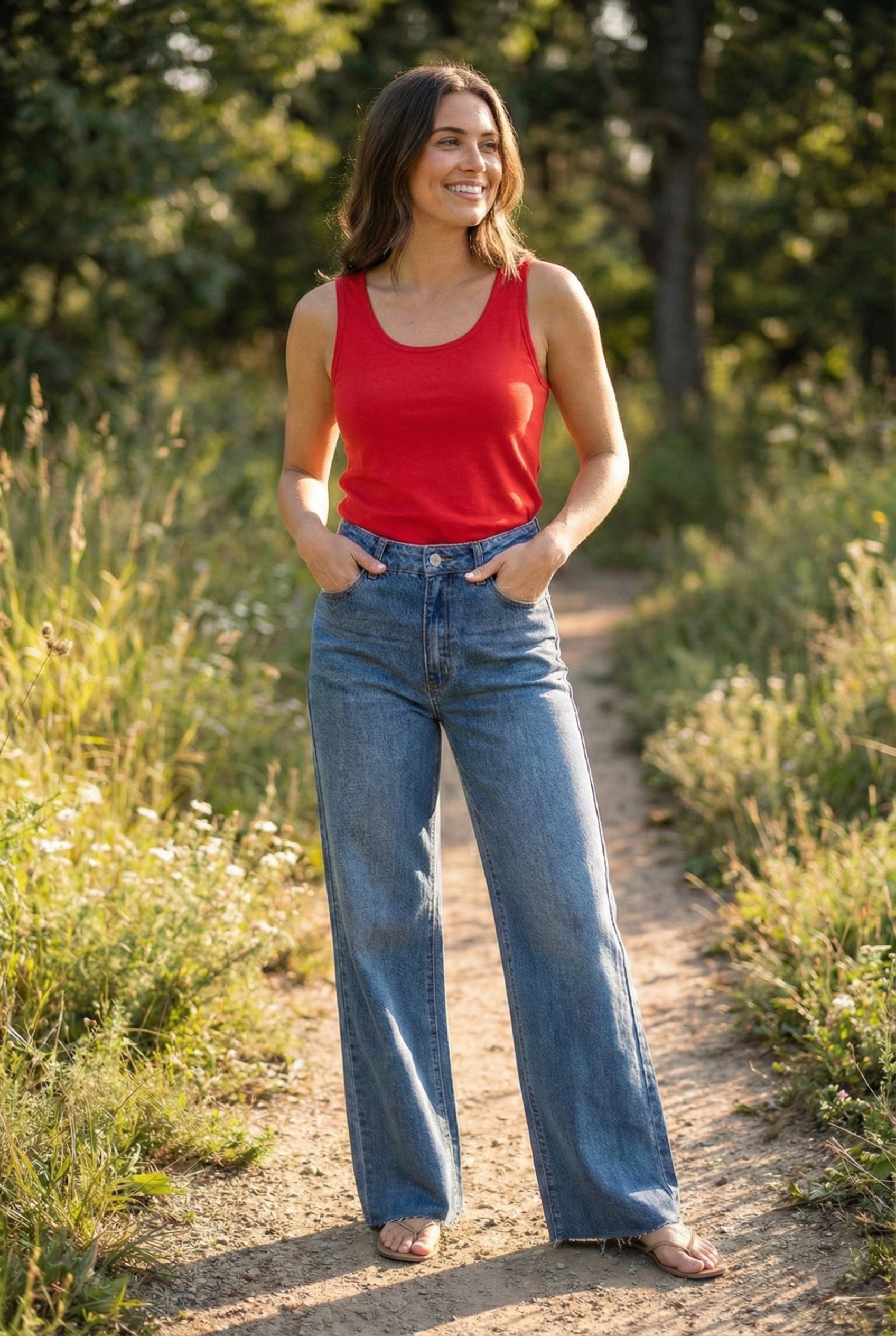 Feather Weight Wide Leg Jean - Medium Indigo