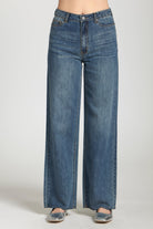 These high-waisted, wide-leg jeans feature a light indigo wash with a relaxed fit for effortless style. Designed with a classic five-pocket construction and subtle seam details, they offer a vintage-inspired yet modern look. Perfect for casual or dressed-up styling!