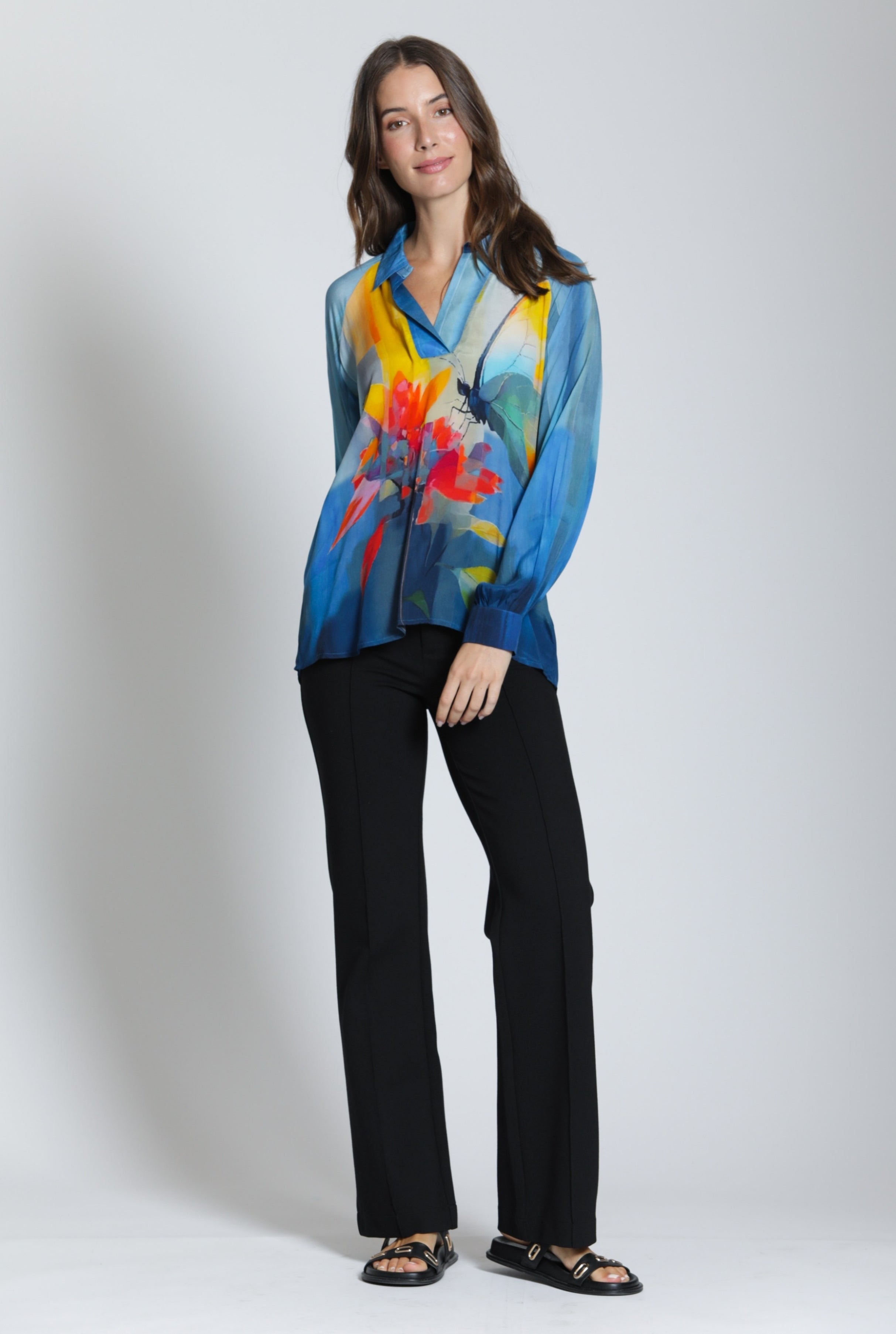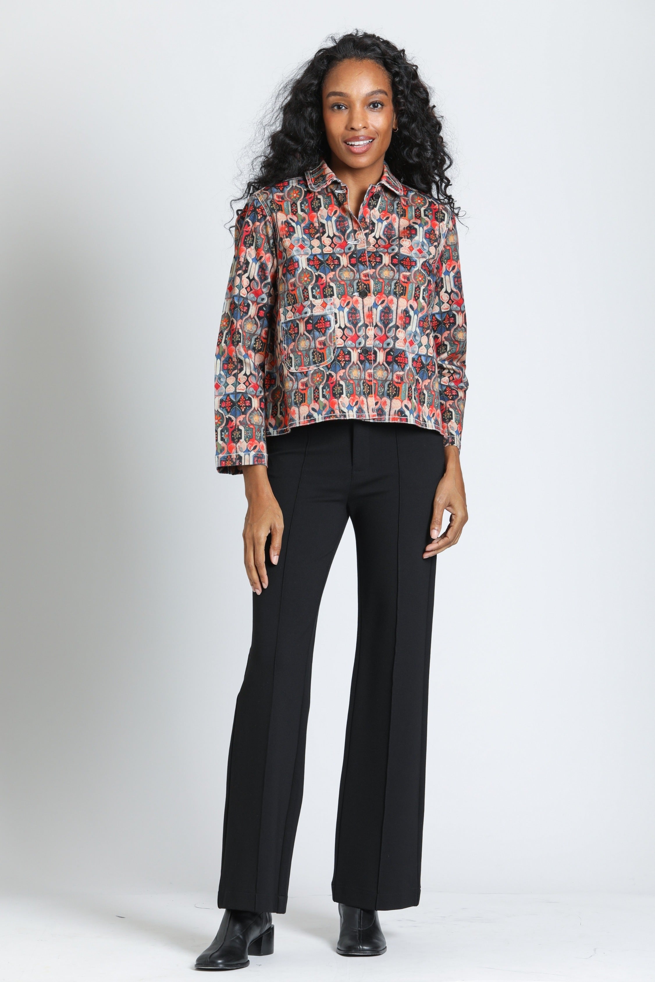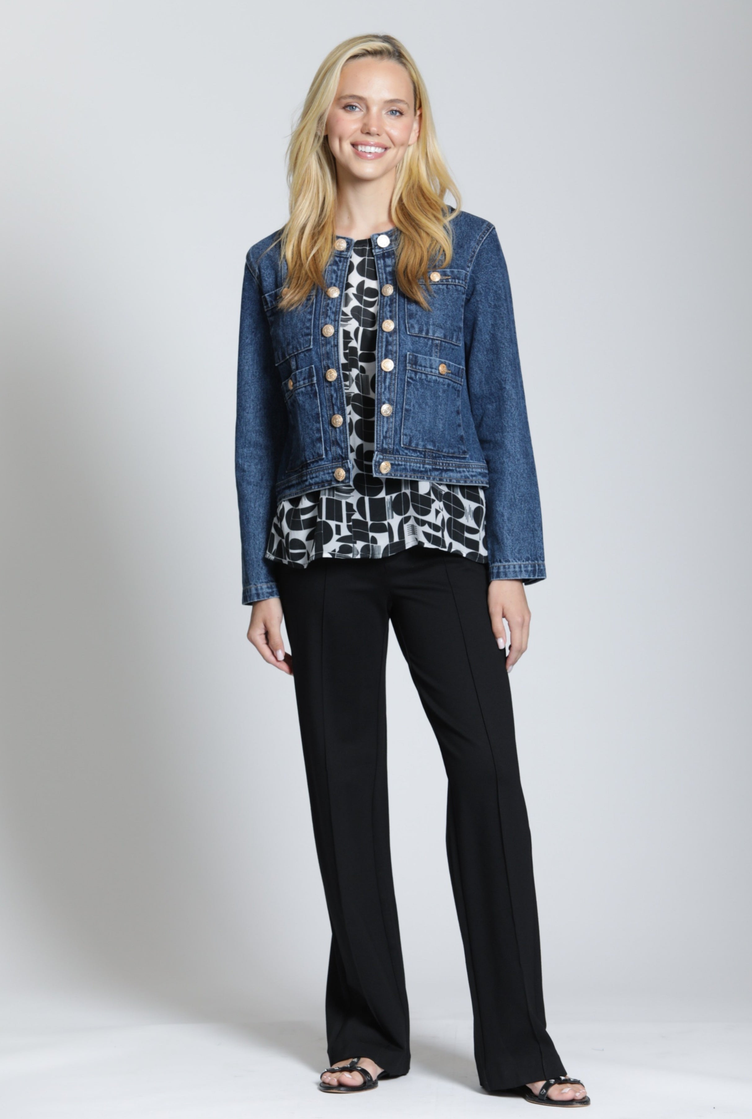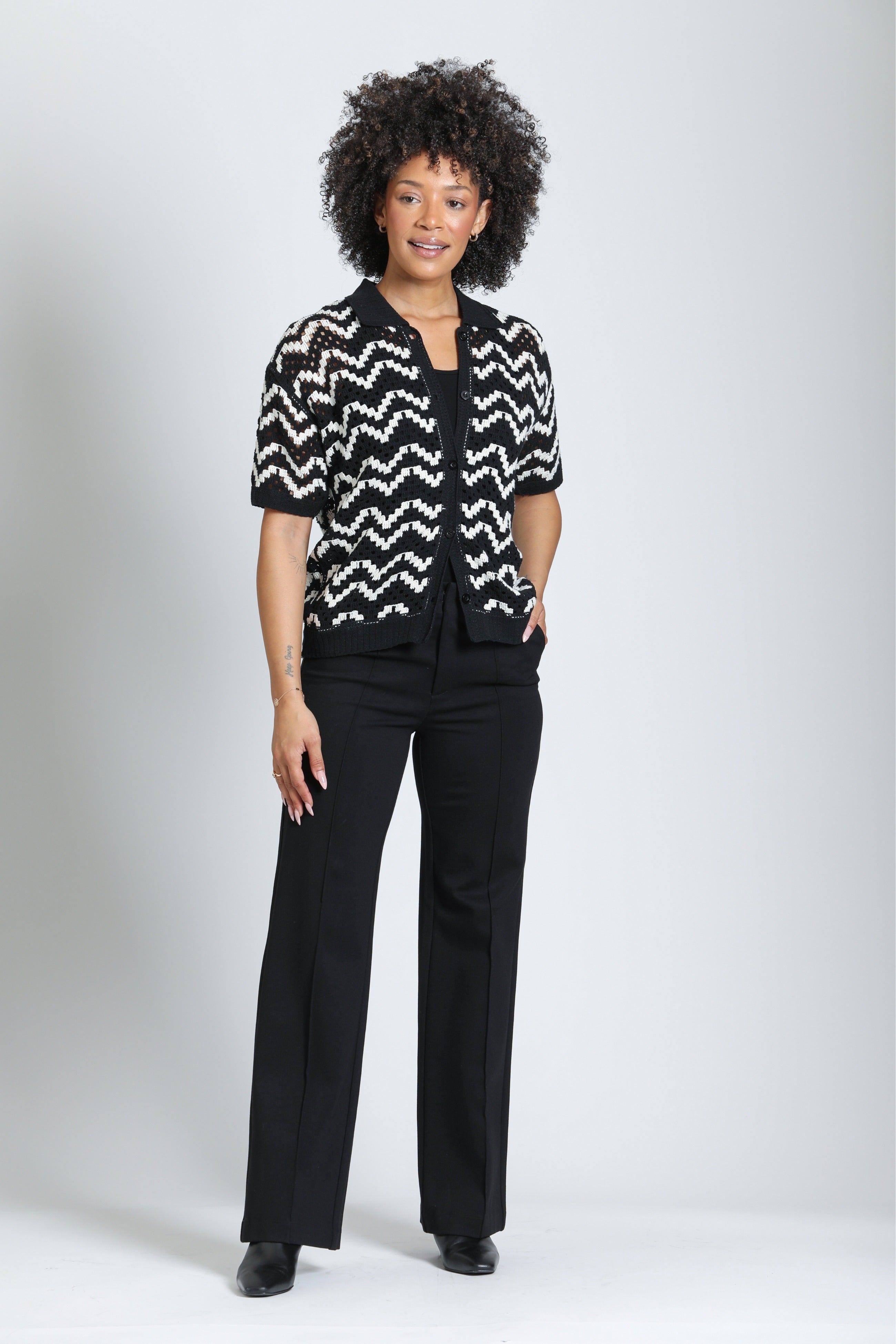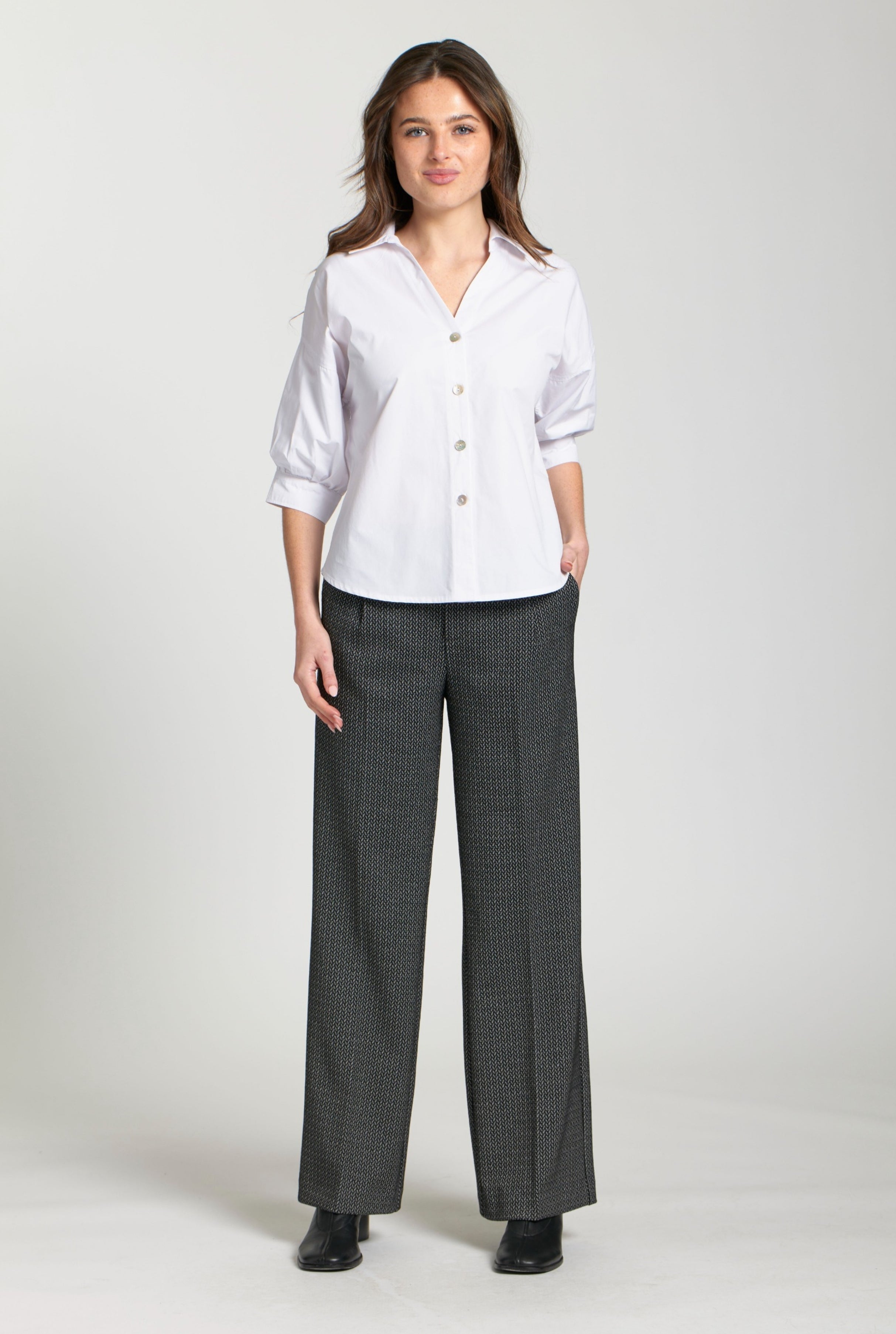 Front Zip Pant With Pin-Tucked Leg- Black