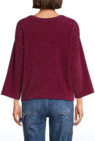 Snuggle up in style with this irresistibly soft Fuzzy Pullover Sweater, a cozy essential for the cooler months. Featuring a luxurious eyelash knit texture in a rich wine or deep burgundy hue, this sweater offers a relaxed fit and a flattering cropped silhouette. The wide, three-quarter length bell sleeves add a touch of playful drama and modern style, while the classic scoop neckline keeps the look versatile. Pair this warm and fashionable pullover with high-waisted jeans for an effortlessly chic and comfortable outfit.