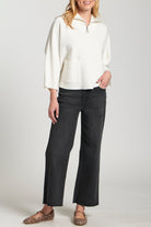 Elevate your casual look with this effortlessly stylish pullover. Designed with a half-zip closure, it offers both comfort and adjustability, while the collared neckline adds a structured, sporty touch. The relaxed V-neck style created by the zip adds a modern, flattering edge.