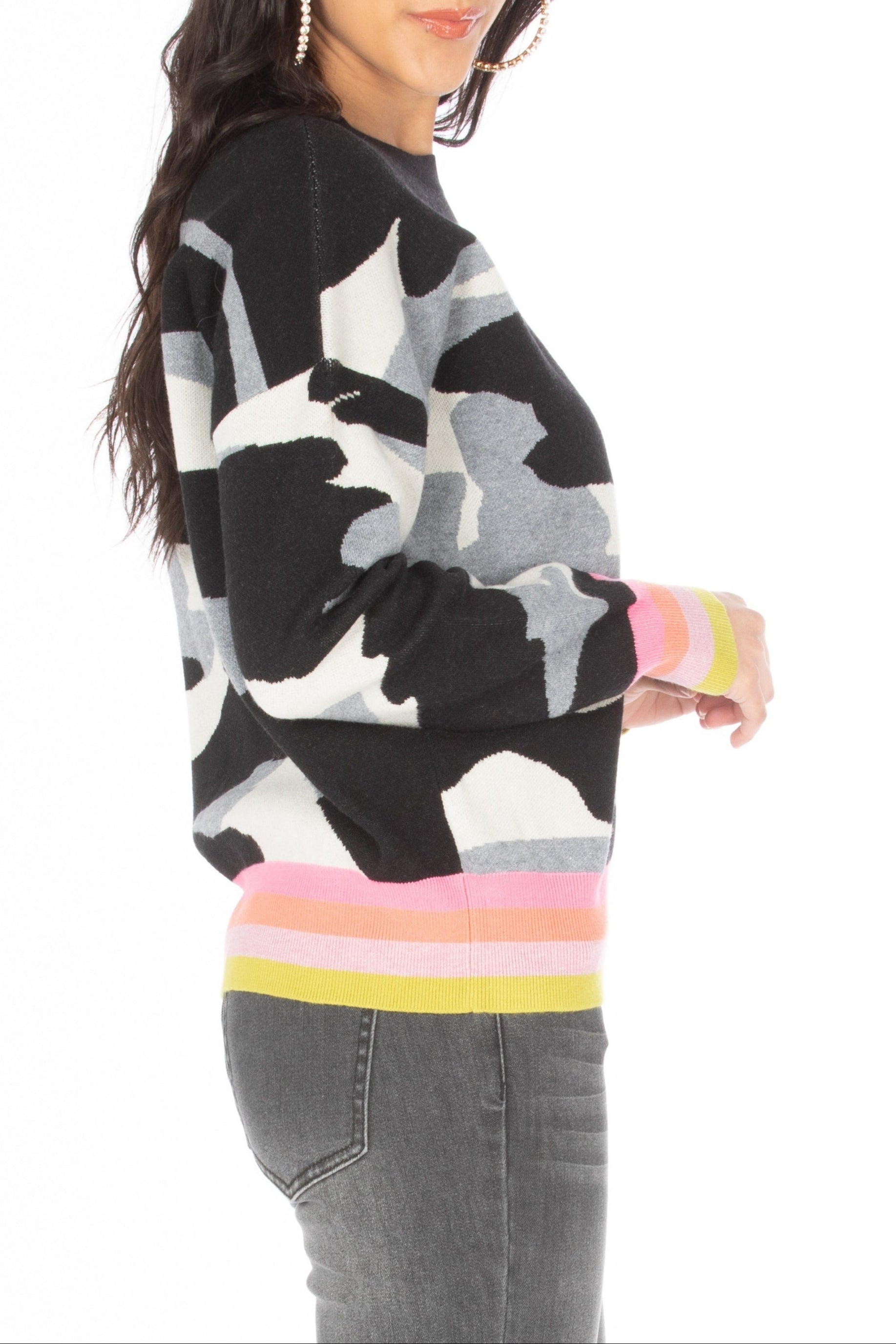 Houndstooth Pattern Pullover With Color Band