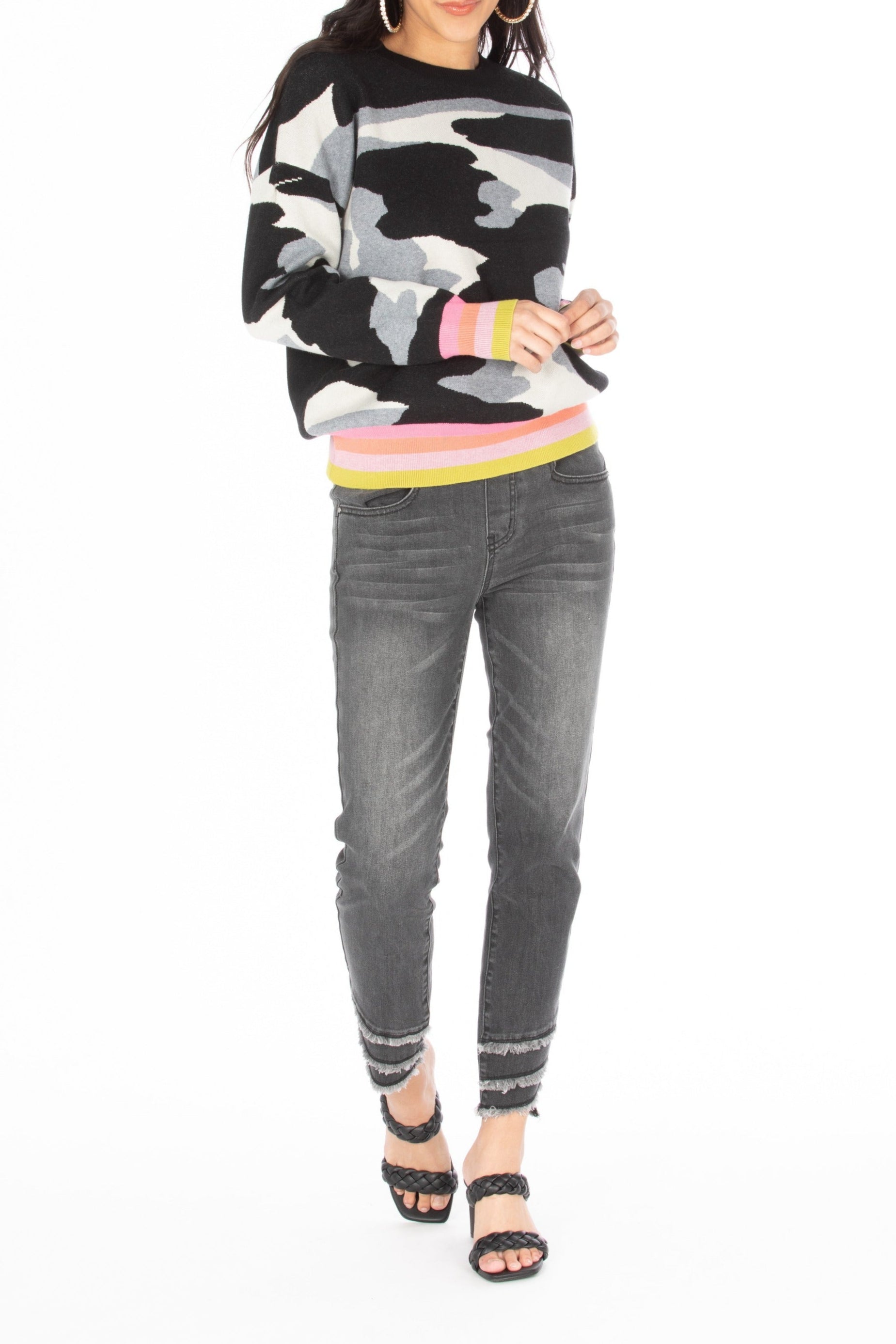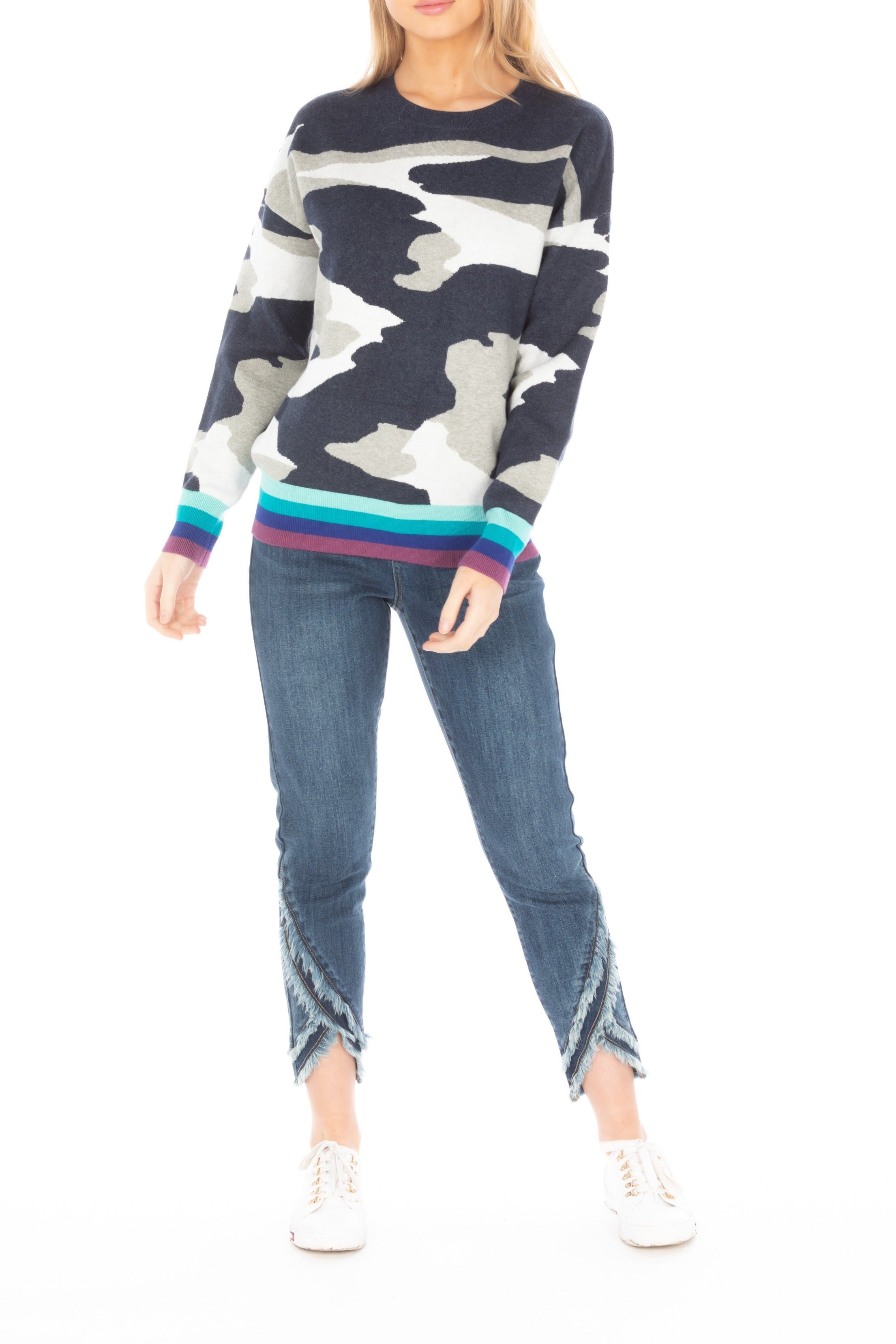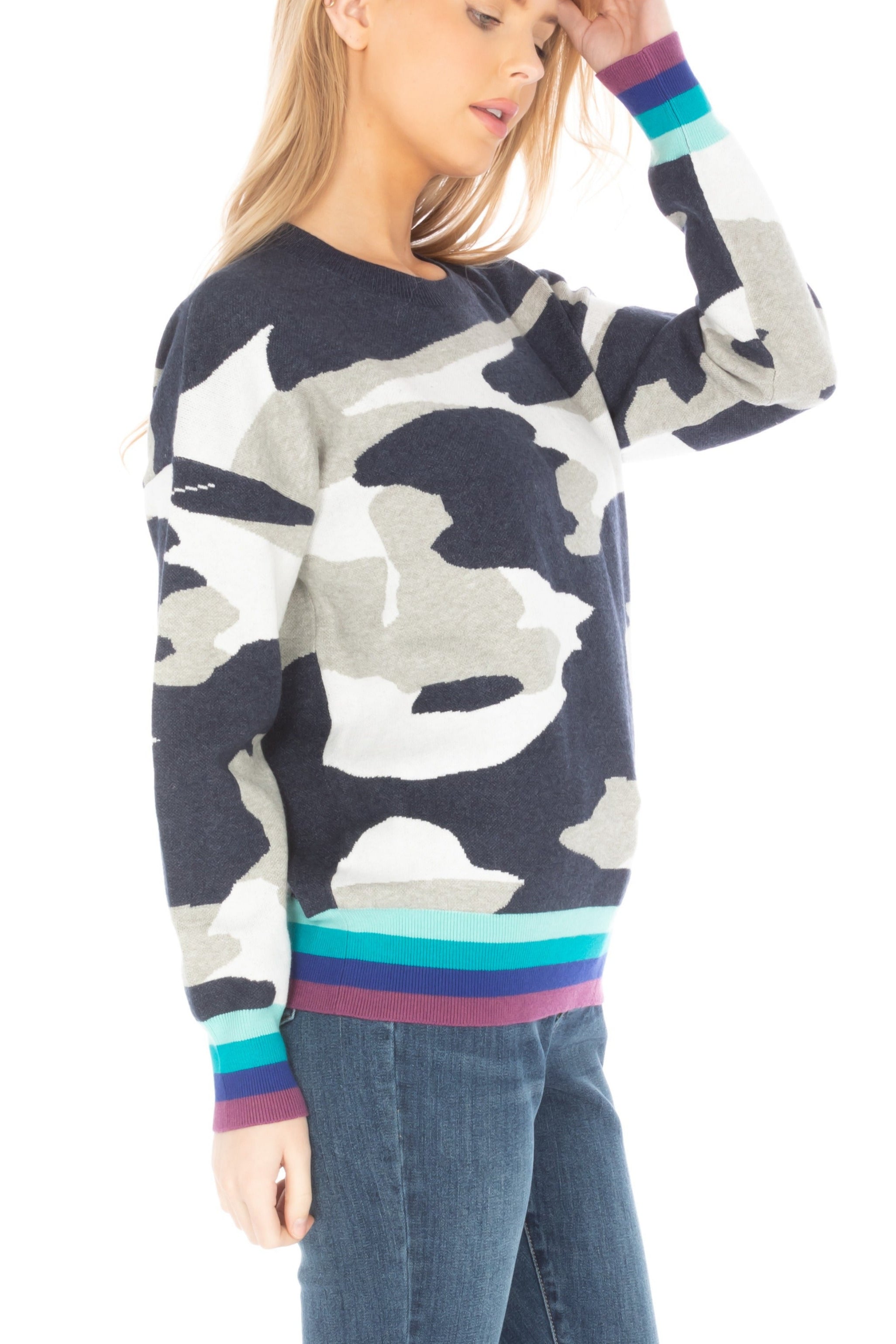 The Houndstooth Pattern Pullover with Color Band effortlessly blends classic and contemporary styles. Its signature houndstooth print exudes timeless sophistication, while the vibrant color band at the cuffs or hem adds a modern twist. Crafted for both comfort and style, this pullover is perfect for layering in cooler weather. The houndstooth pattern provides a bold, stylish backdrop, and the color band adds a pop of individuality, making this piece versatile for both casual and semi-formal looks. Whether paired with denim for a laid-back outfit or dressed up with a skirt for a chic appearance, this pullover is a must-have for anyone looking to add a bit of modern flair to their wardrobe.