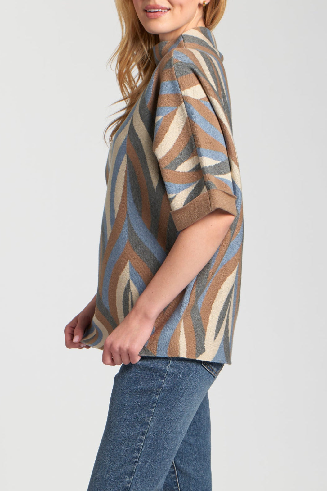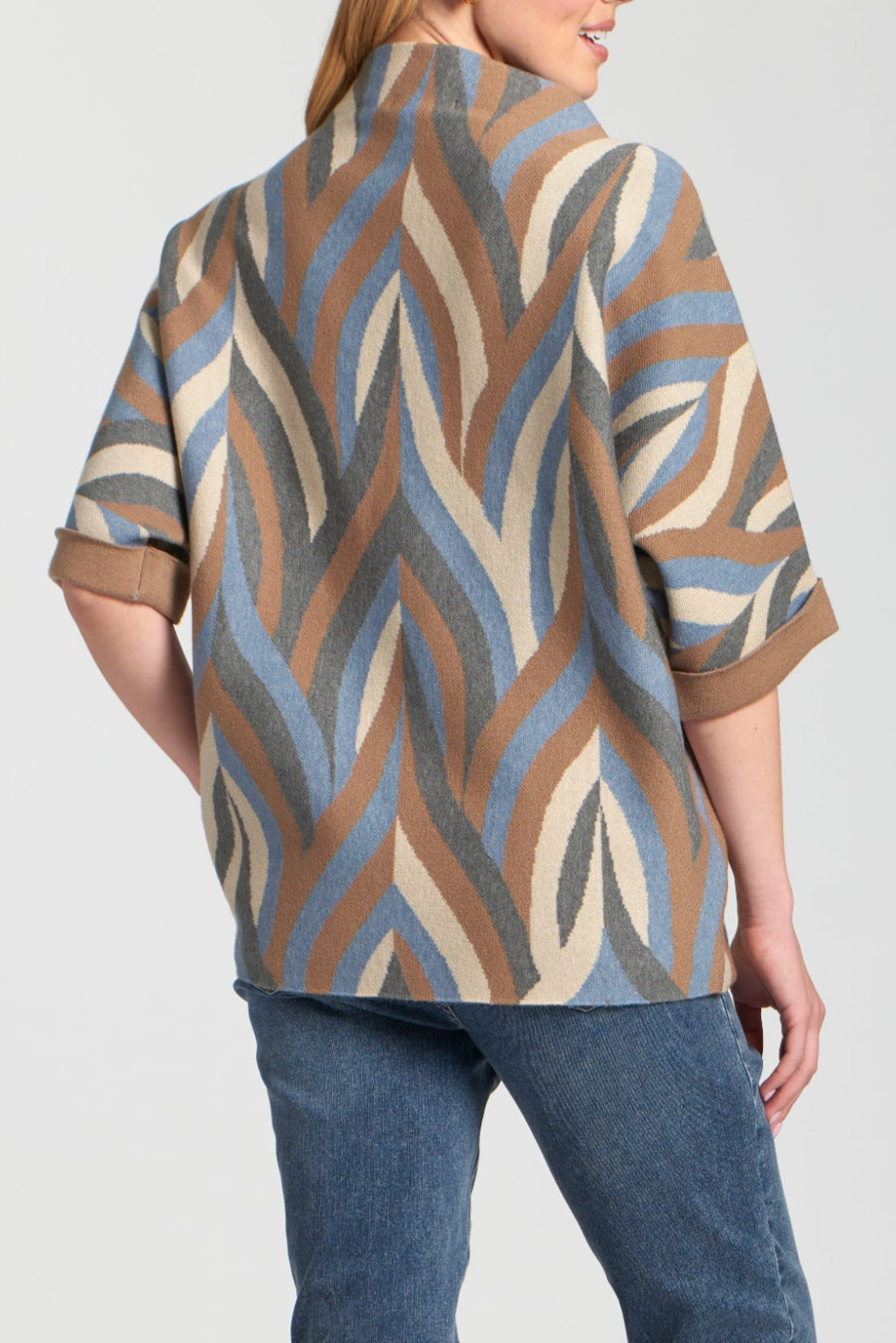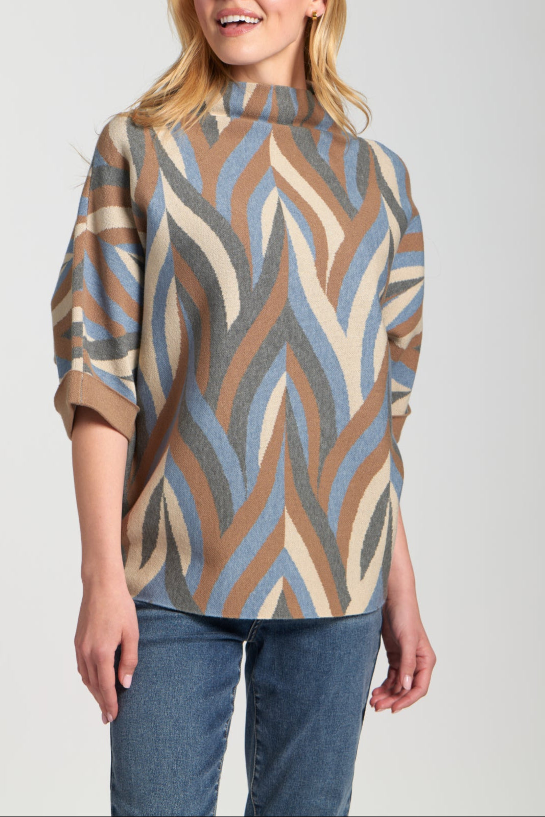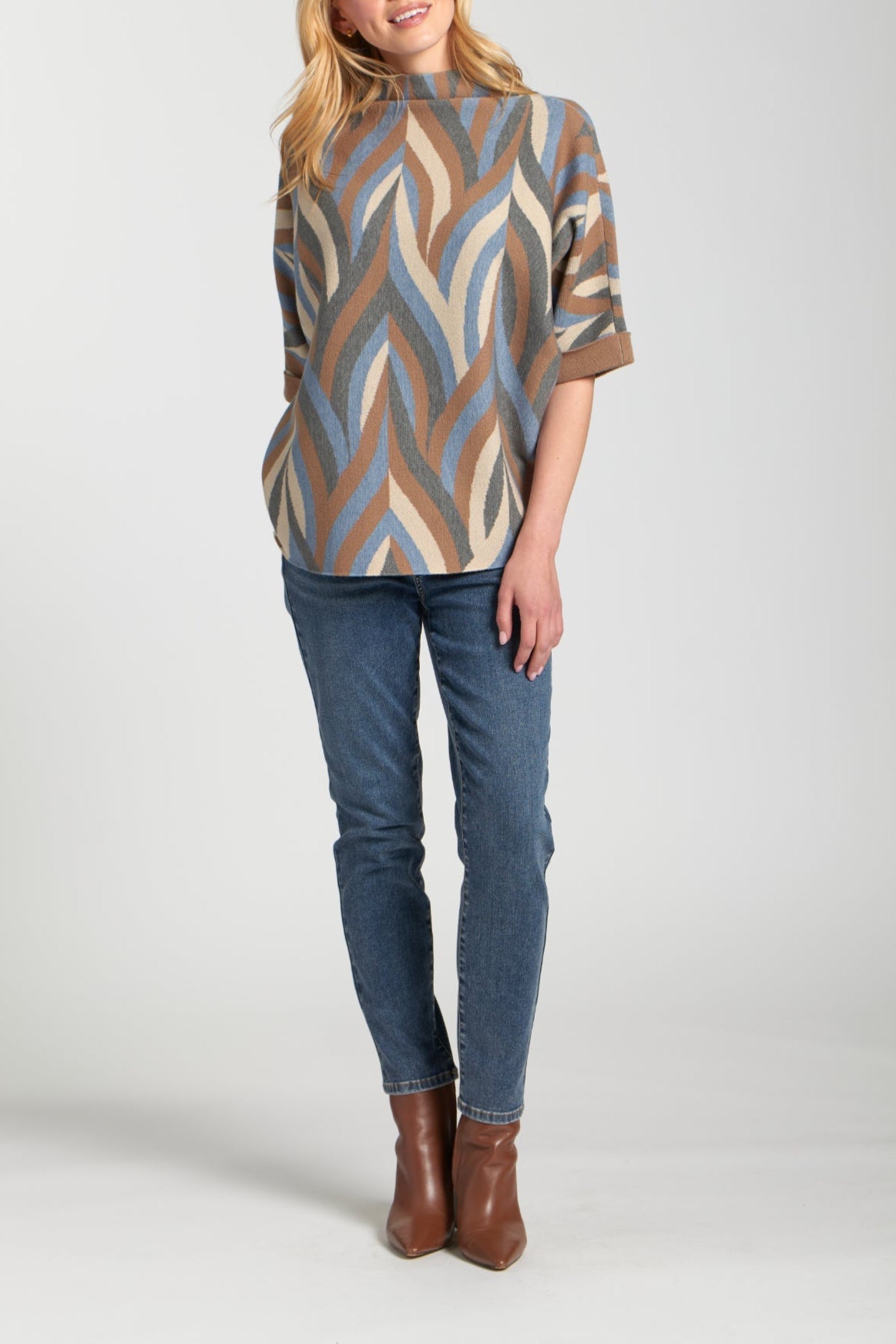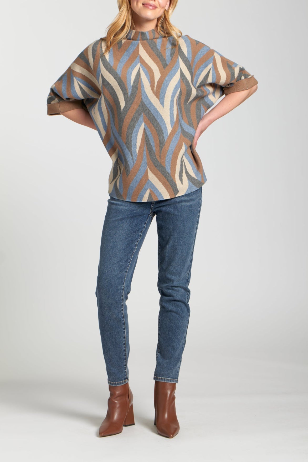 Infuse your wardrobe with bold personality and cozy sophistication with this abstract wave-patterned sweater top. Crafted in a soft, knit fabric, it features a relaxed silhouette that offers both comfort and modern flair. The striking all-over pattern in earthy tones makes it a standout piece for any season.
