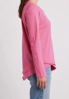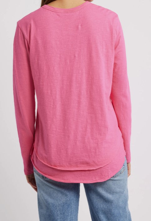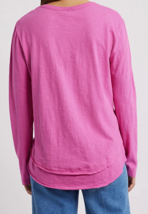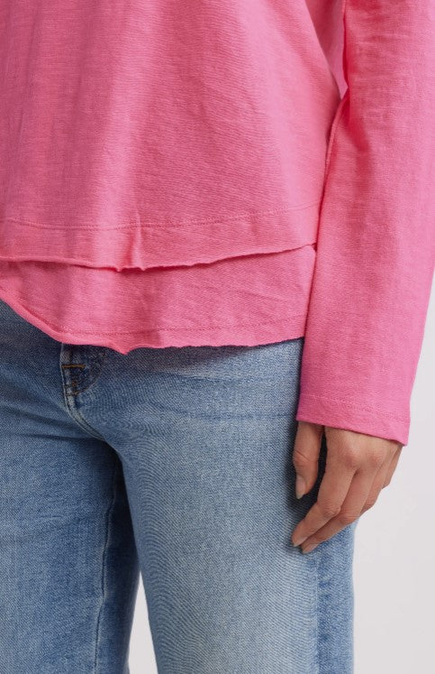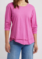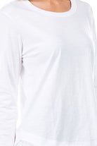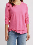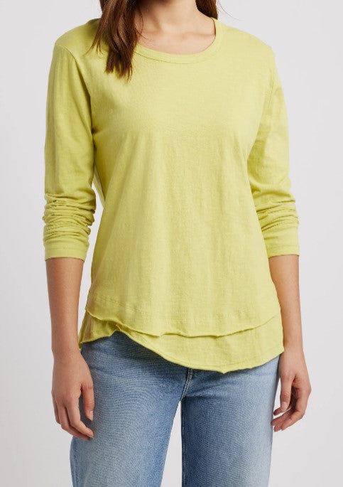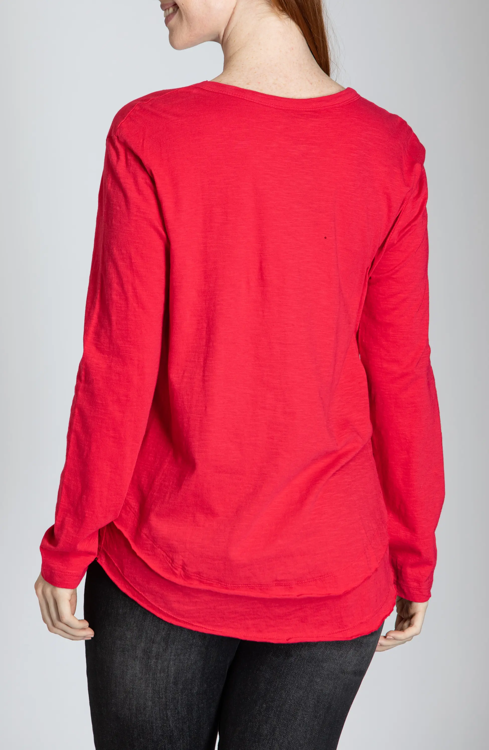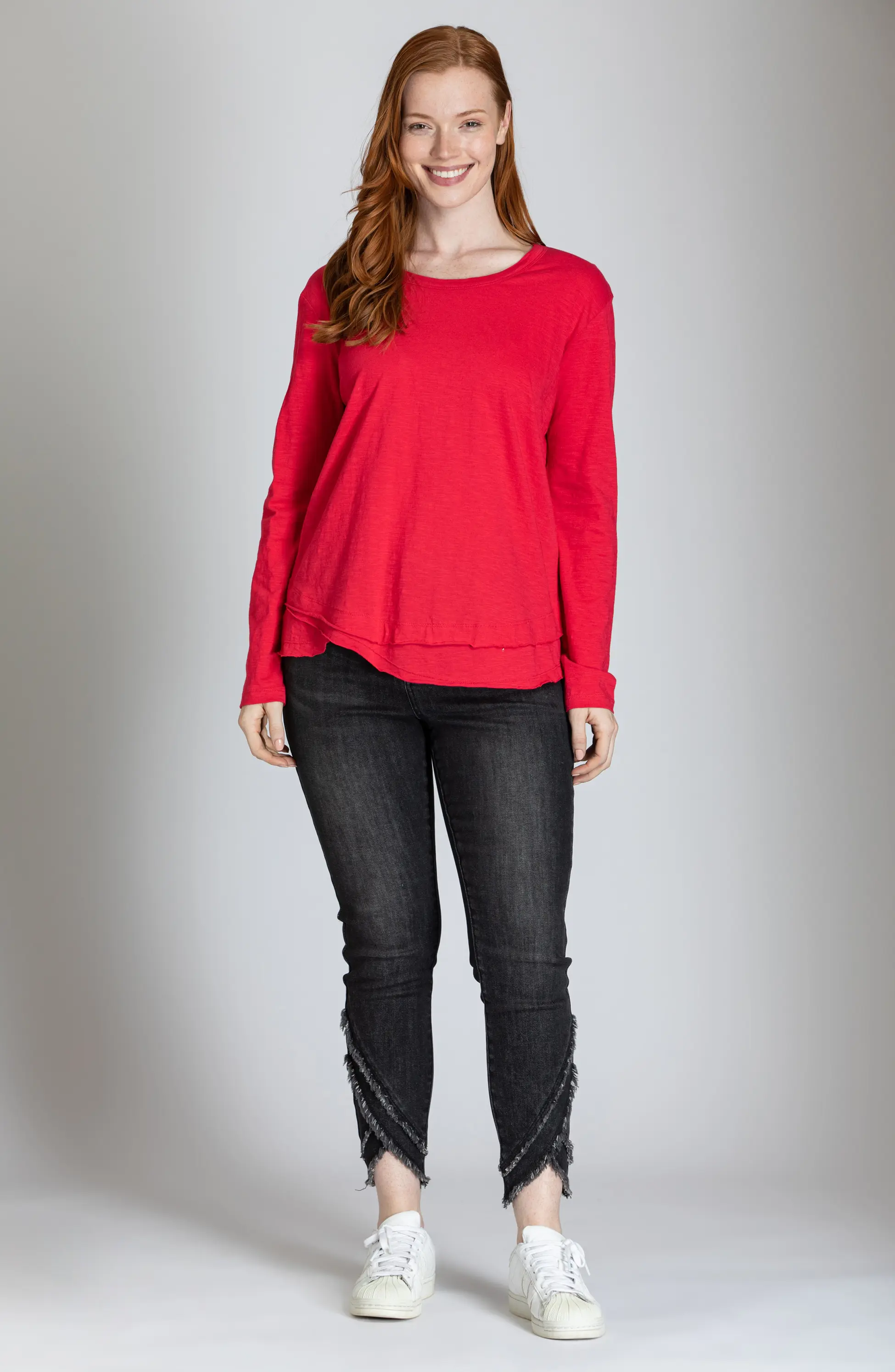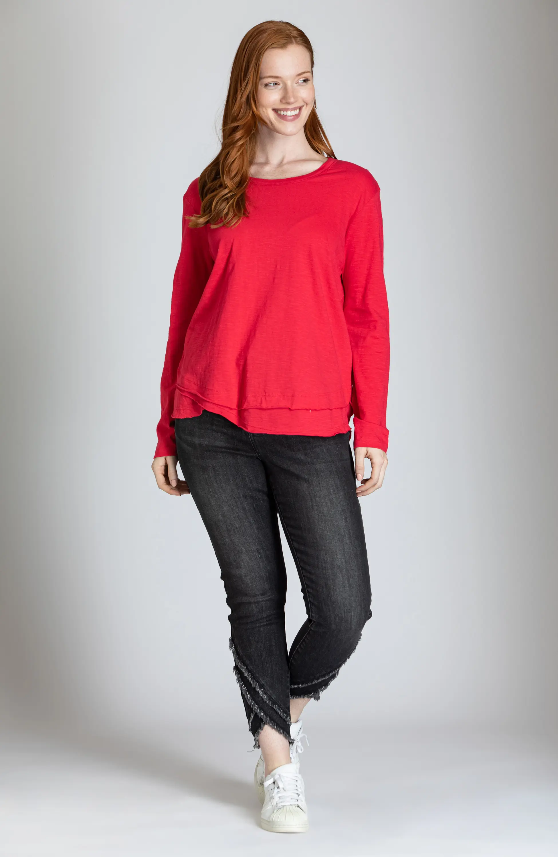 The gorgeous fit and on-trend design of our Long Sleeve Scoop Neck Tee is perfect for everything from sweet date nights to outdoor parties. The elegant construction, double layered asymmetrical hemline and ultra-soft fabrication add a chic touch to any look. This better-than-basic blouse pairs well with everything from denims to leggings.