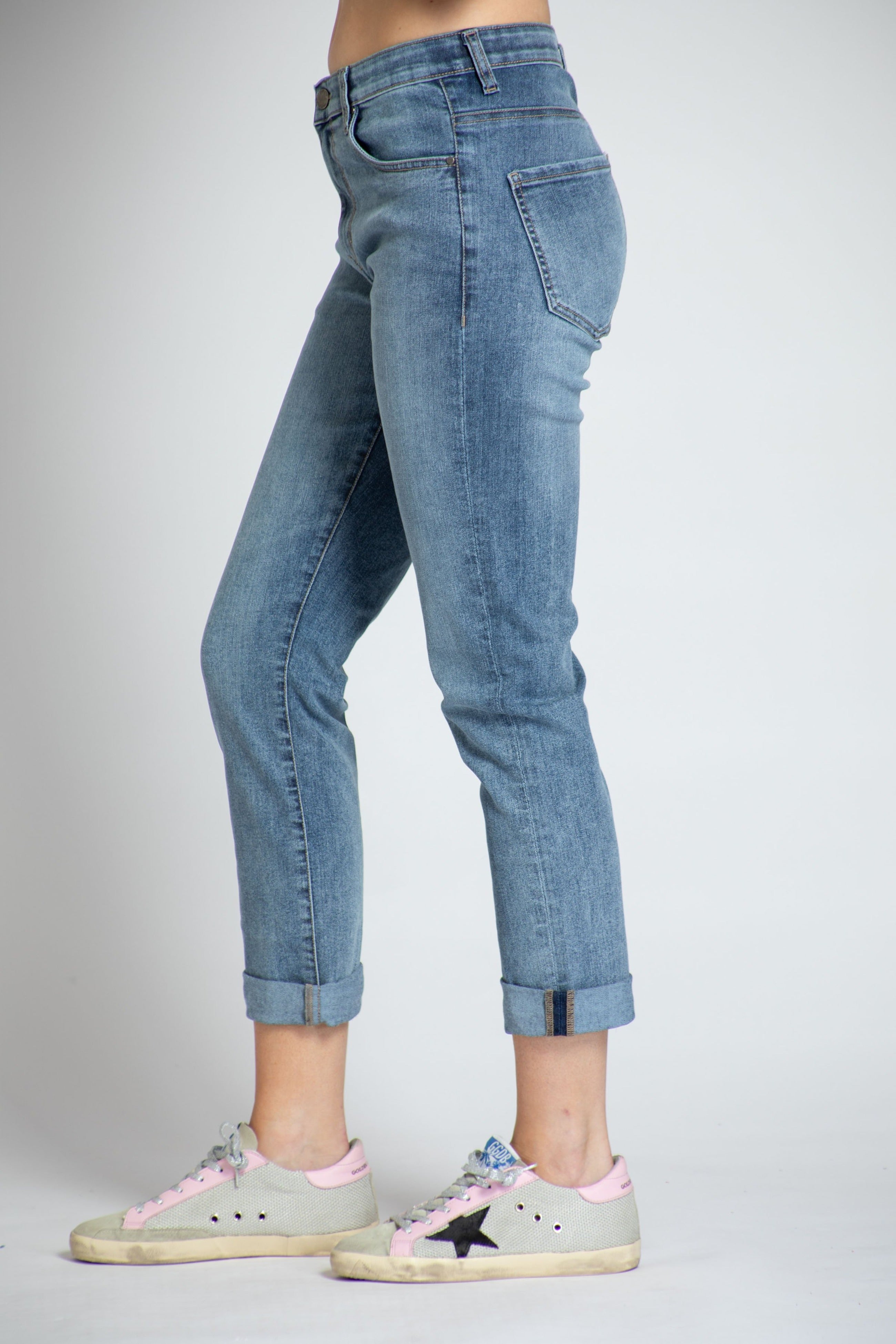 Our Mid Rise Girlfriend Rolled Jean offers a comfortable yet trendy fit. Made from a strong blend of 70% cotton, 28% polyester, and 2% elastane for added stretch, these jeans are super comfortable. The rolled cuffs add in that casual touch, so perfect for casual wear. Wear this with a white top, black sunglasses and the day is yours.