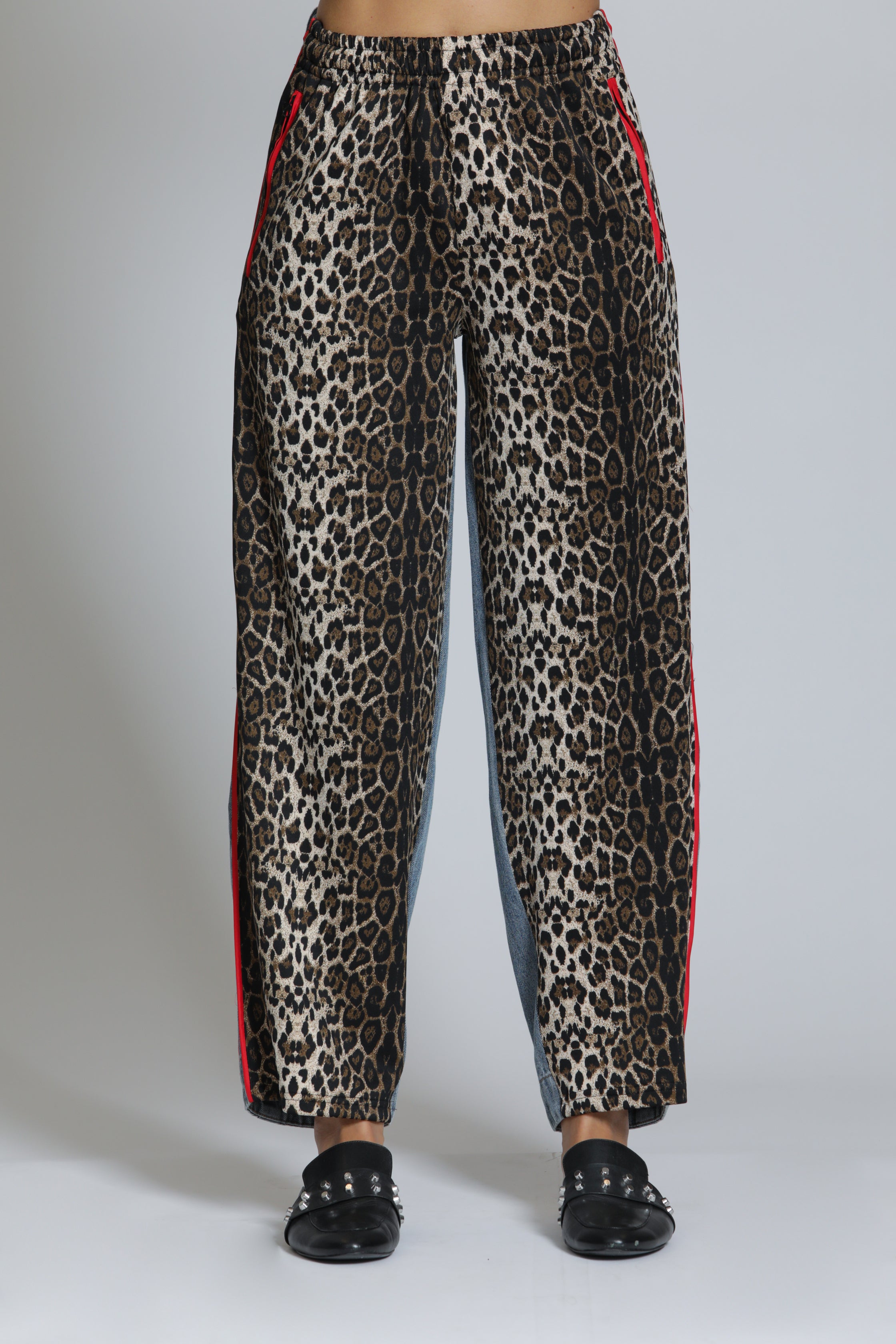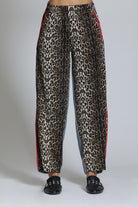 Unleash bold street-style energy with these leopard print wide-leg pants. Designed with an elastic waistband for all-day comfort, they feature side pockets accented with striking red piping for a sporty edge. The relaxed silhouette and lightweight fabric make them perfect for casual outings, while the statement animal print adds a touch of fearless flair. Pair with sneakers or slides for an effortlessly chic look.