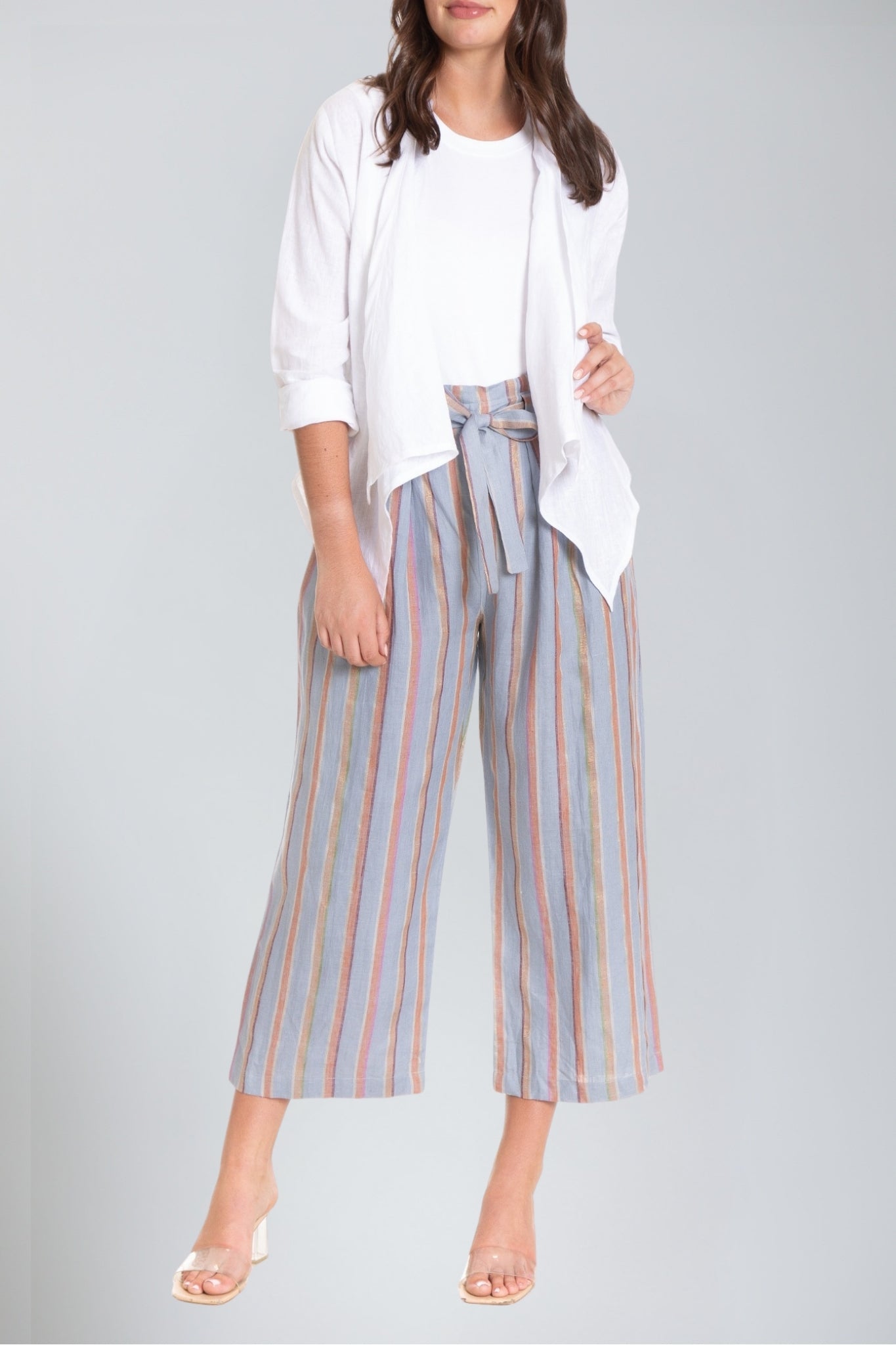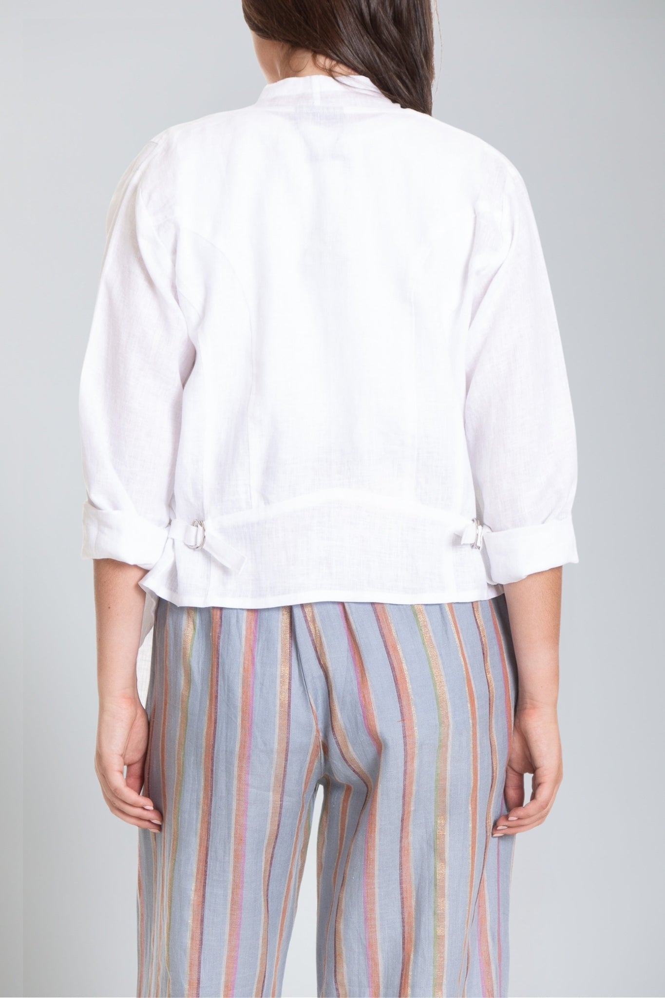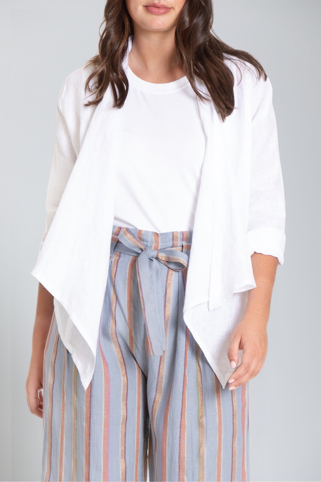The Open Front Linen jacket is a statement-making must-have style. A practical choice for in-between seasons, this jacket compliments all outfits and is perfect for all occasions. Finished with a shawl collar and draping at the front, this jacket works wonders for night as well day events.