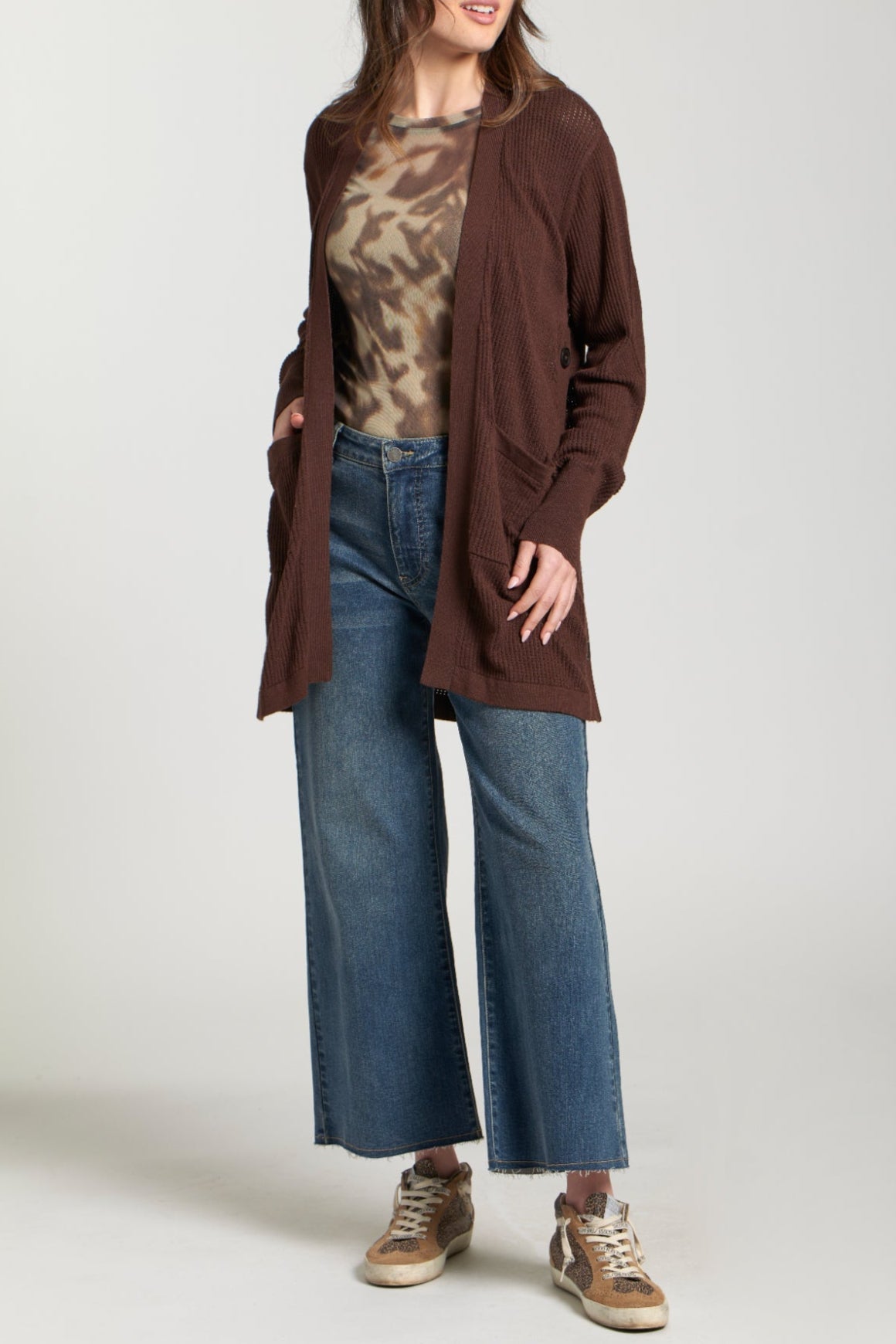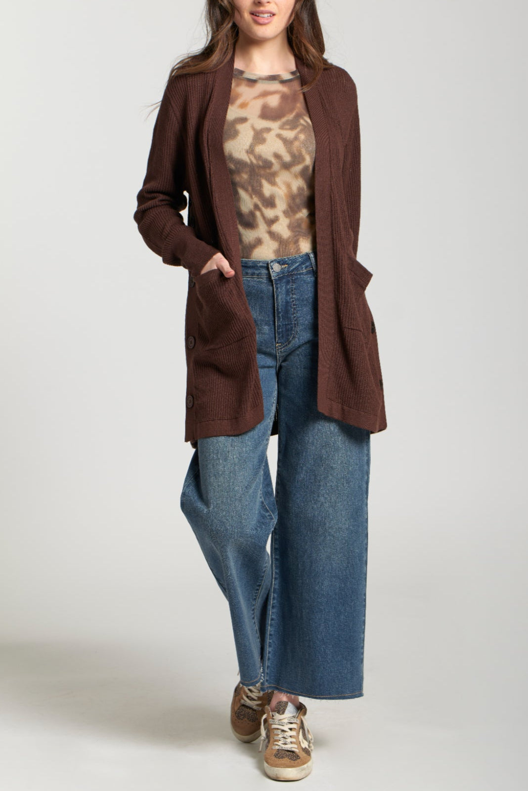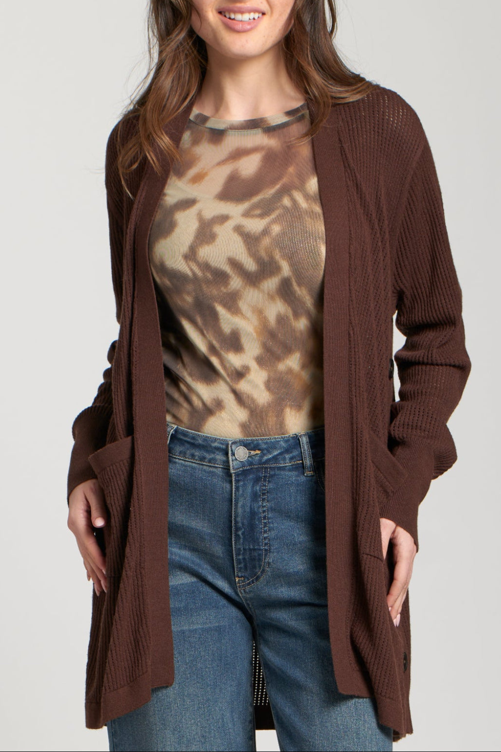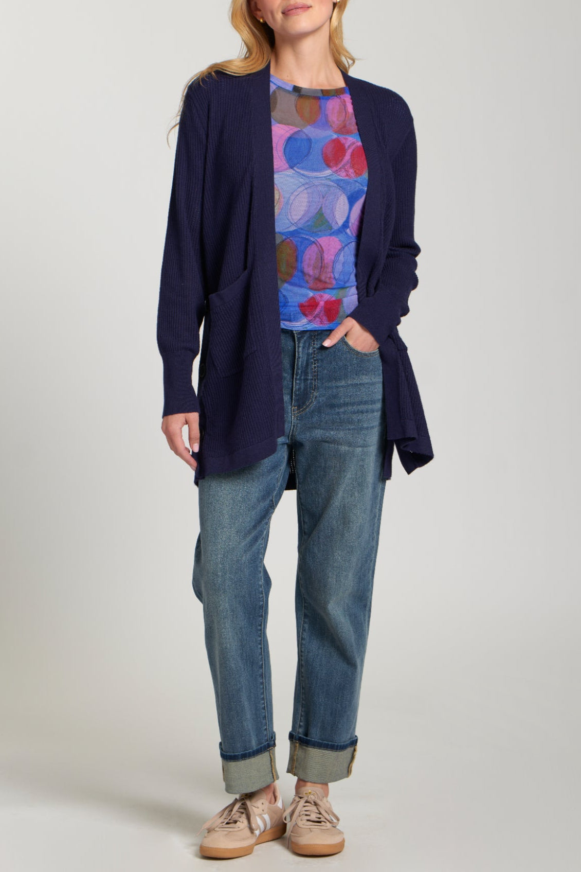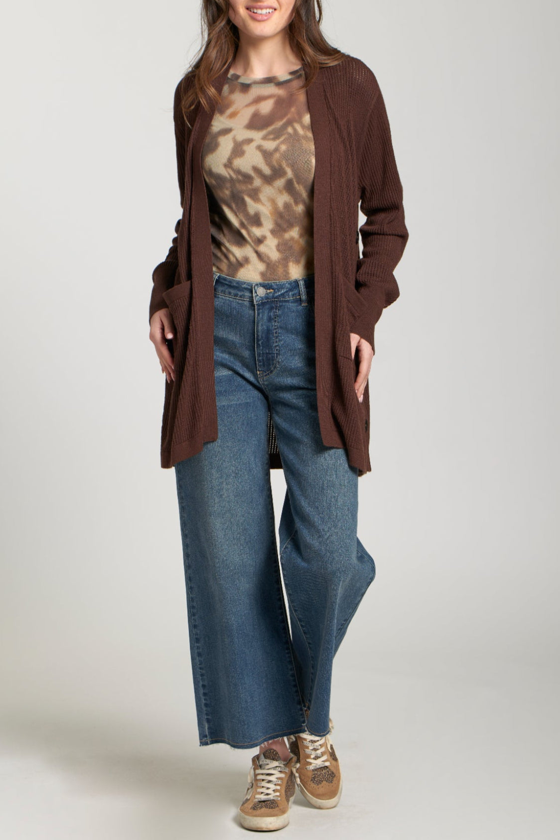 Stay cozy and stylish in this versatile navy cardigan, designed with a deep V-neckline for a flattering and relaxed look. Featuring a button-front closure along both sides, it offers adjustable styling options for layering. The straight hemline gives it a clean and modern finish, while the patch pockets placed at the front add functionality and casual charm. A perfect layering essential for both weekday wear and weekend comfort.