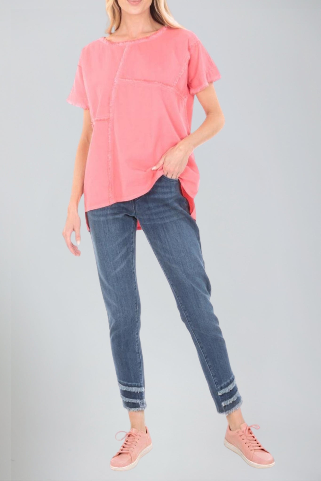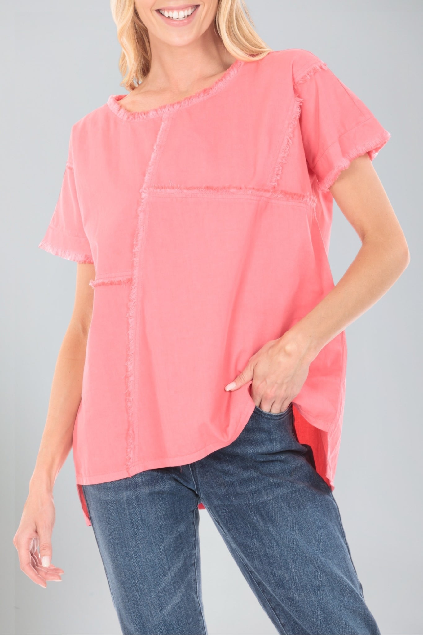 The Patched Tee with Frayed Seams offers a perfect combination of edgy and casual style. Featuring bold patchwork details and frayed seams, this tee creates a relaxed, worn-in look that’s both fashion-forward and comfortable. Made from soft, breathable fabric, it provides a laid-back fit that’s ideal for everyday wear. Pair it with jeans, shorts, or skirts for a versatile look that adds an effortless touch of style. Whether you're hanging out with friends or enjoying a casual outing, this tee makes a statement while keeping you cool and comfortable.